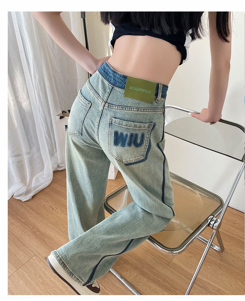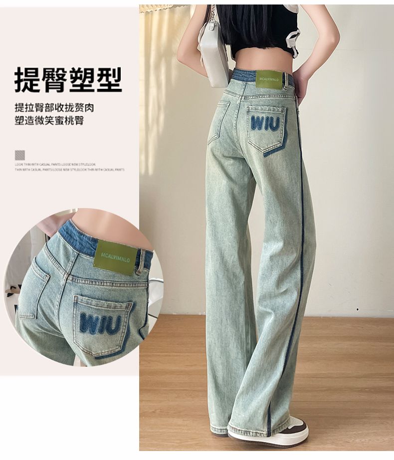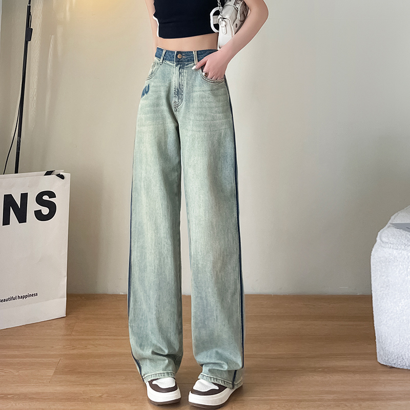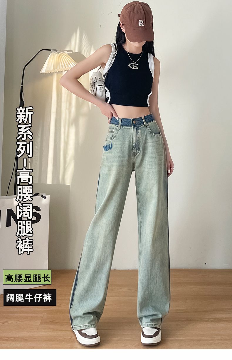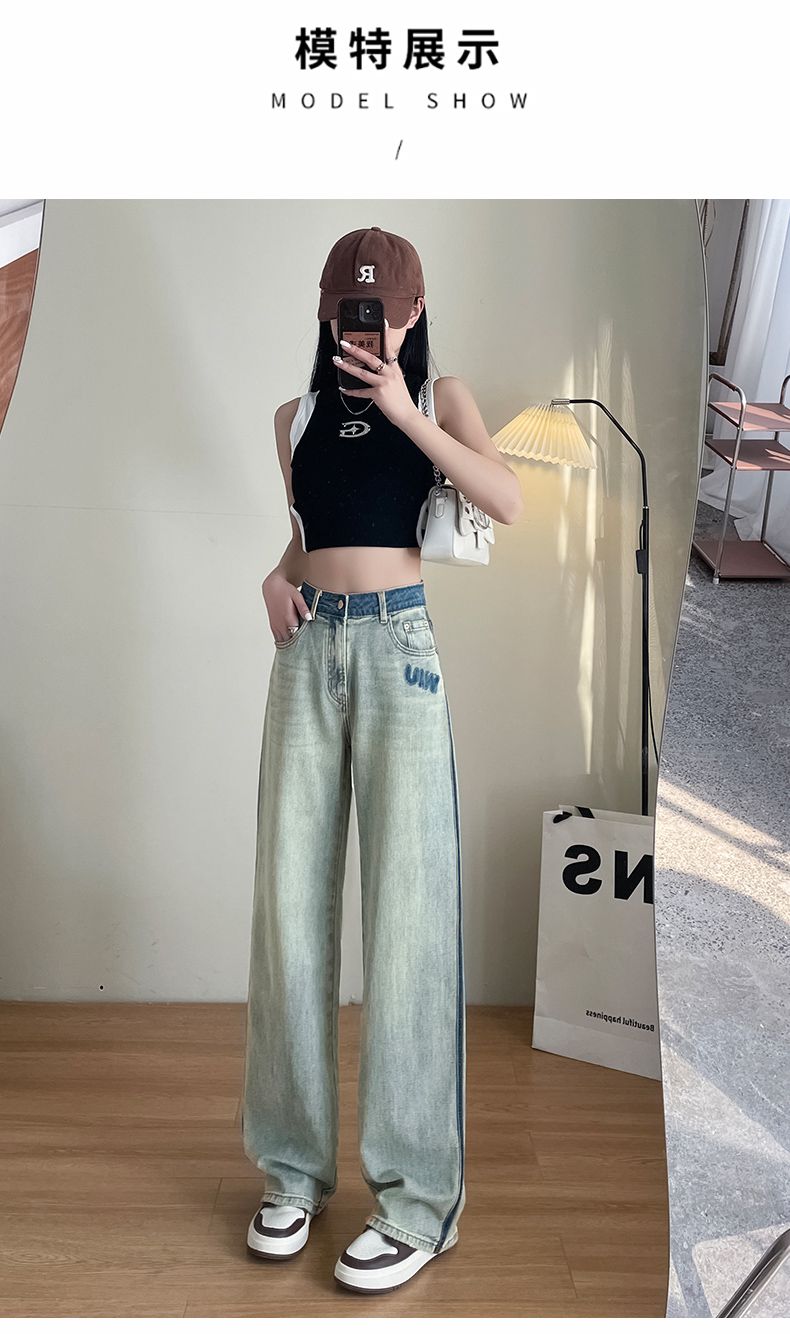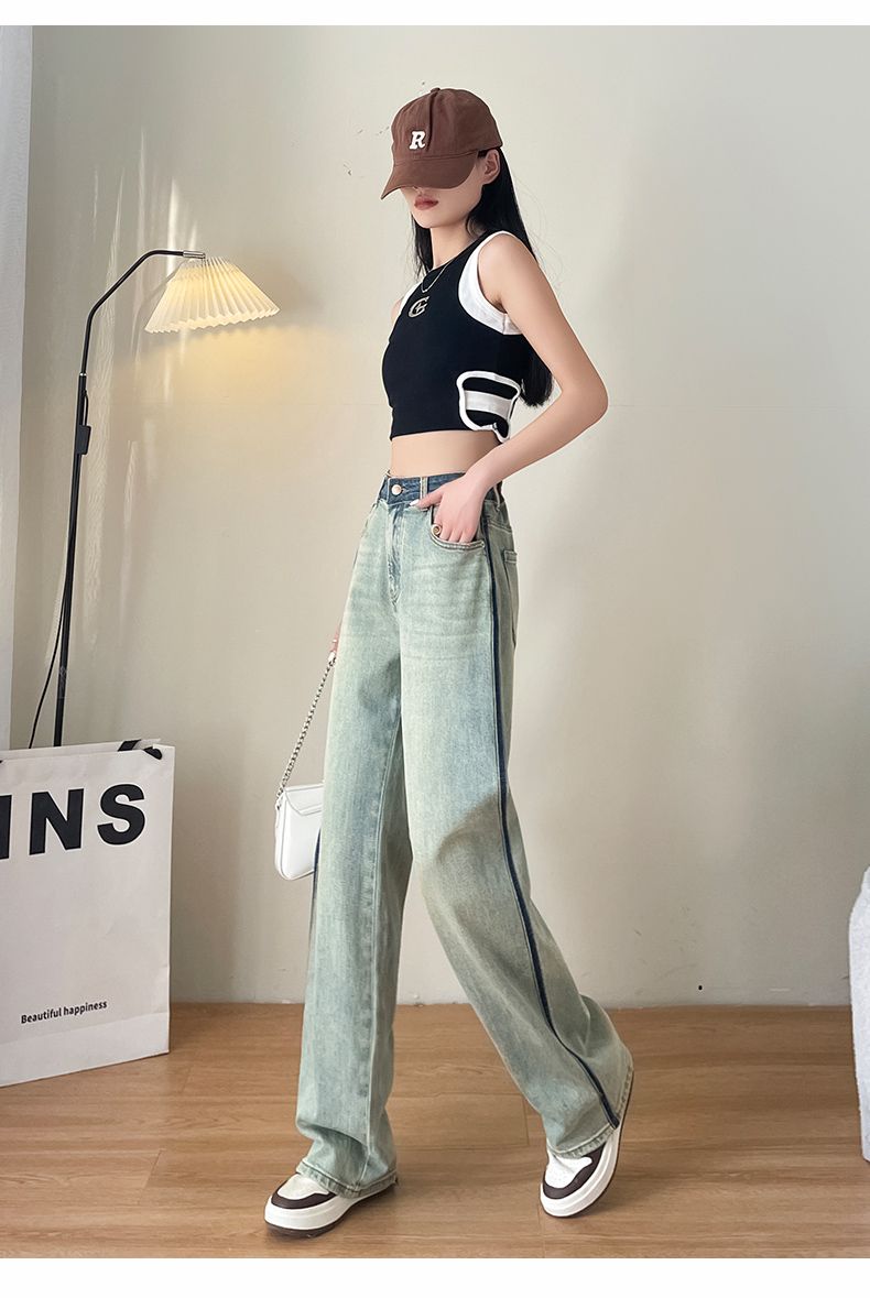 MY14775# 高腰窄版直筒牛仔裤女加绒新款垂感宽松阔腿拖地裤子女裝貨源服裝批發