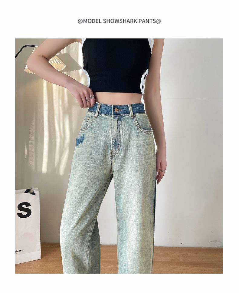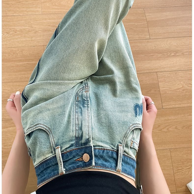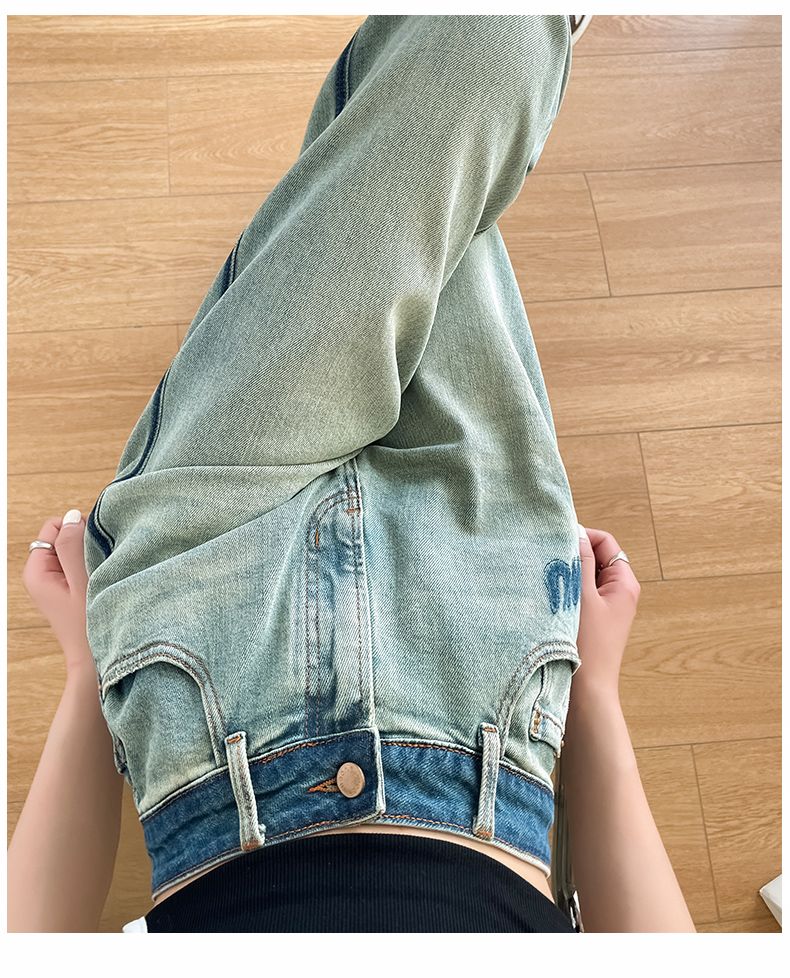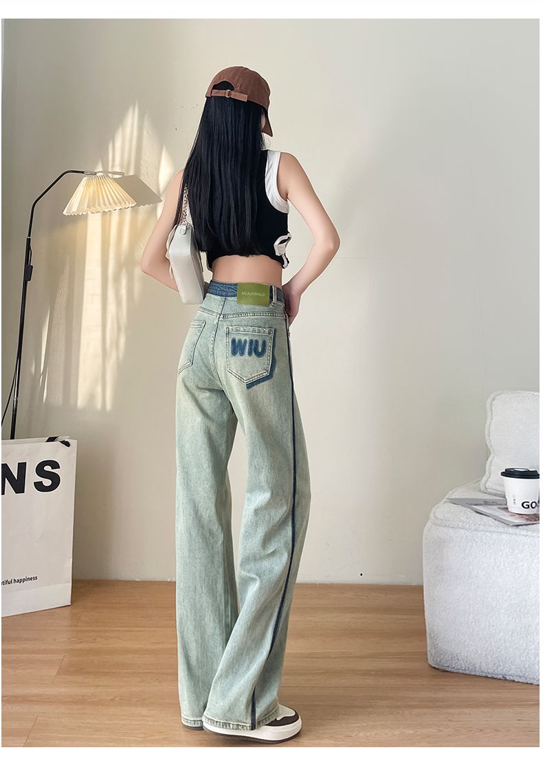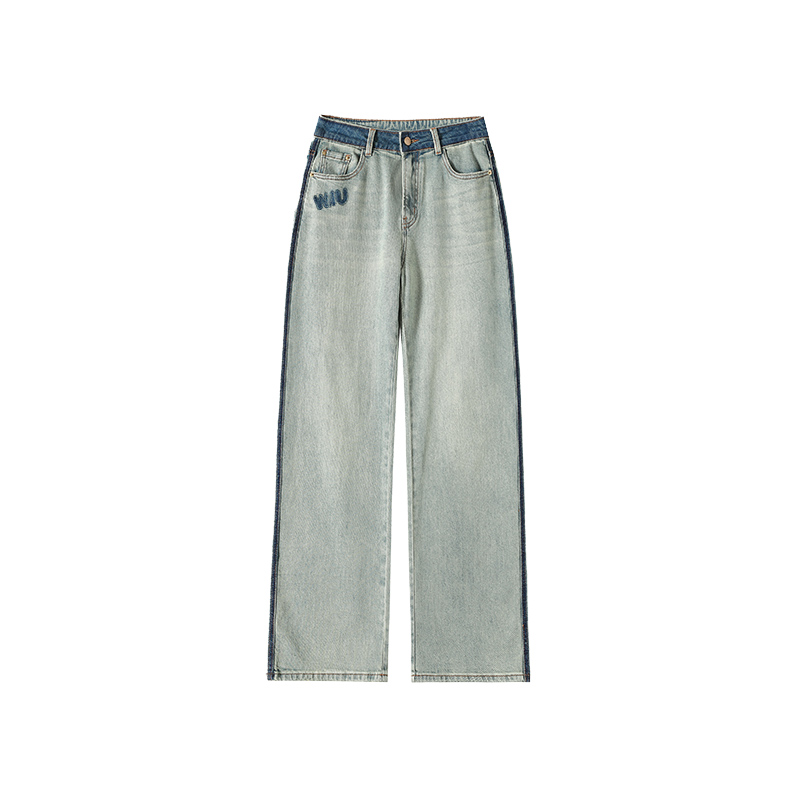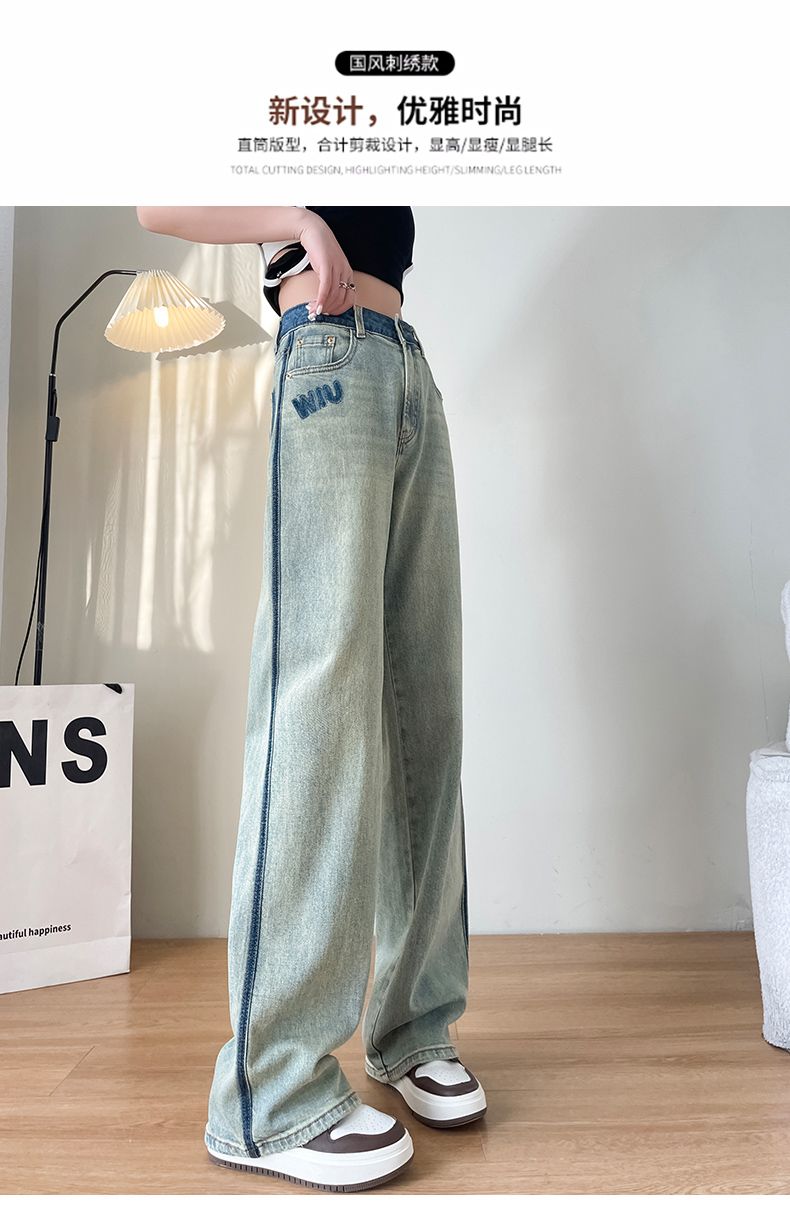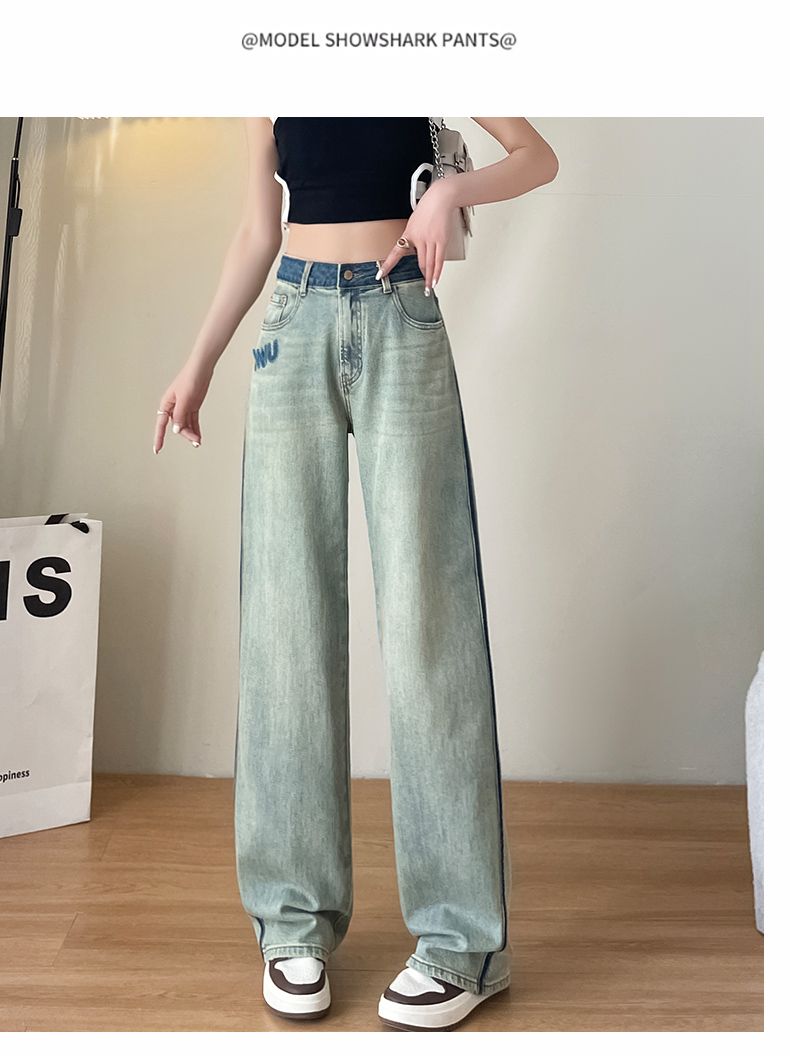 MY14775# 高腰窄版直筒牛仔裤女加绒新款垂感宽松阔腿拖地裤子女裝貨源服裝批發