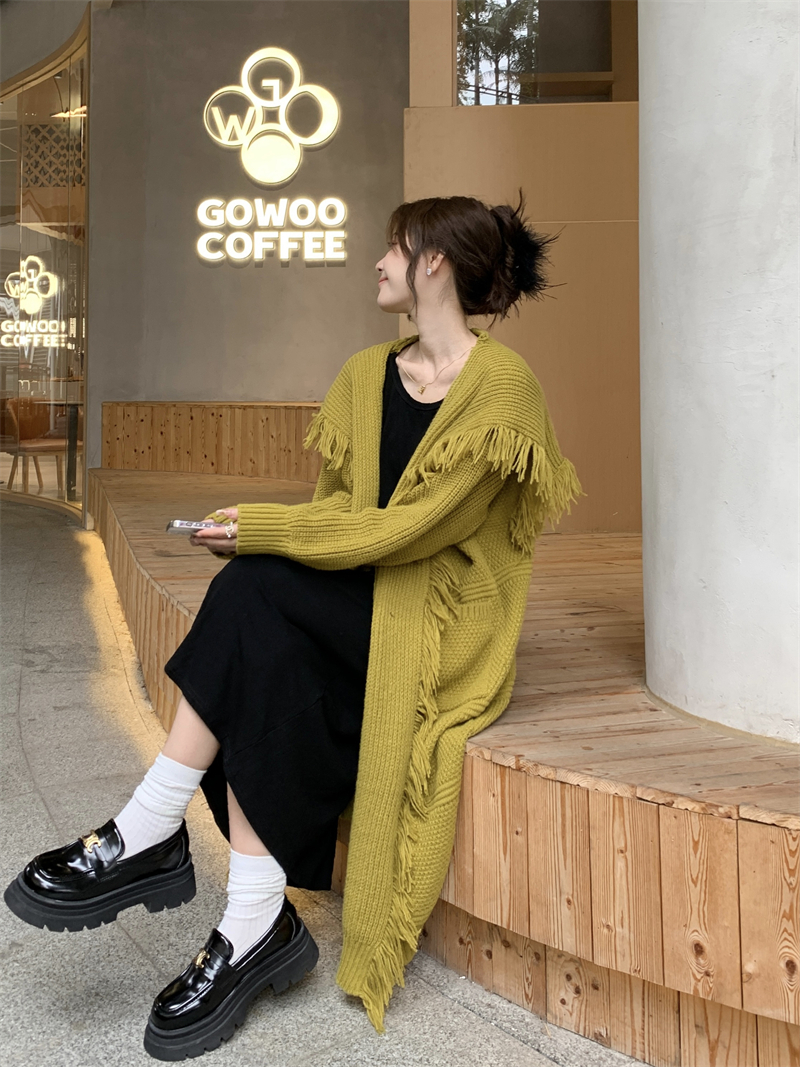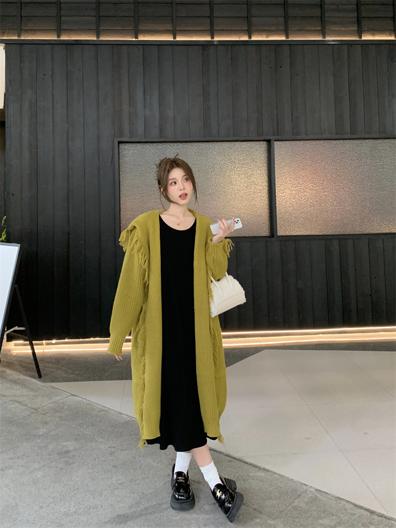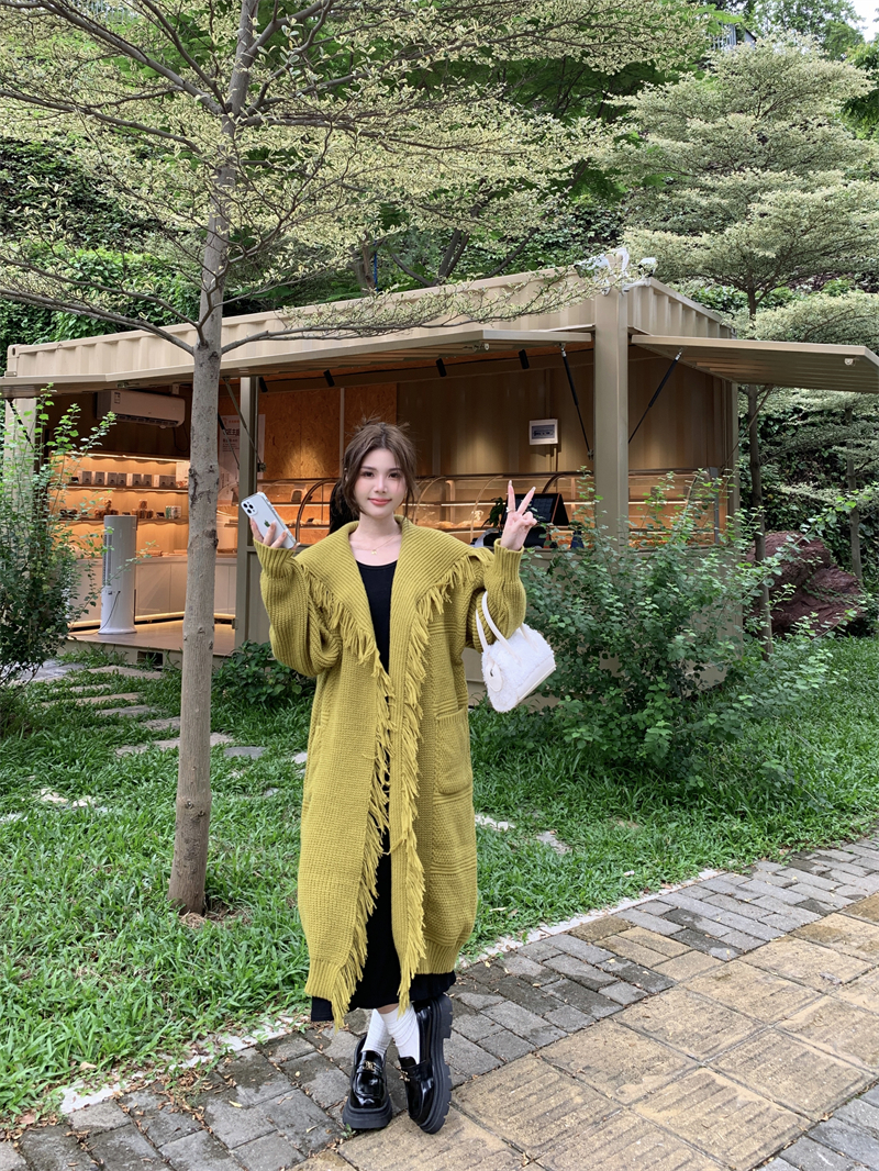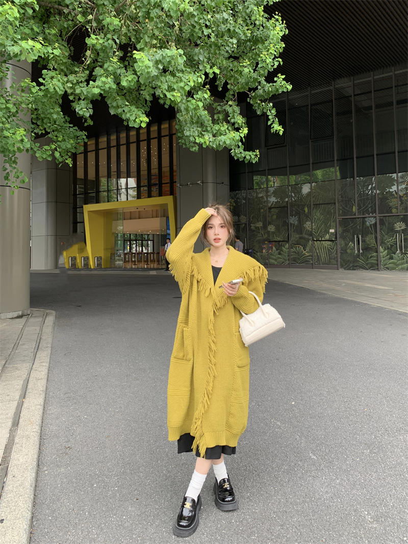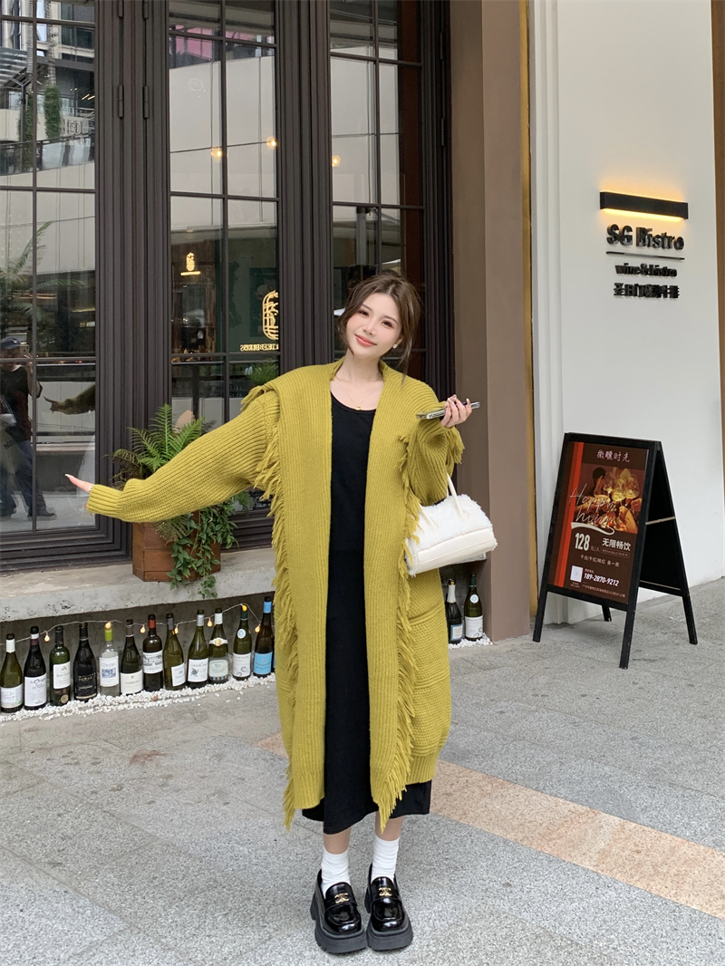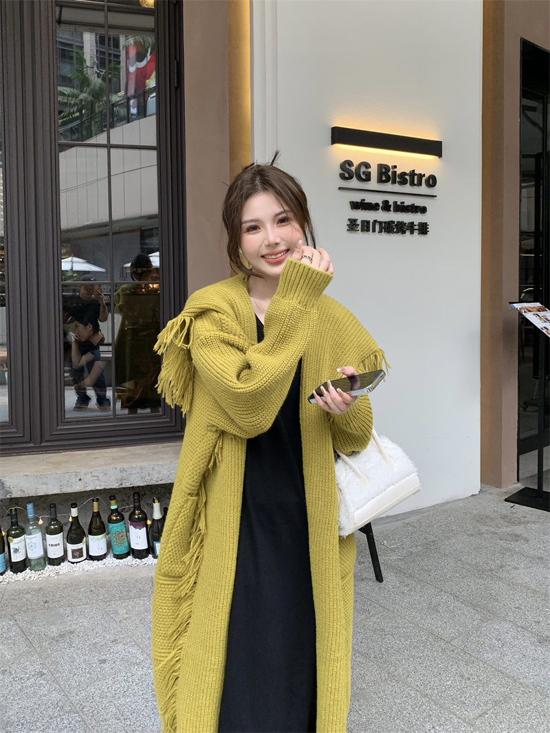 MY14776# 大码胖MM设计感奶呼呼软糯长款宽松韩系慵懒风外套女裝貨源服裝批發