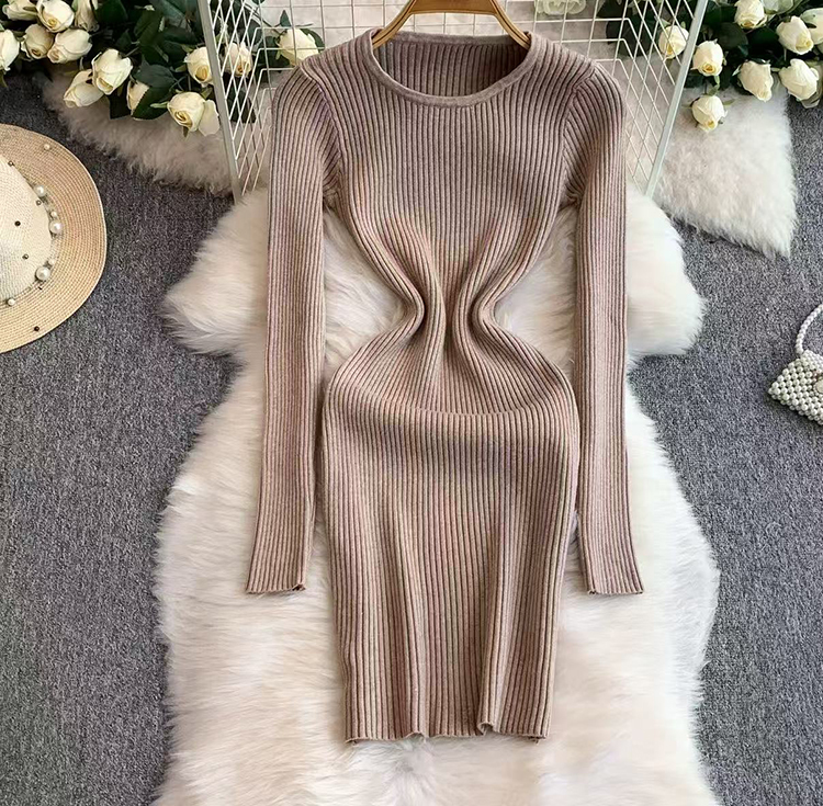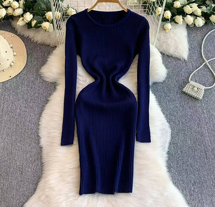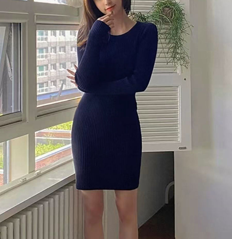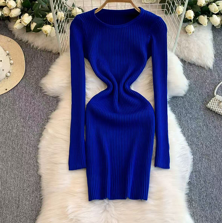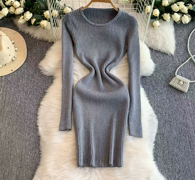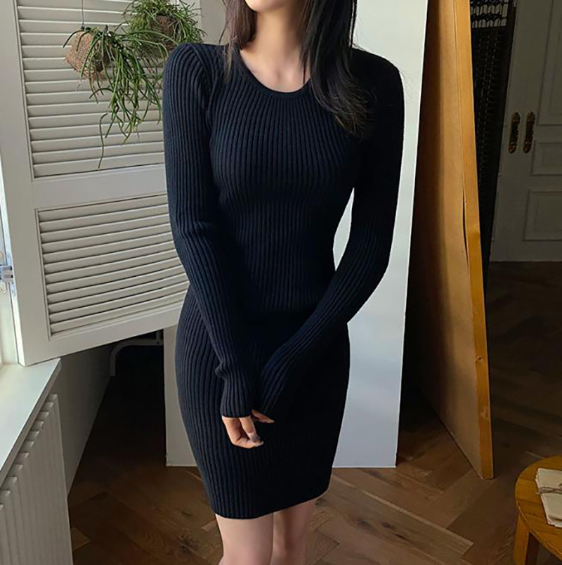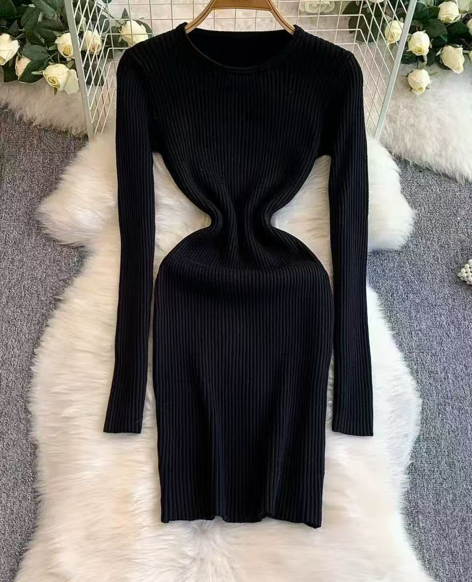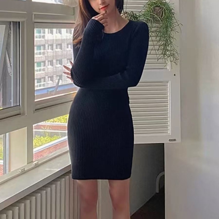 MY14864# 韩国东大门包心纱针织连衣裙显瘦长袖紧身包臀性感打底短裙女女裝貨源服裝批發