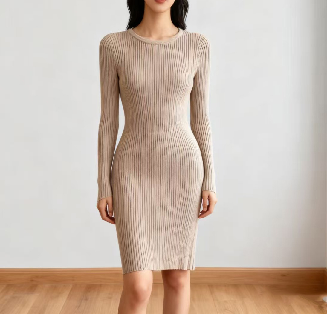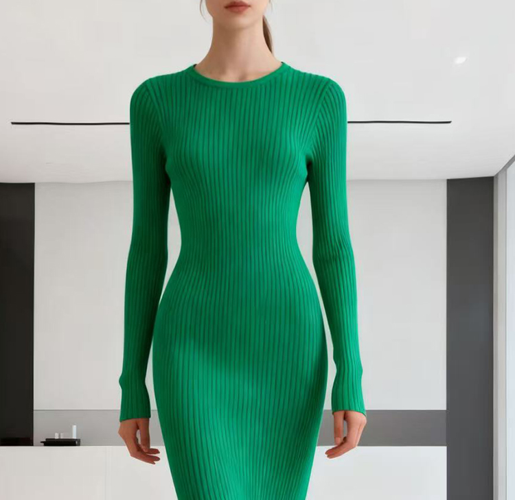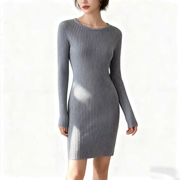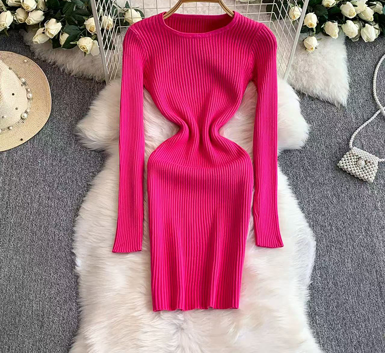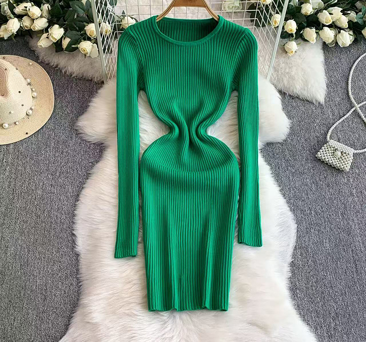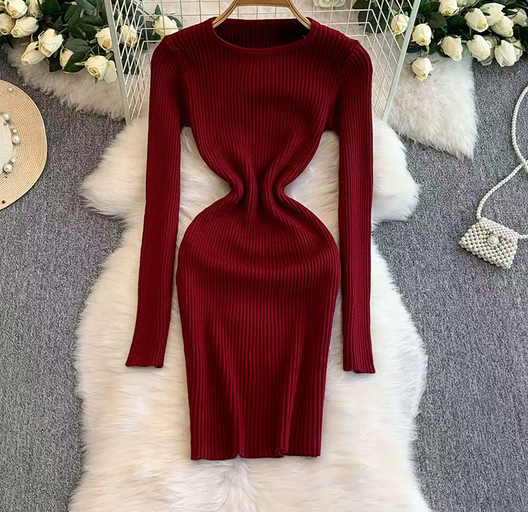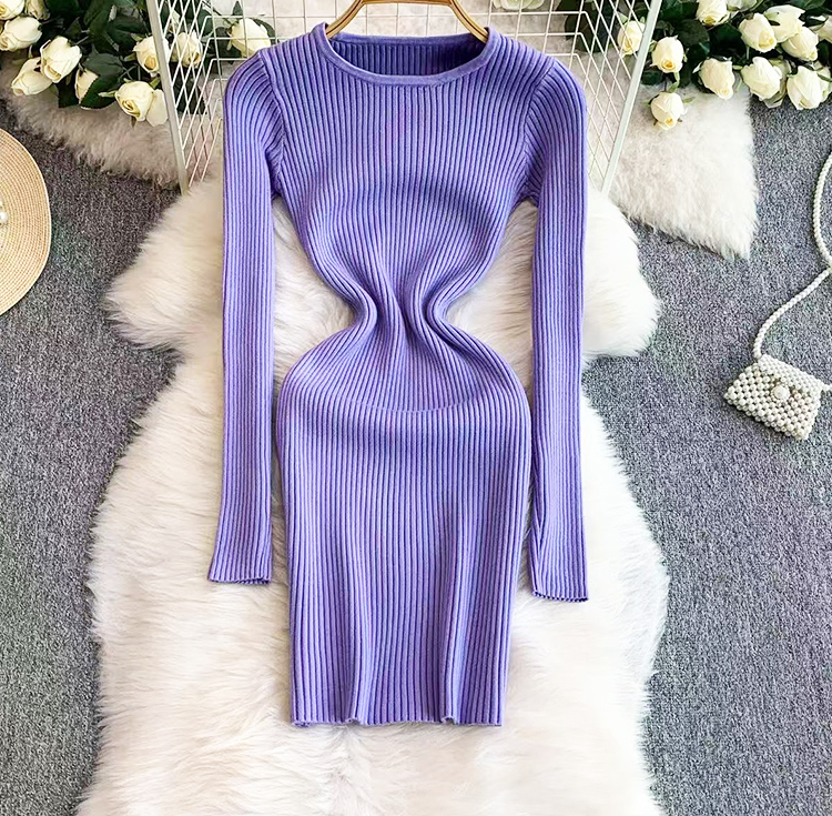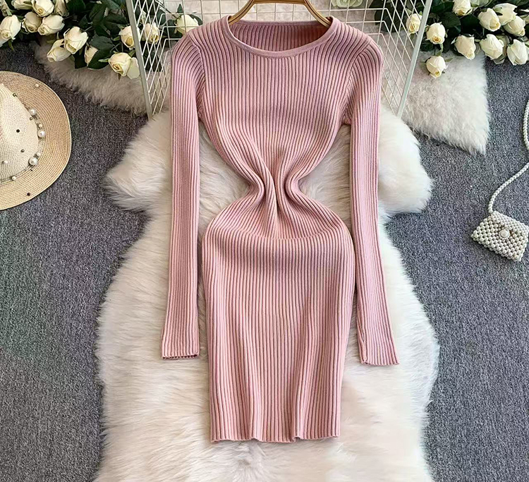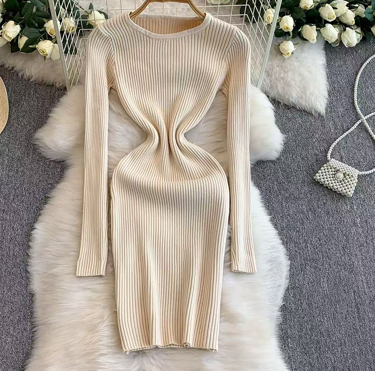 MY14864# 韩国东大门包心纱针织连衣裙显瘦长袖紧身包臀性感打底短裙女女裝貨源服裝批發