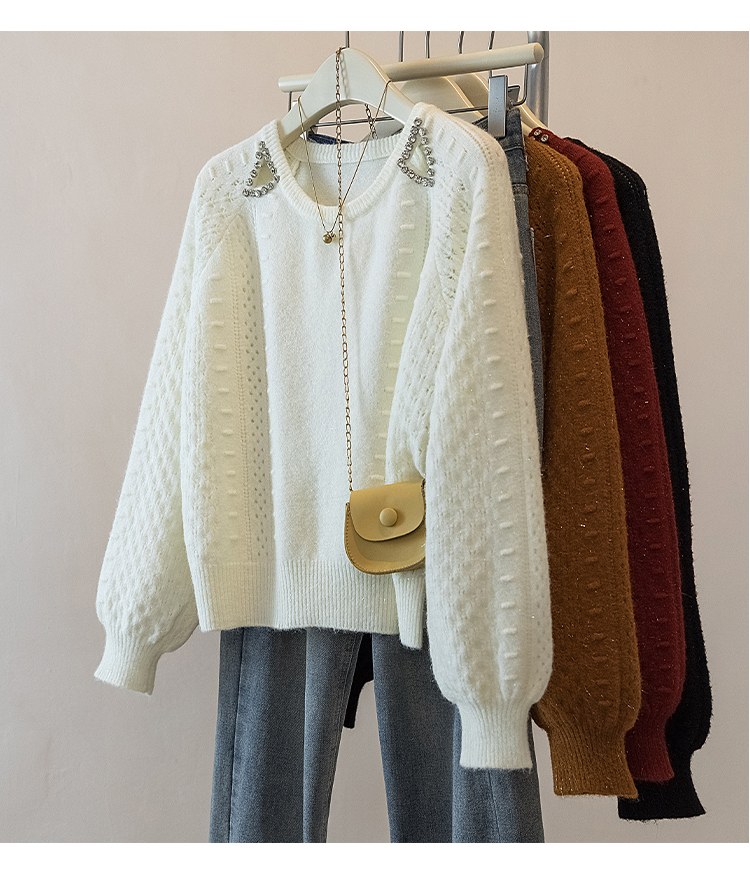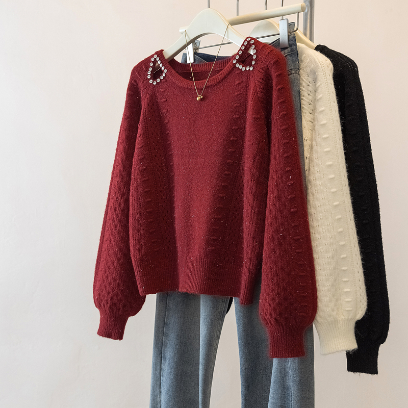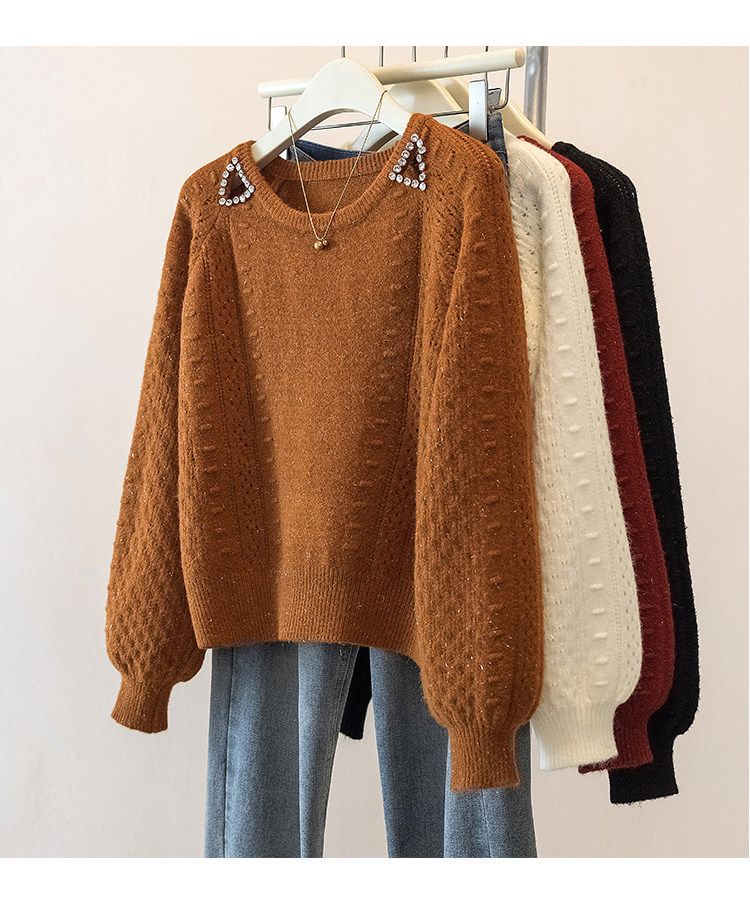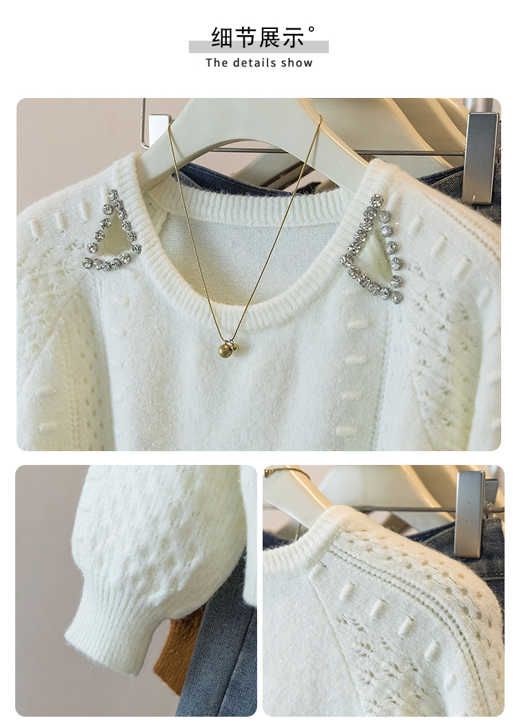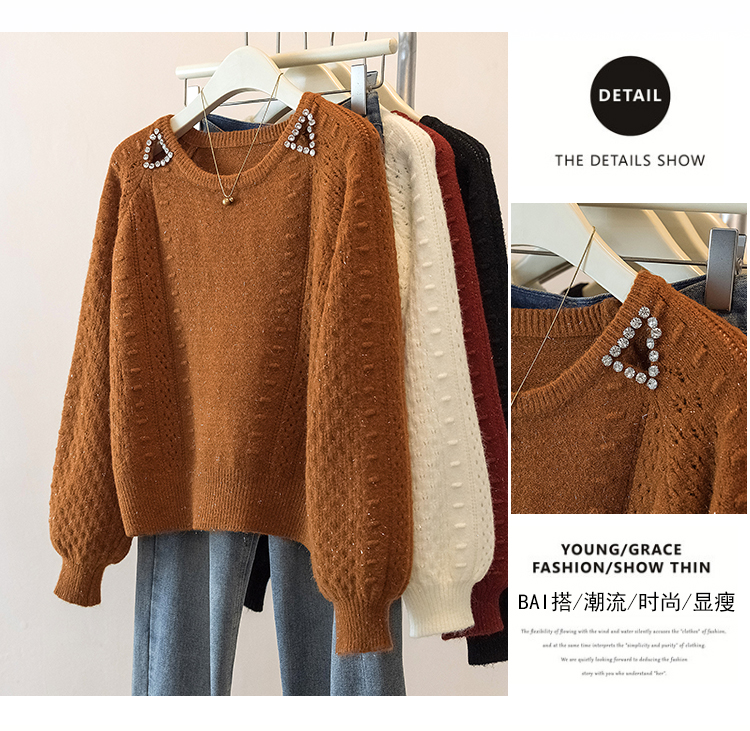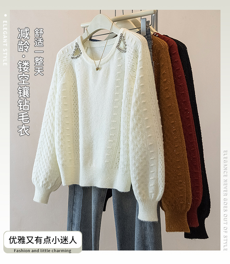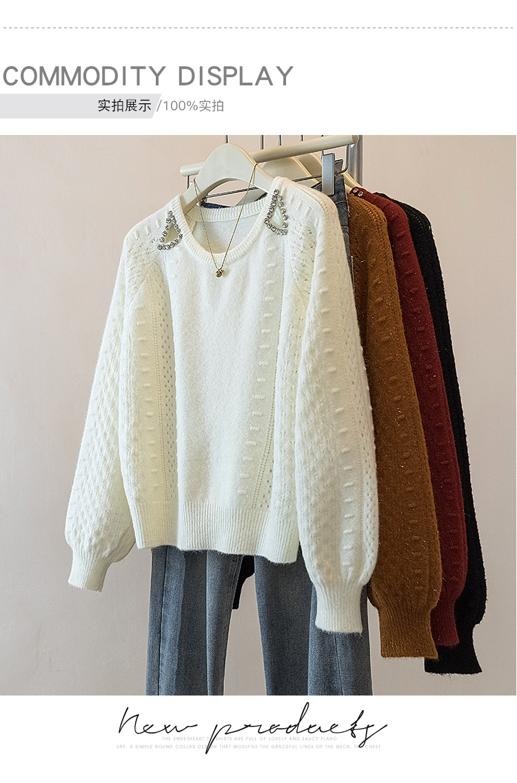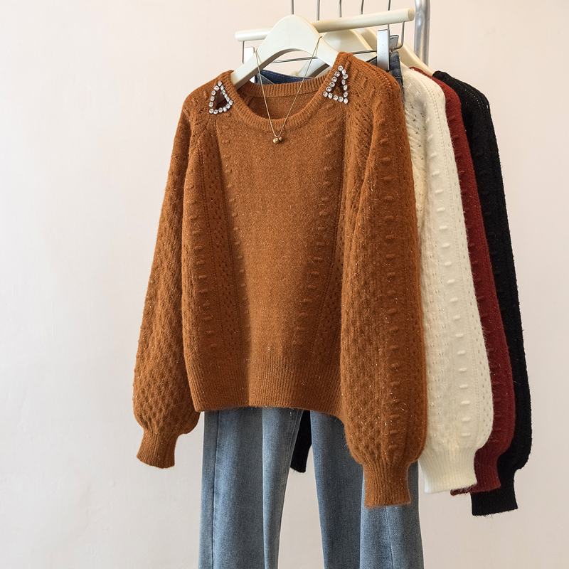 MY14868# 胖mm镂空亮丝圆领针织打底衫秋冬款宽松减龄内搭洋气减龄毛衣女裝貨源服裝批發