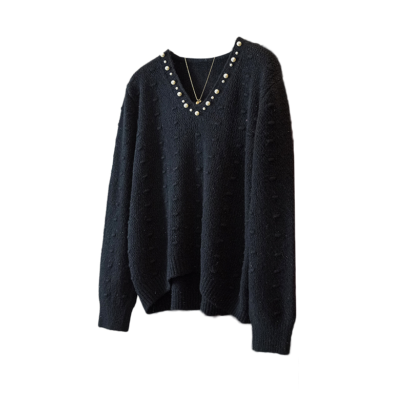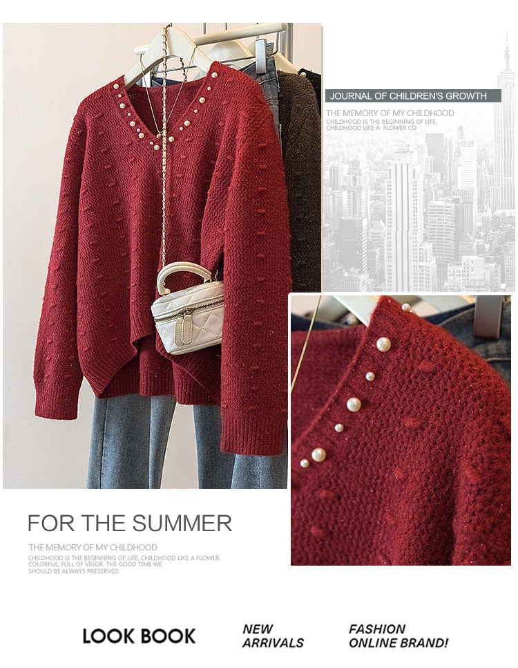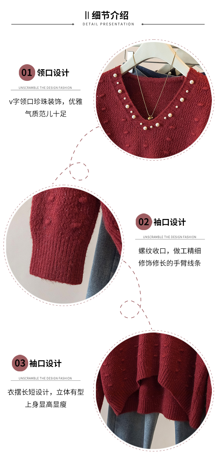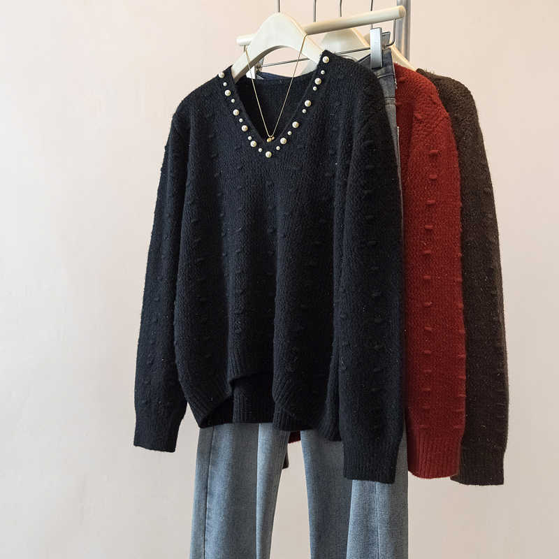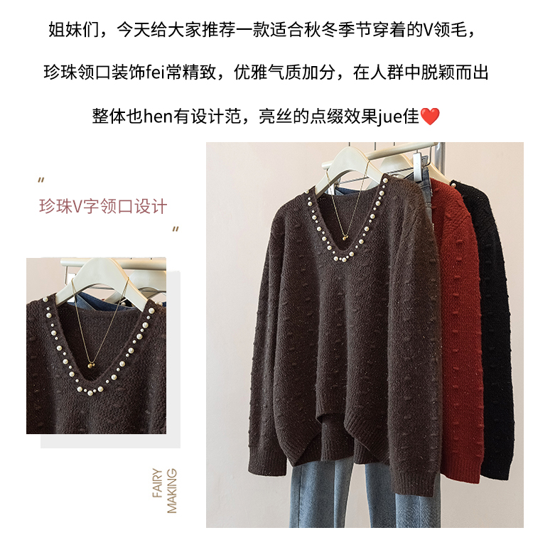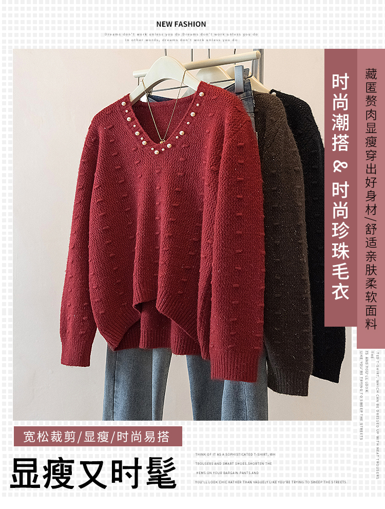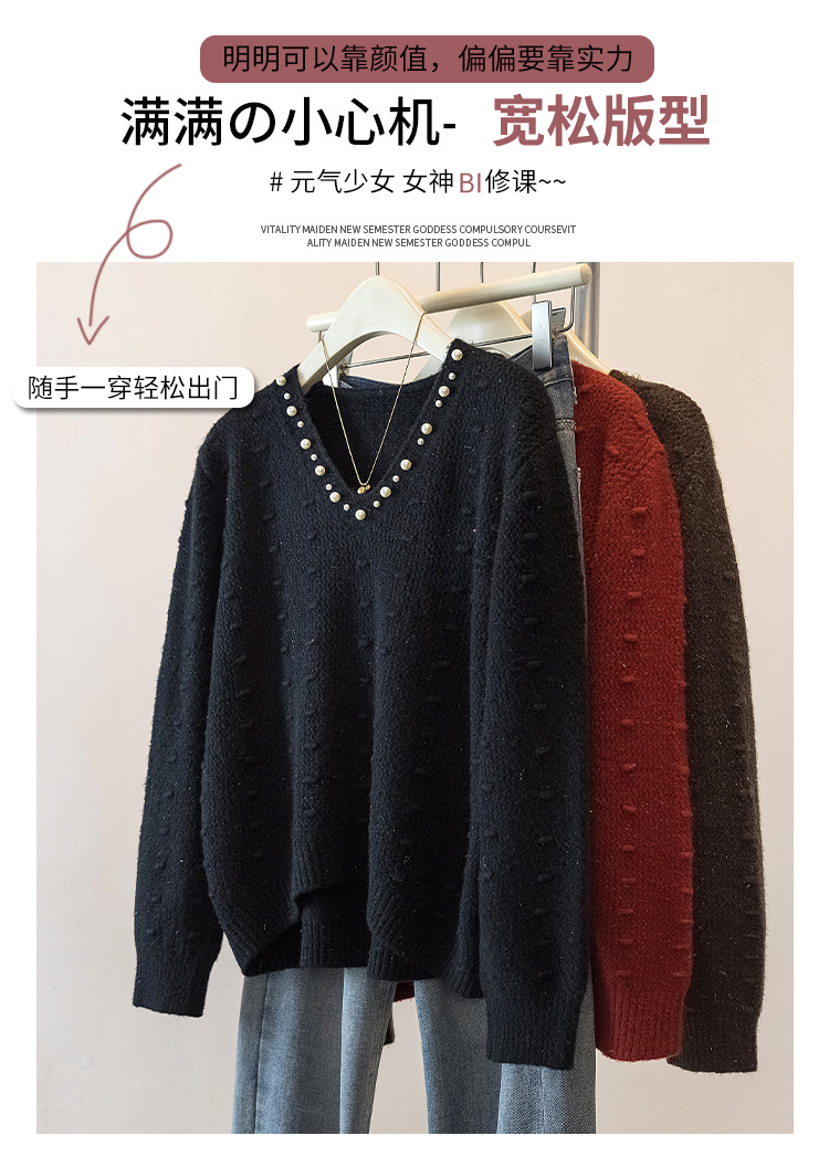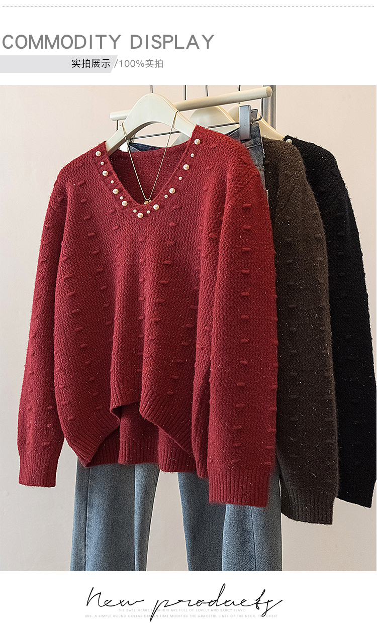 MY14870# 胖mm法式重工钉珠V领设计感针织衫女新款时尚百搭显瘦上衣女裝貨源服裝批發