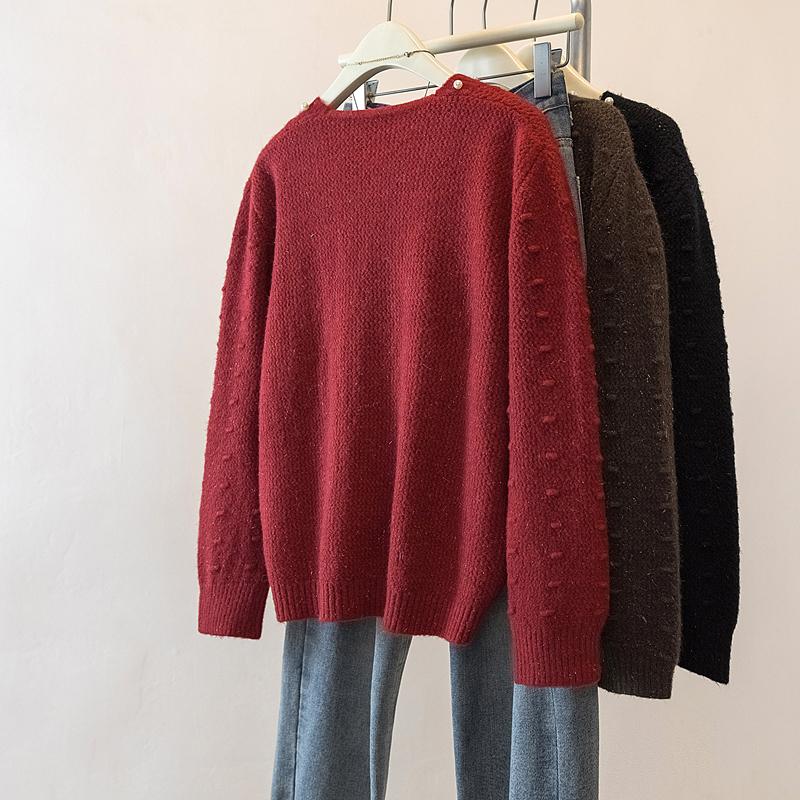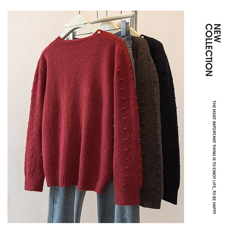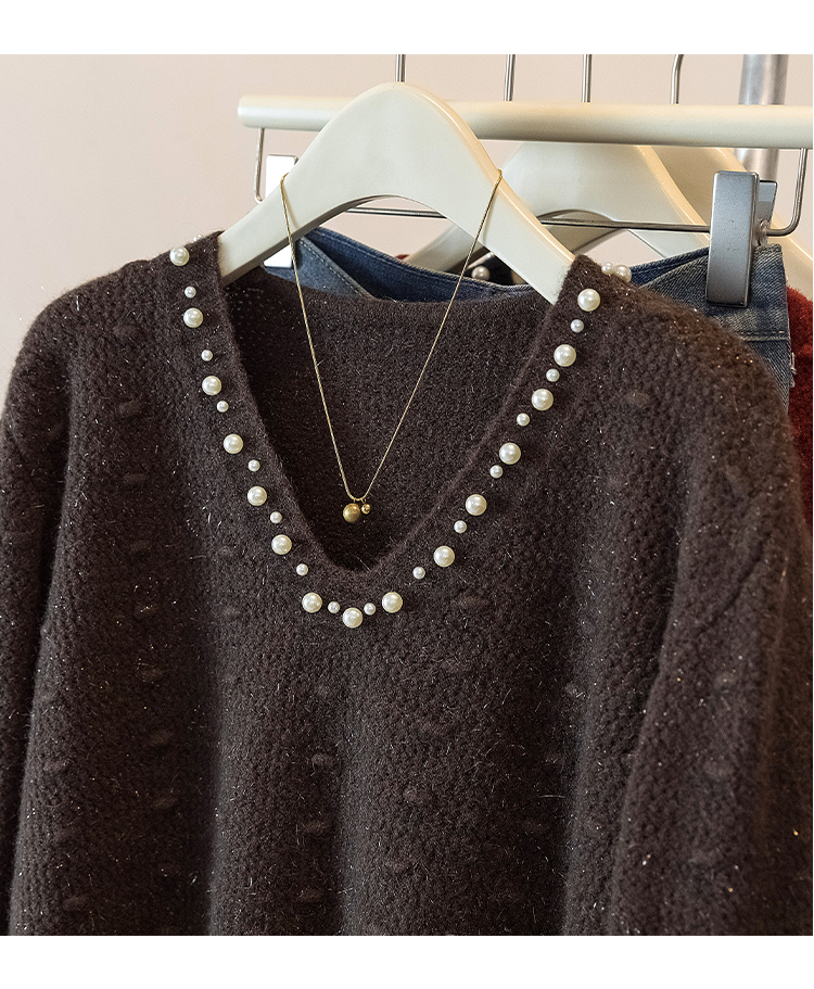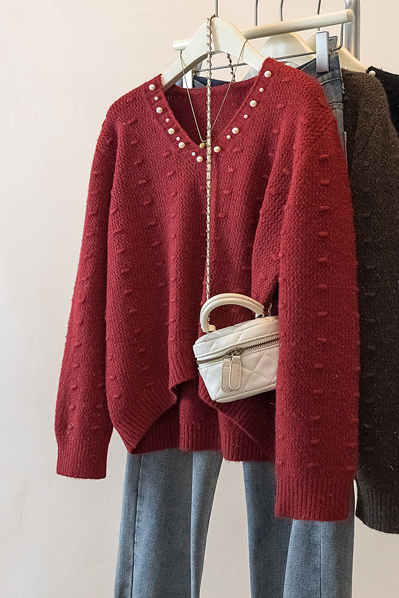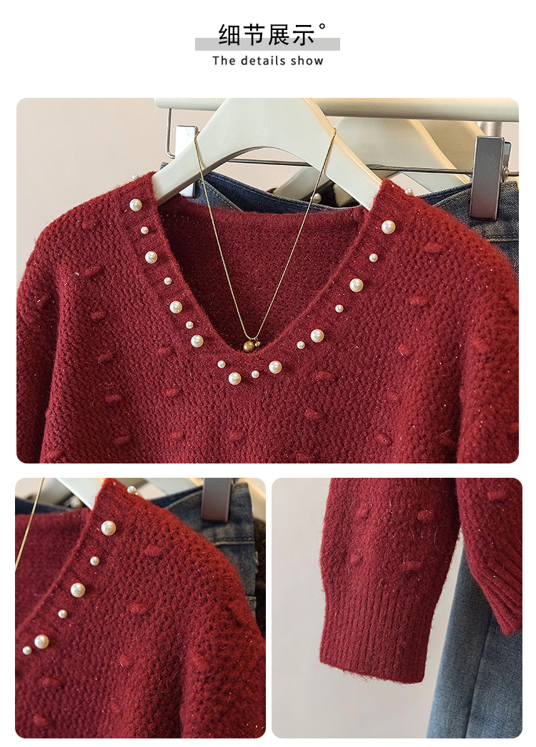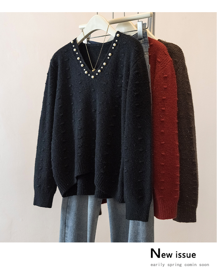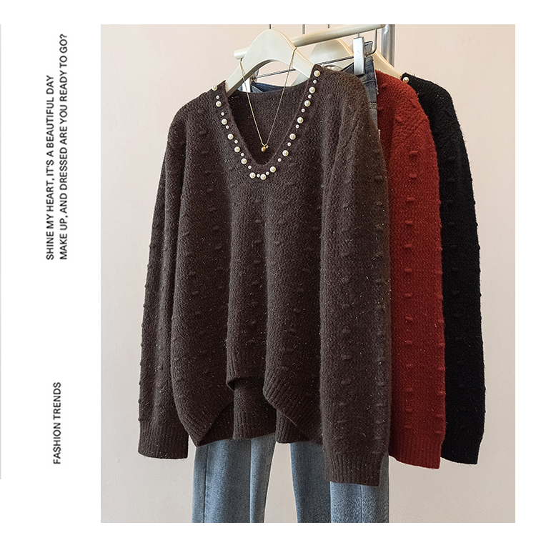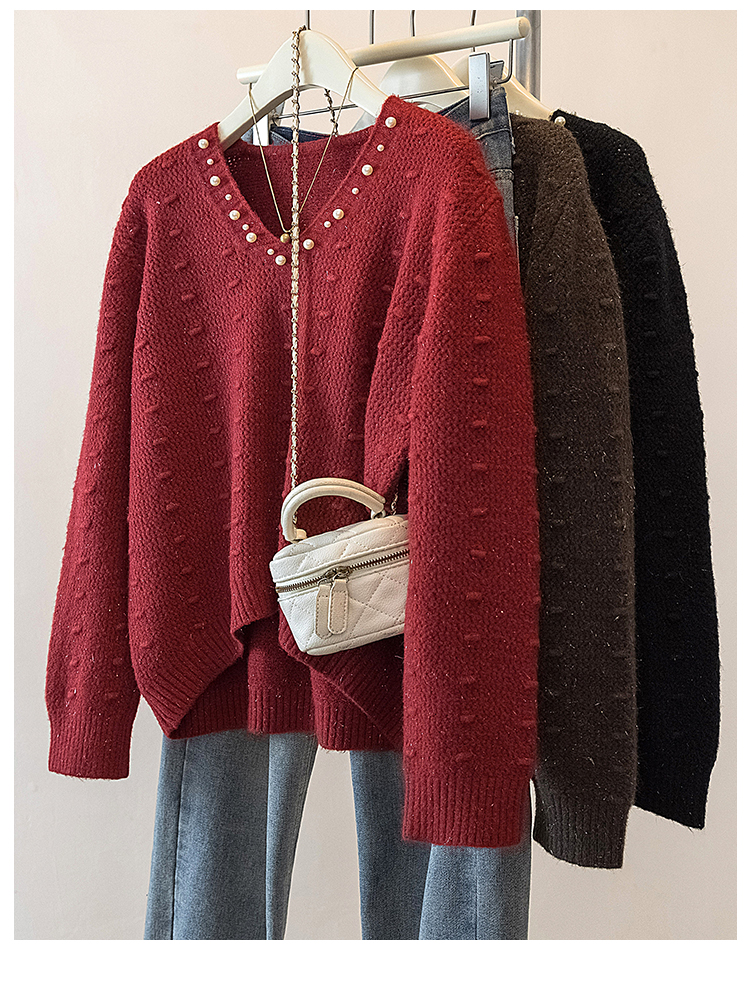 MY14870# 胖mm法式重工钉珠V领设计感针织衫女新款时尚百搭显瘦上衣女裝貨源服裝批發