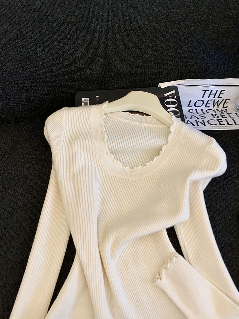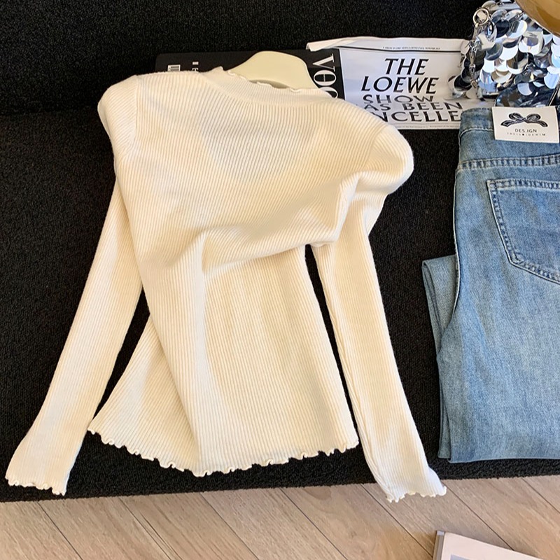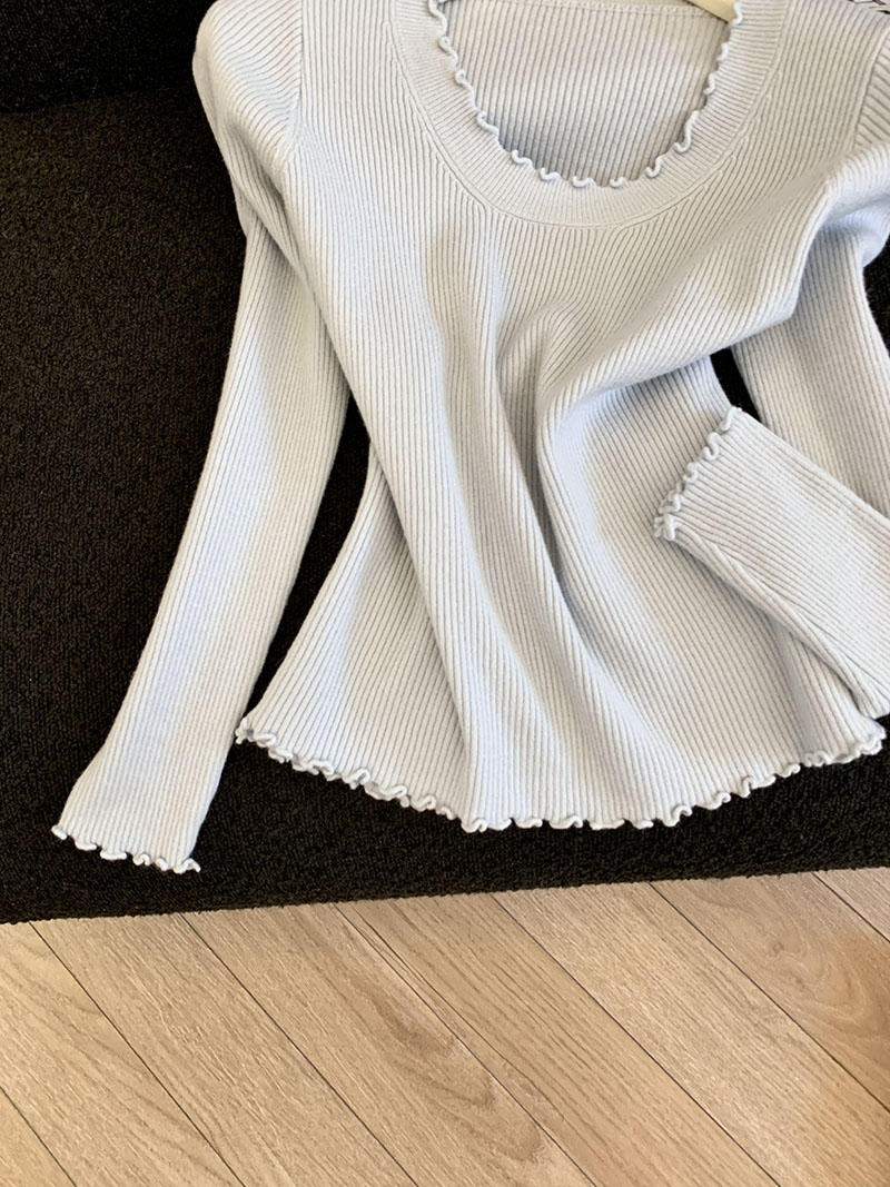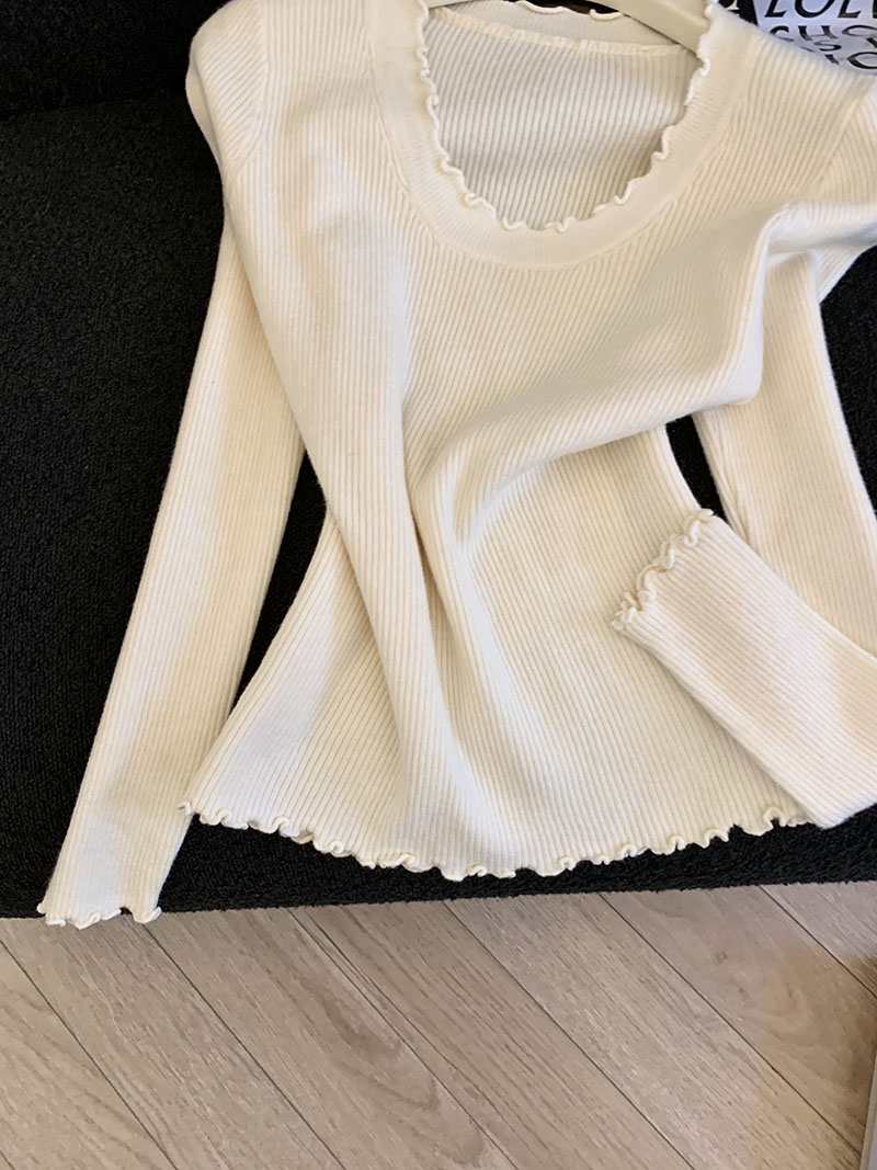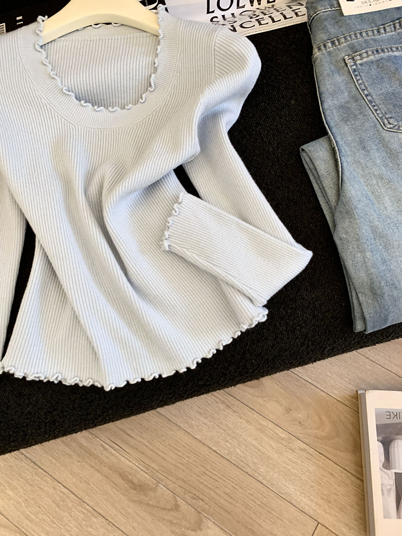 MY14874# 新款宽松慵懒风花边圆领长袖针织衫舒适柔软打底衫上衣女女裝貨源服裝批發
