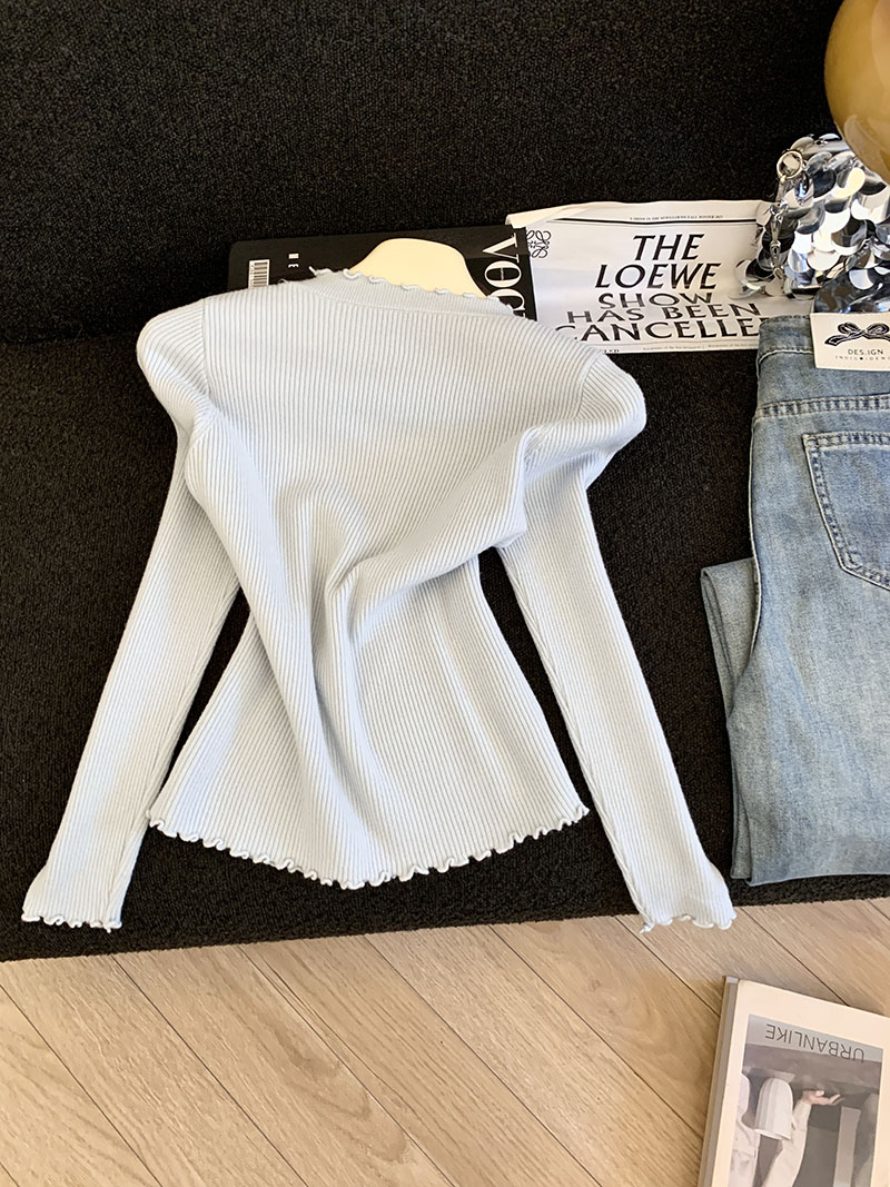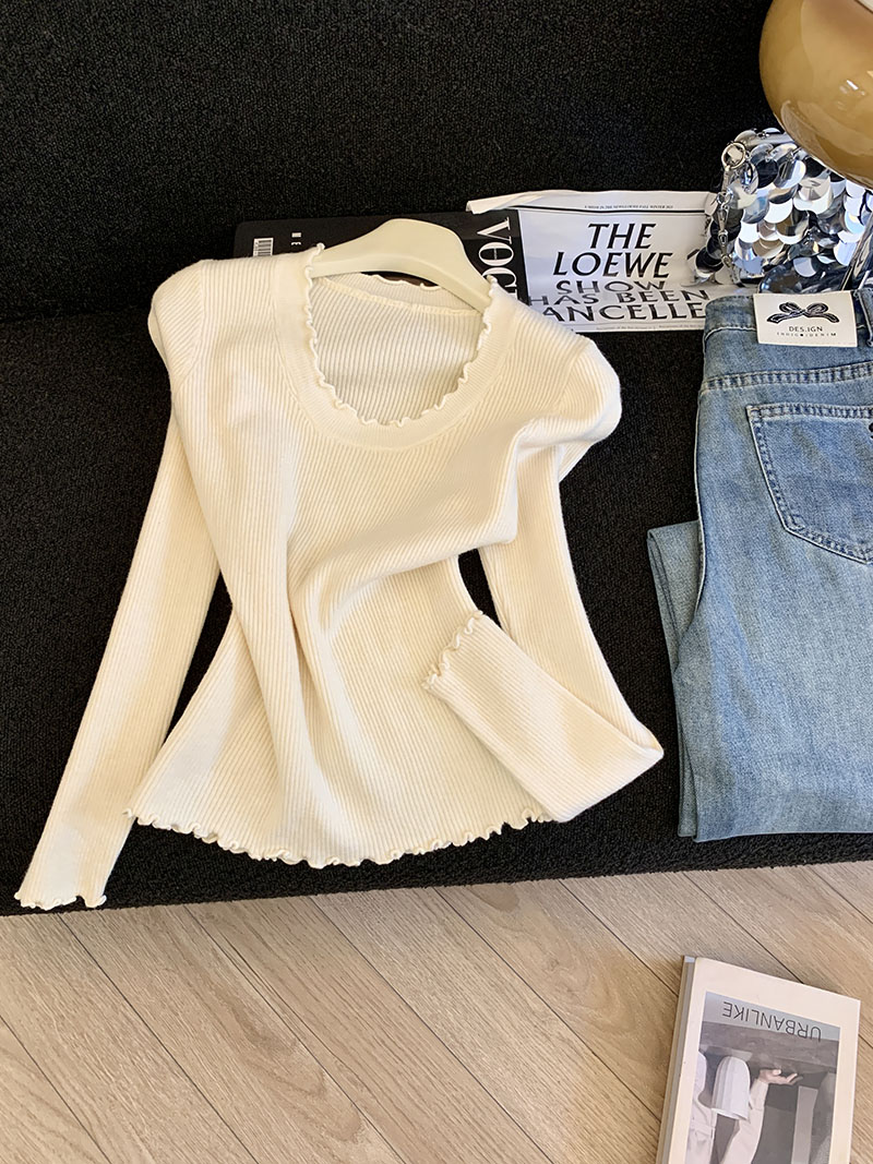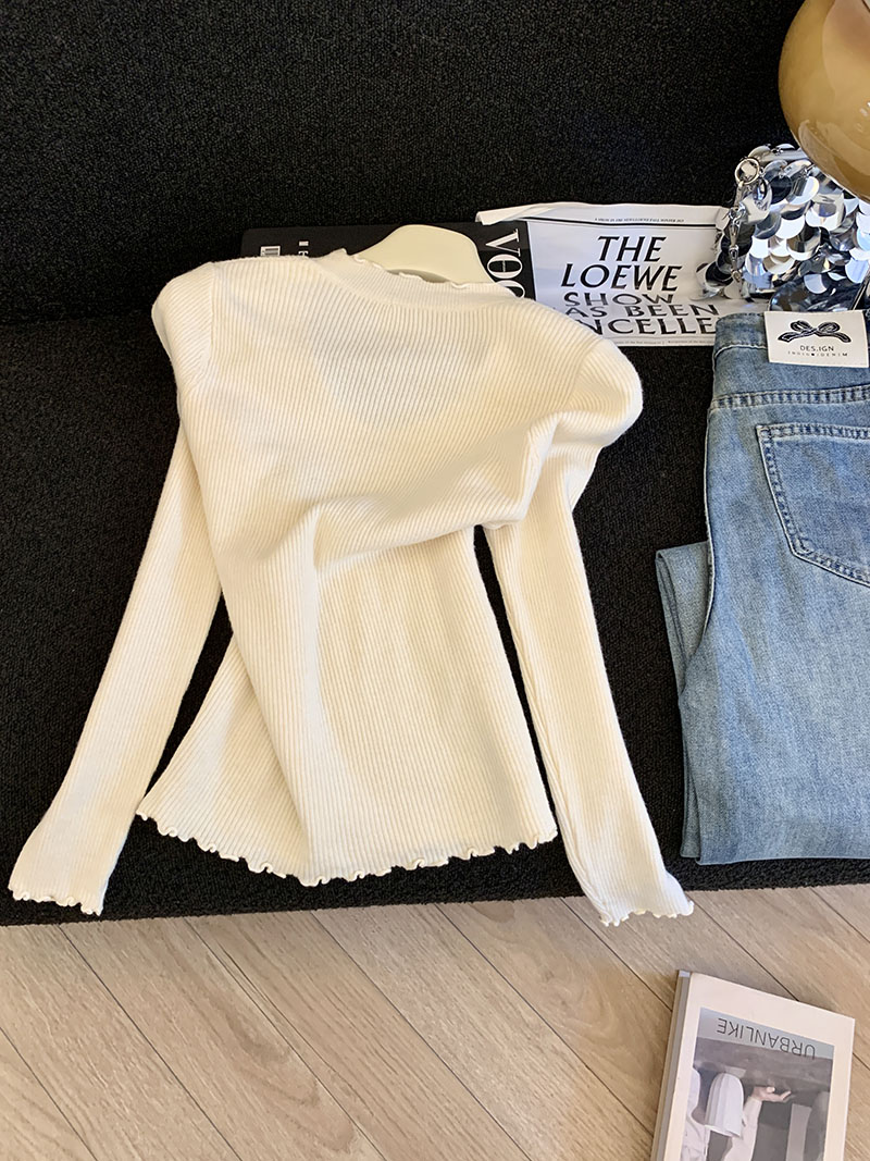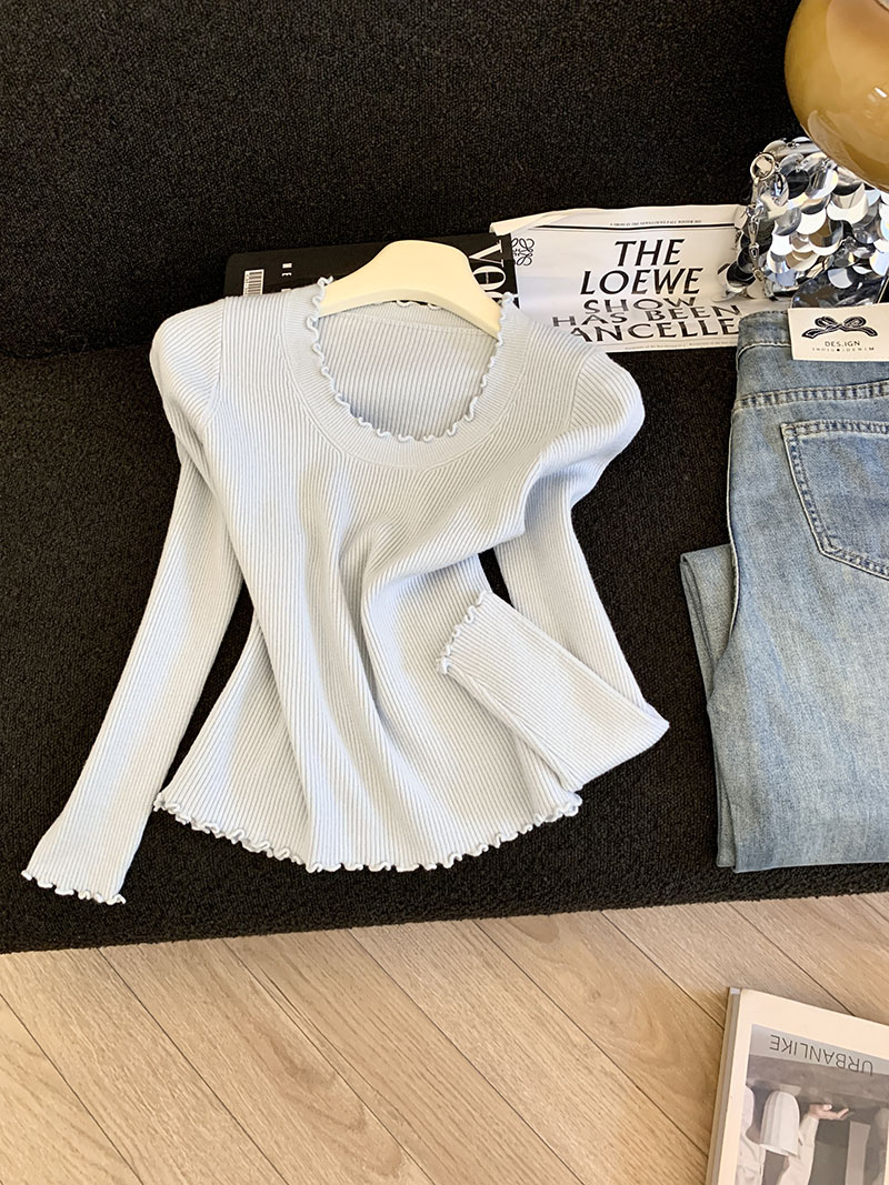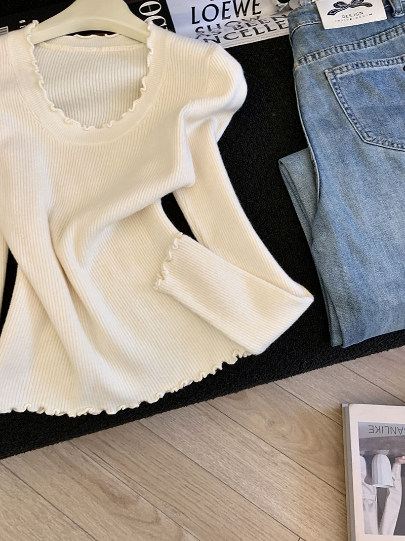 MY14874# 新款宽松慵懒风花边圆领长袖针织衫舒适柔软打底衫上衣女女裝貨源服裝批發