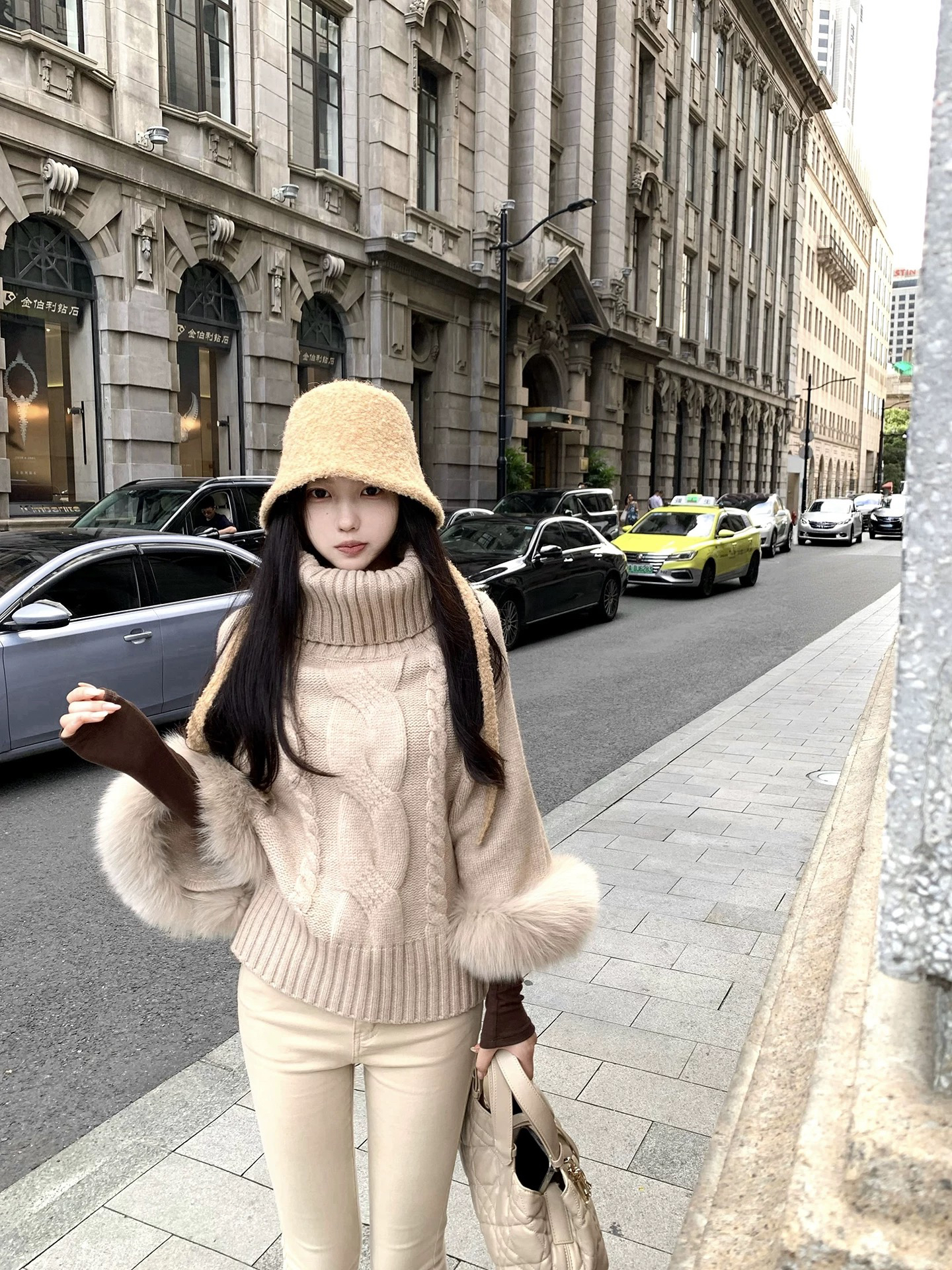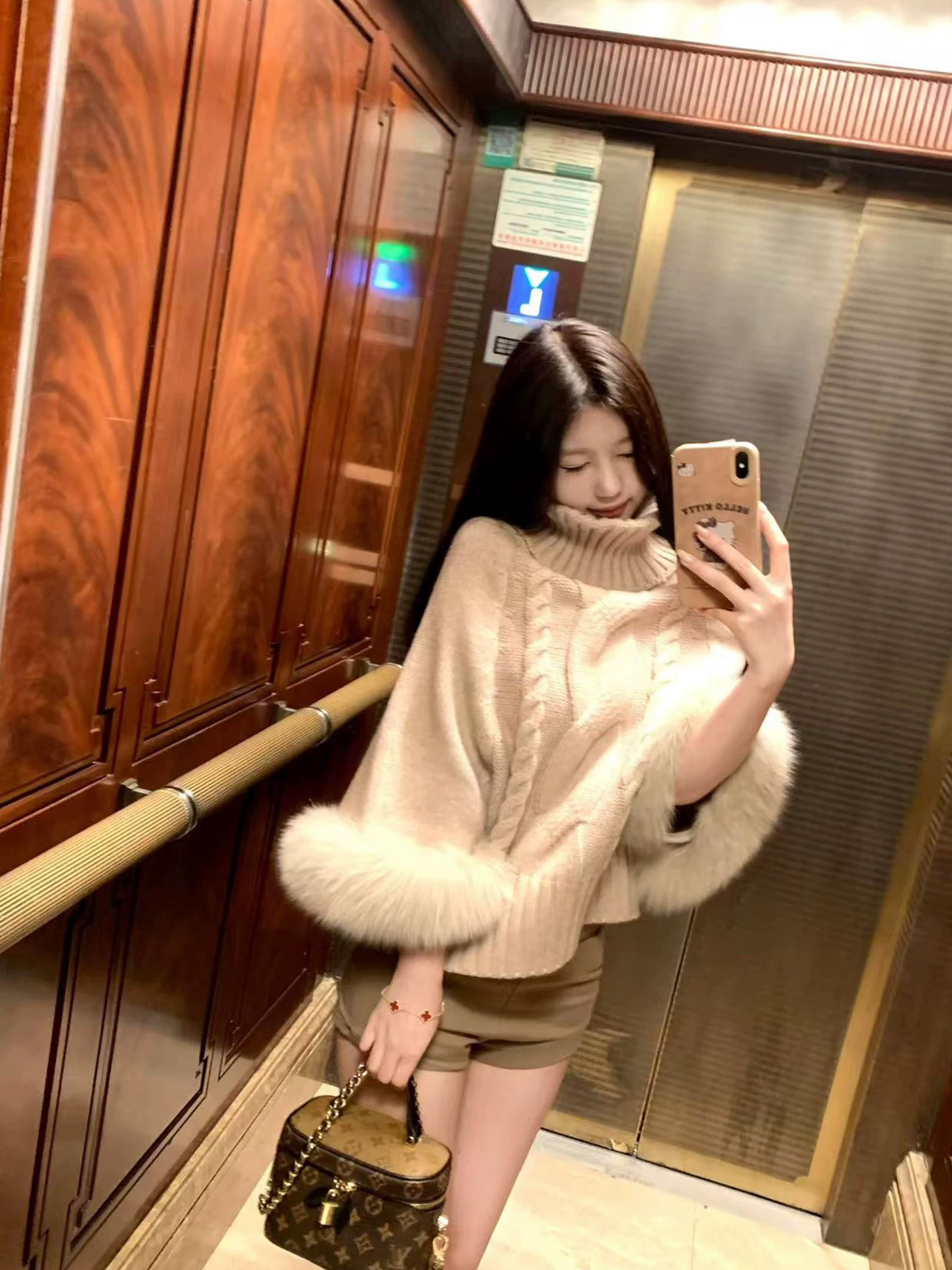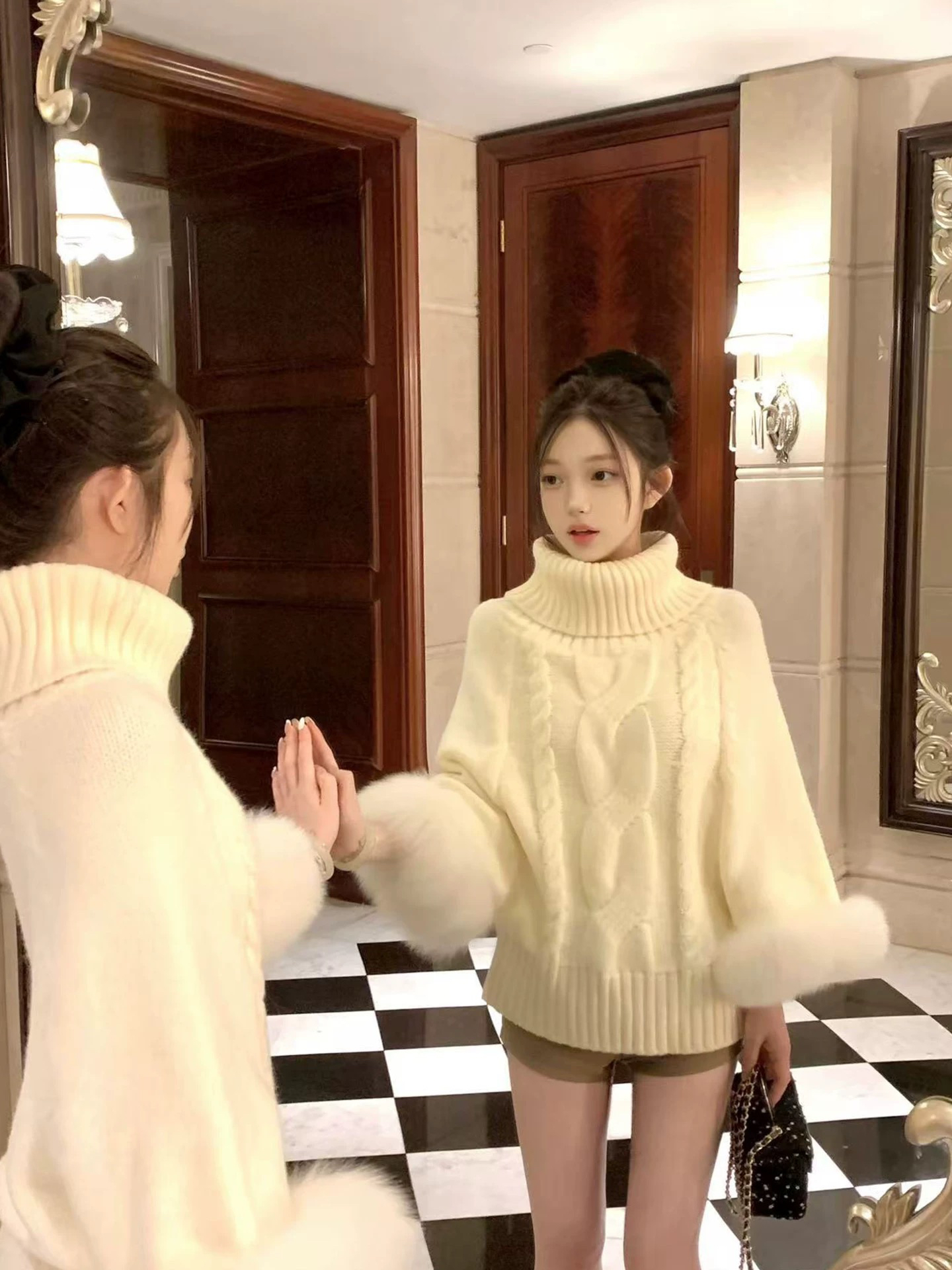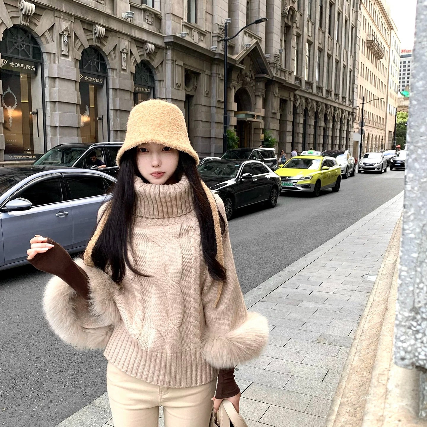 MY14882# 盘盘猫系女友区别市场 可拆卸真狐狸毛袖口高领毛衣女女裝貨源服裝批發