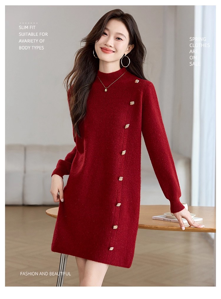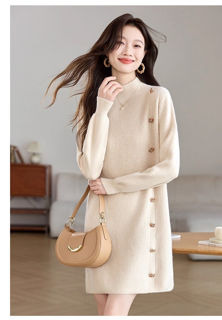 MY14886# 高端气质半高领针织羊毛裙新款洋气减龄中长款遮屁股毛衣裙女裝貨源服裝批發