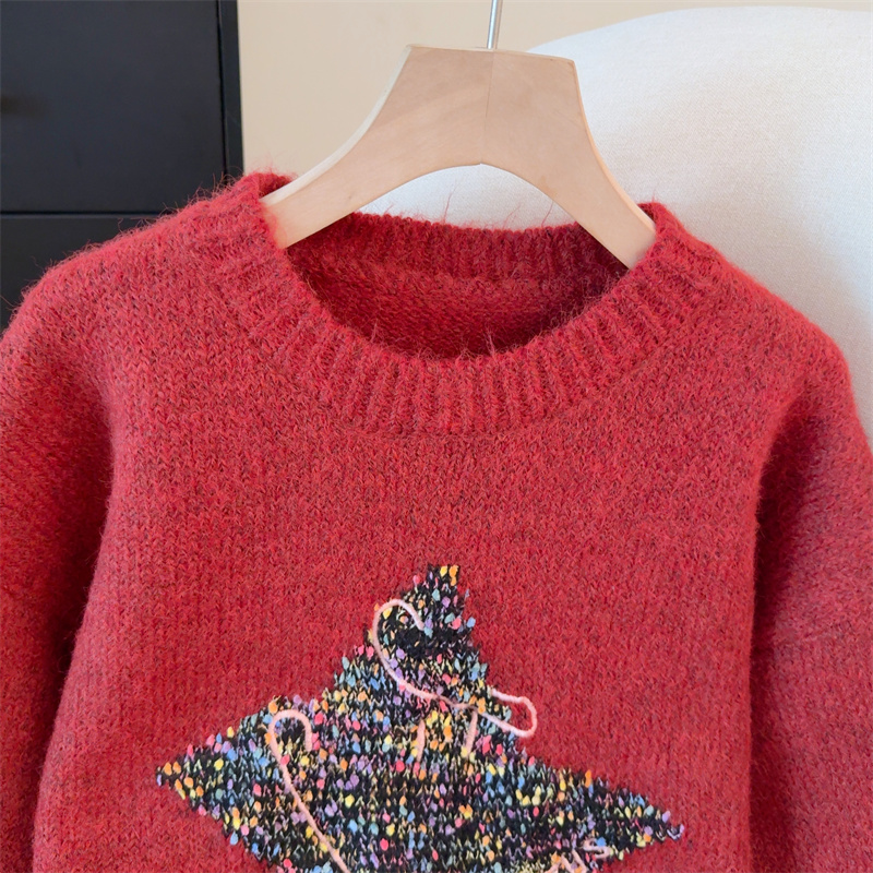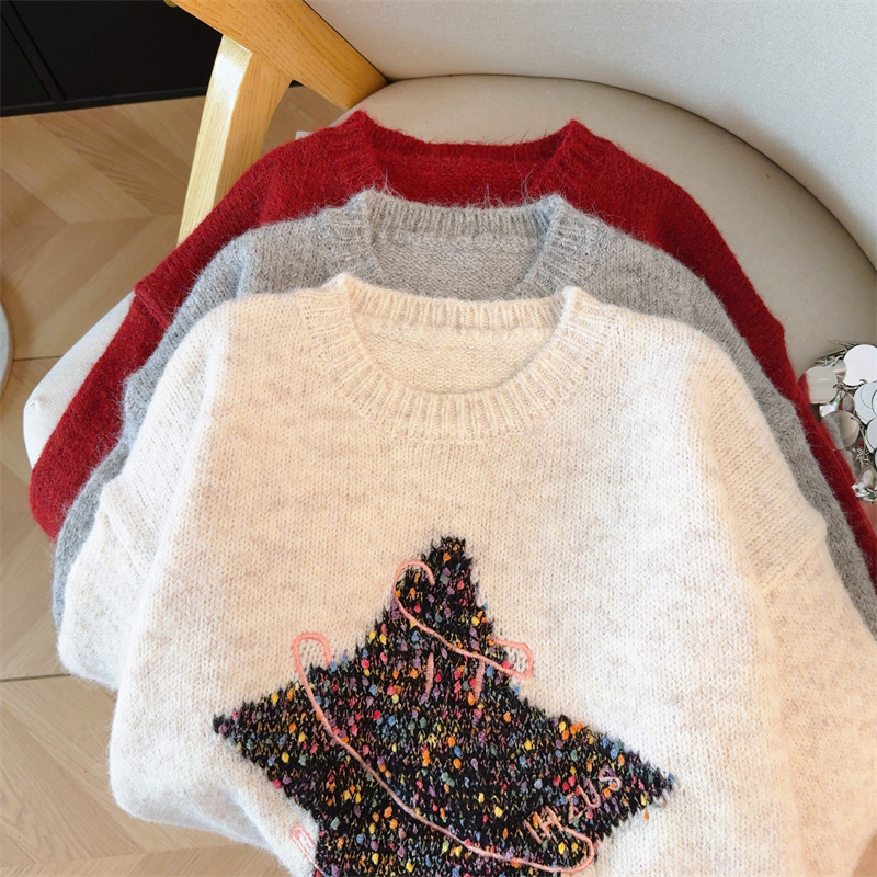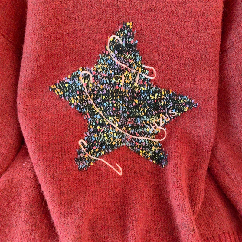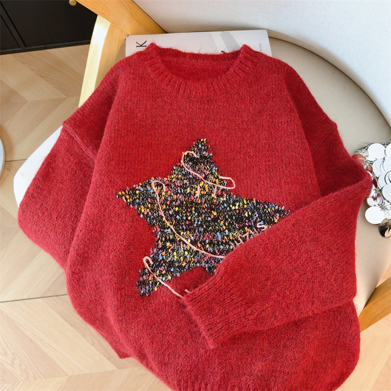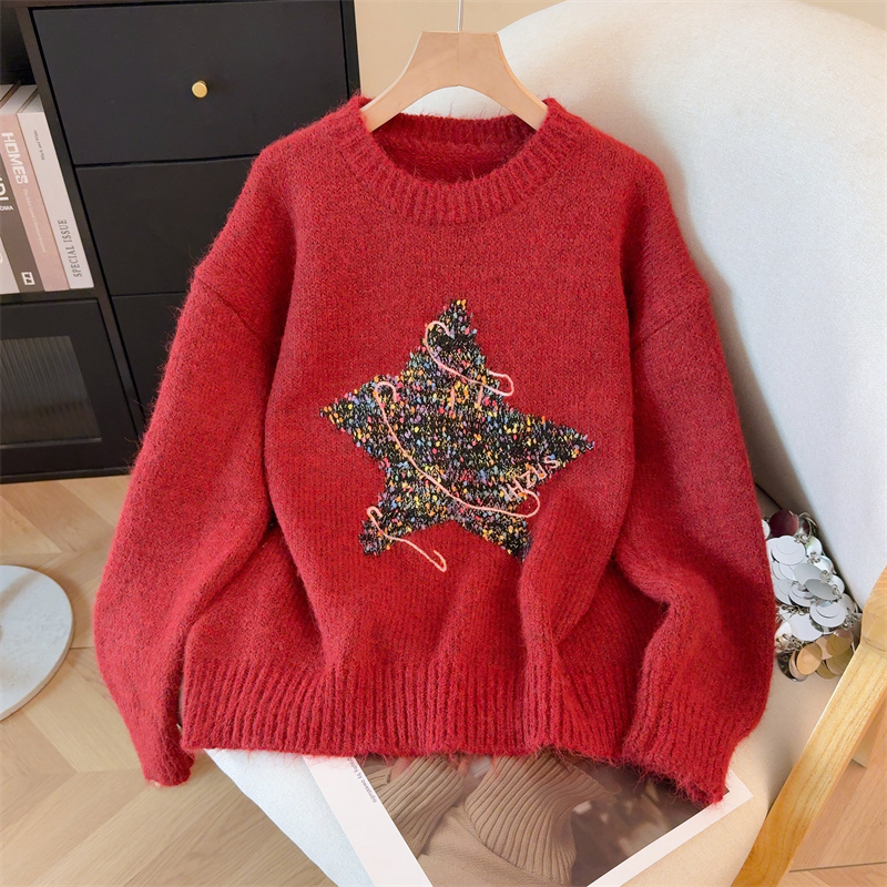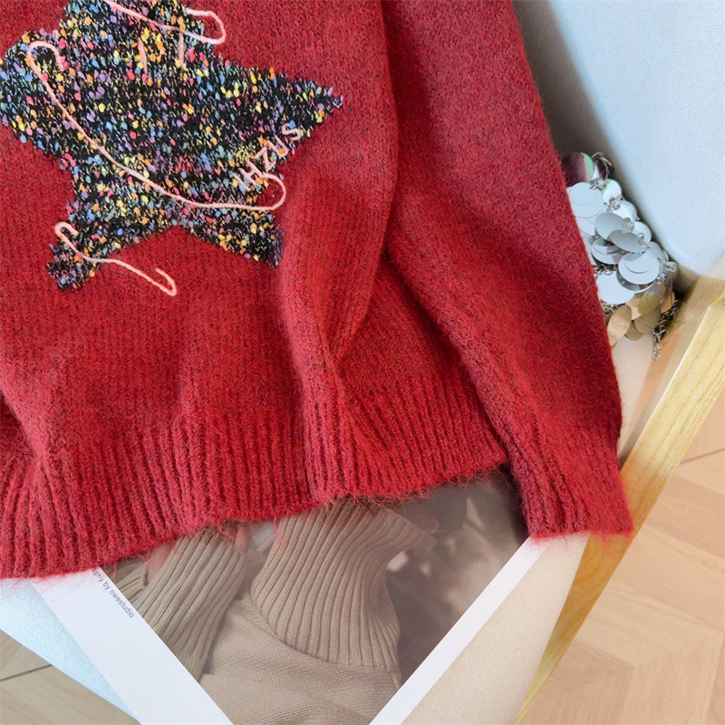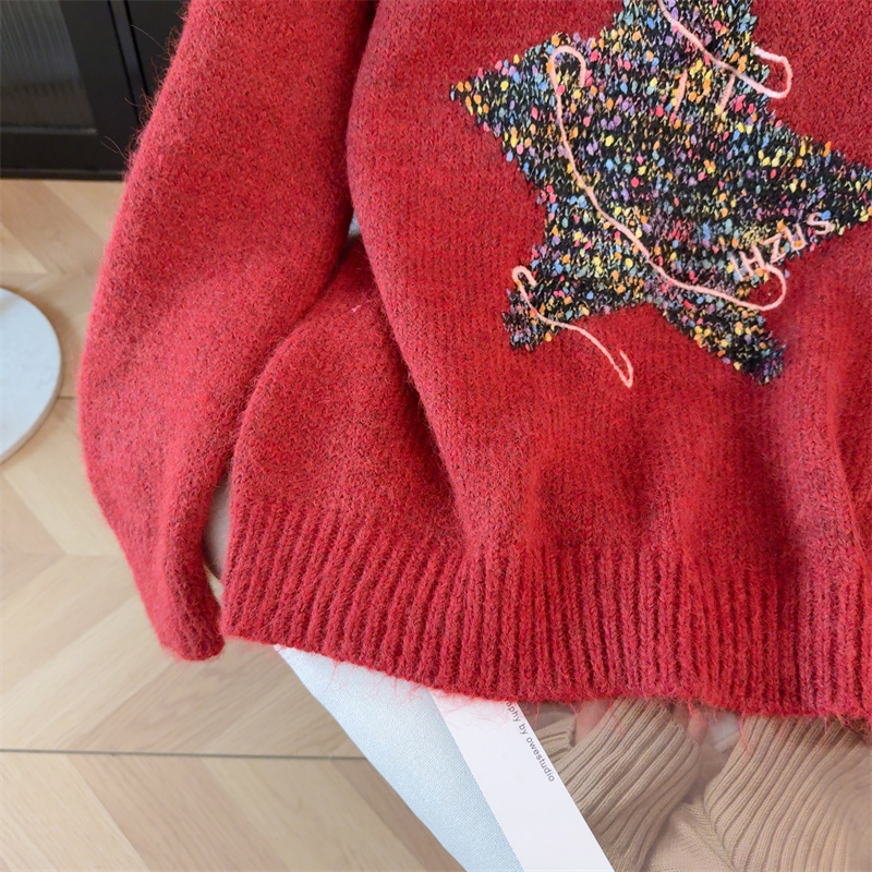 MY14891# 本命年穿搭红色星星毛衣新款加厚氛围感跨年针织上衣女裝貨源服裝批發