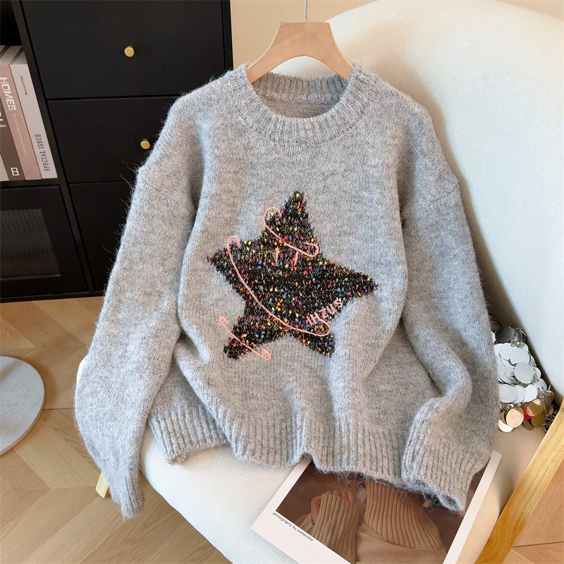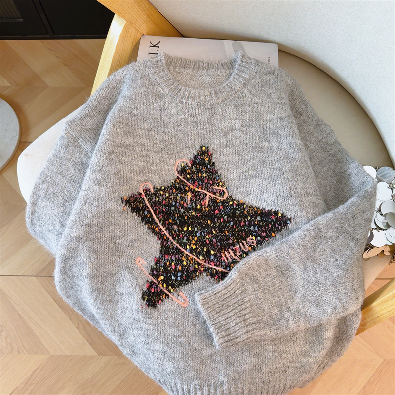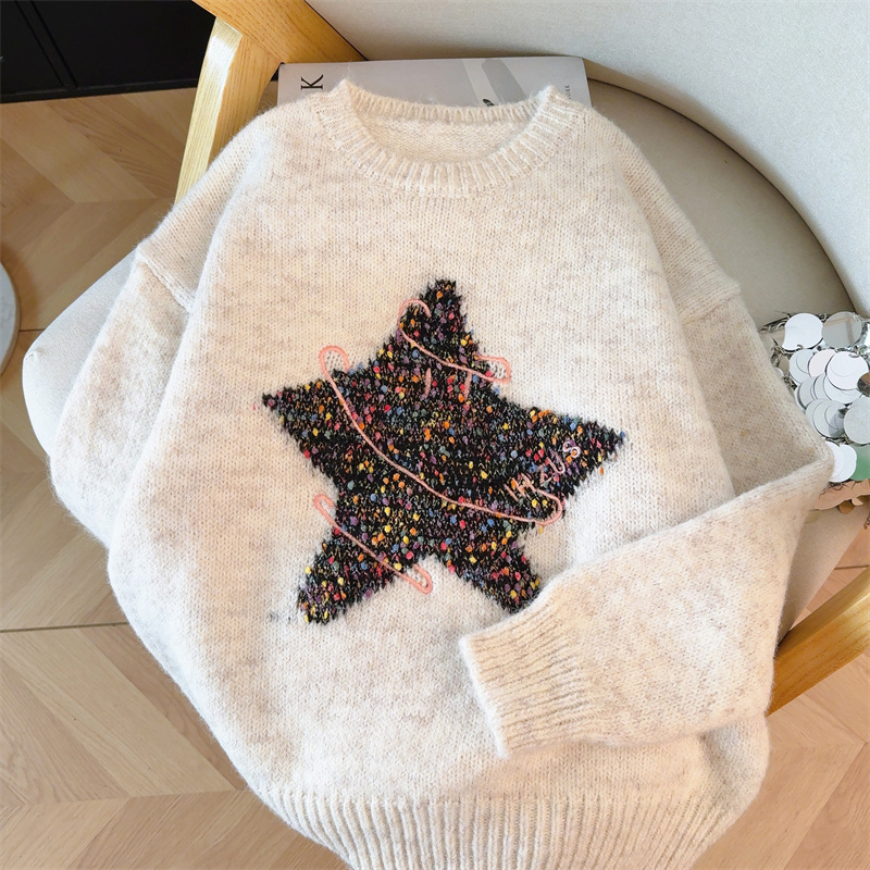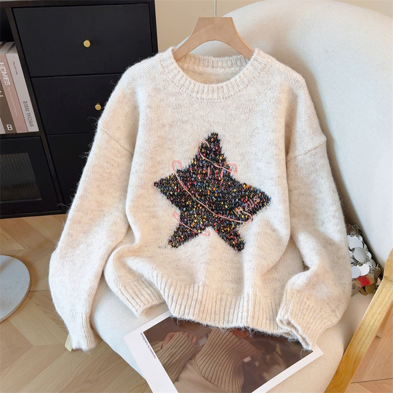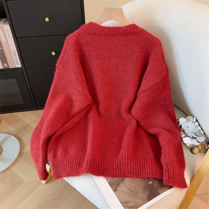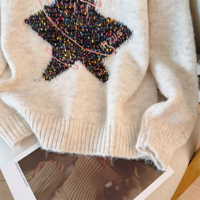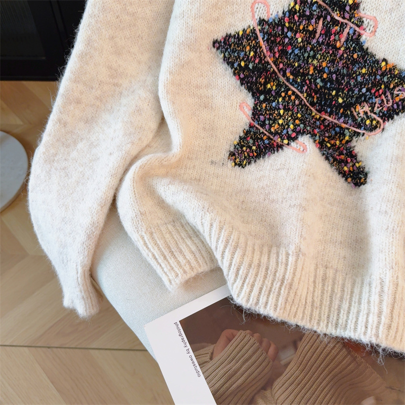MY14891# 本命年穿搭红色星星毛衣新款加厚氛围感跨年针织上衣女裝貨源服裝批發