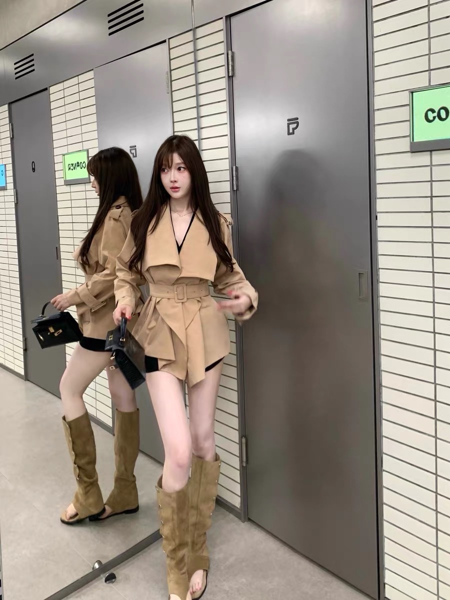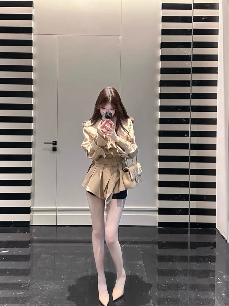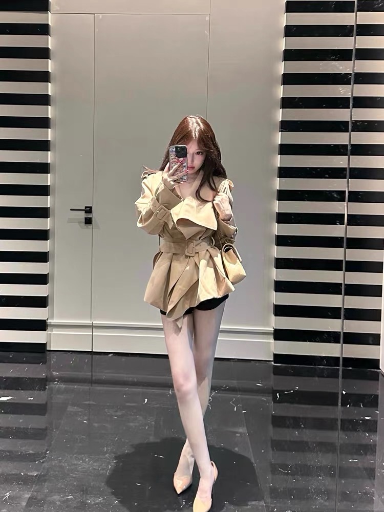 MY14911# 卡其色大翻领气质风衣外套女显瘦收腰高级感小众休闲开衫上衣女裝貨源服裝批發