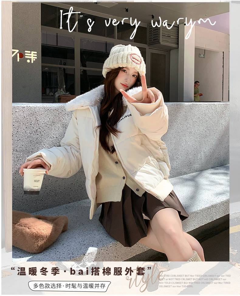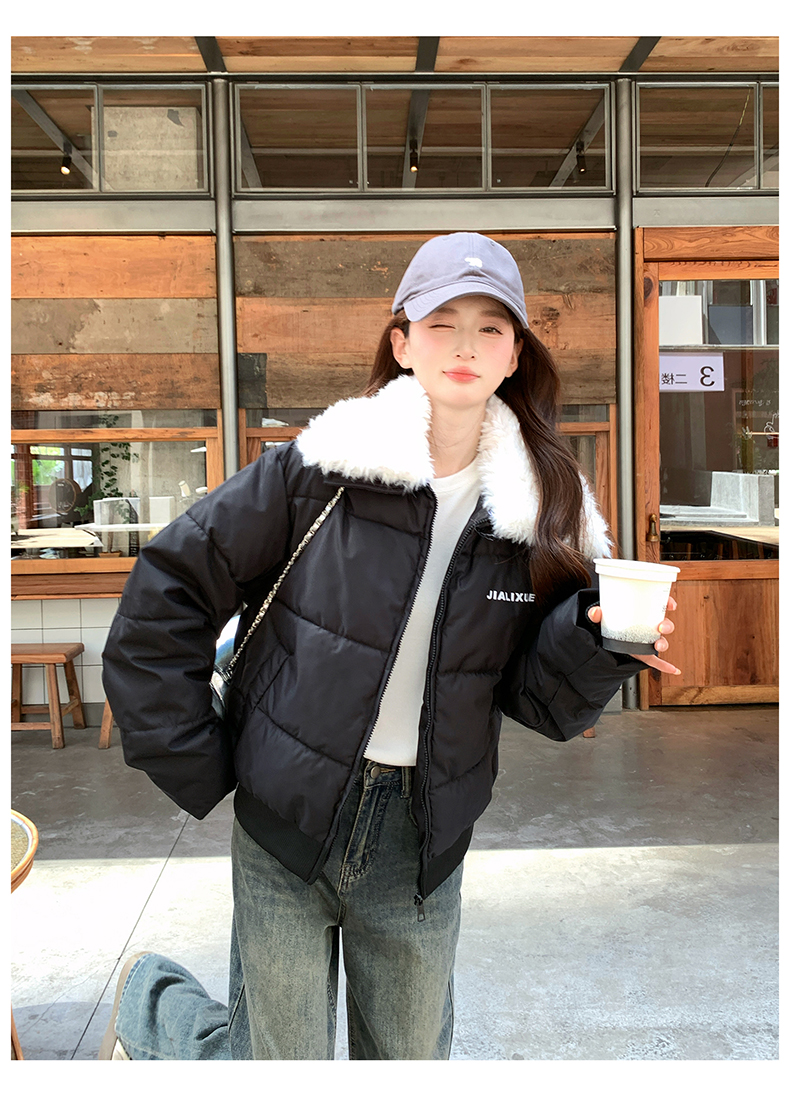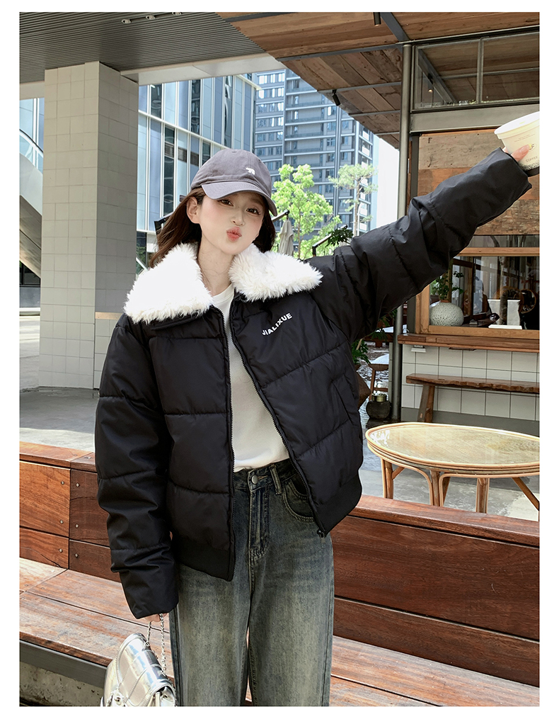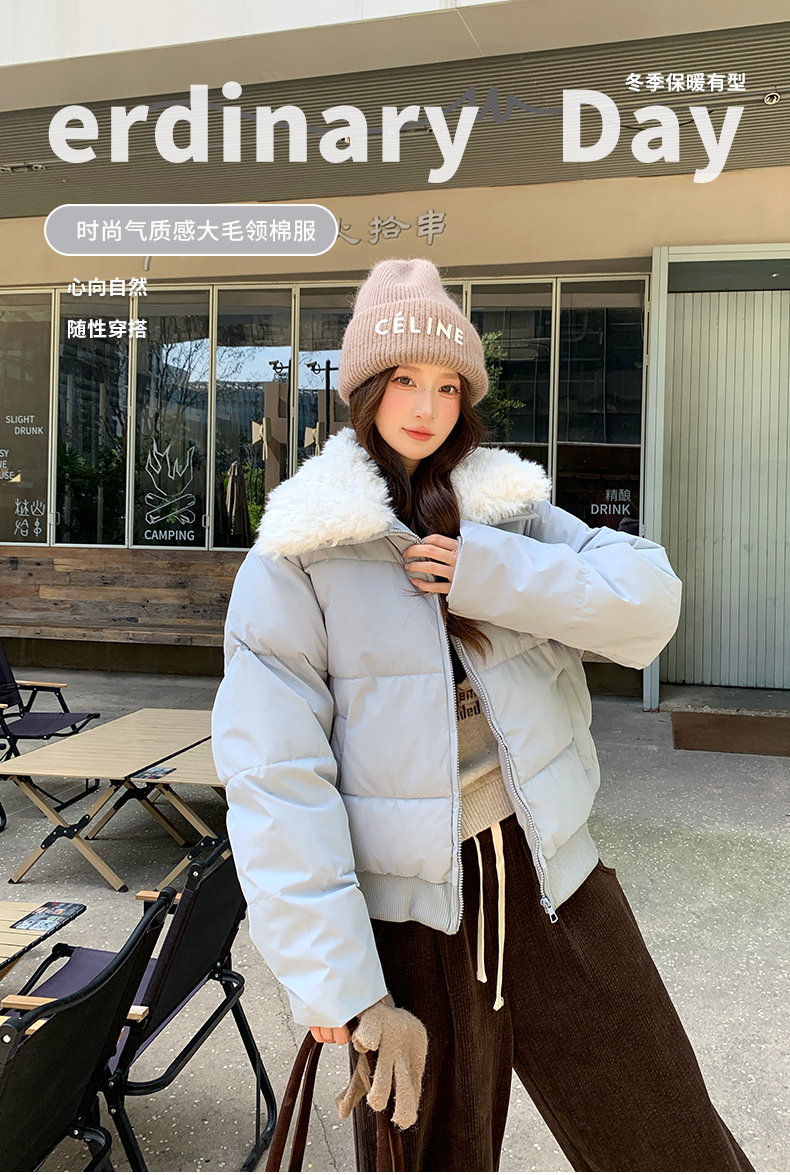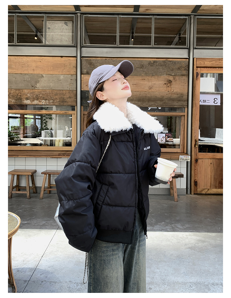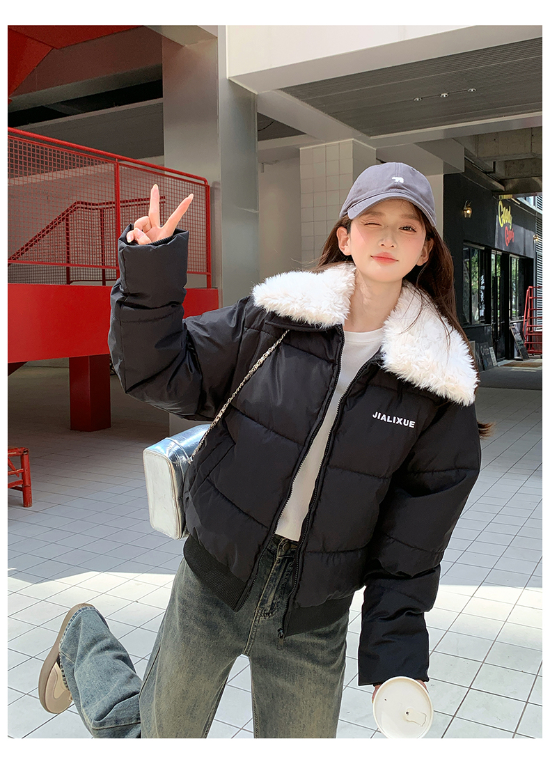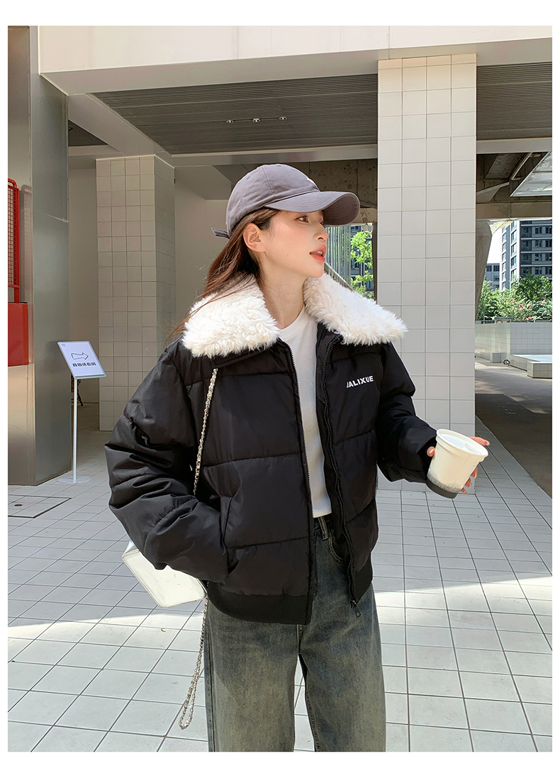 MY14916# 美式羊羔毛领短款棉服外套新款小个子面包服加厚加厚女裝貨源服裝批發