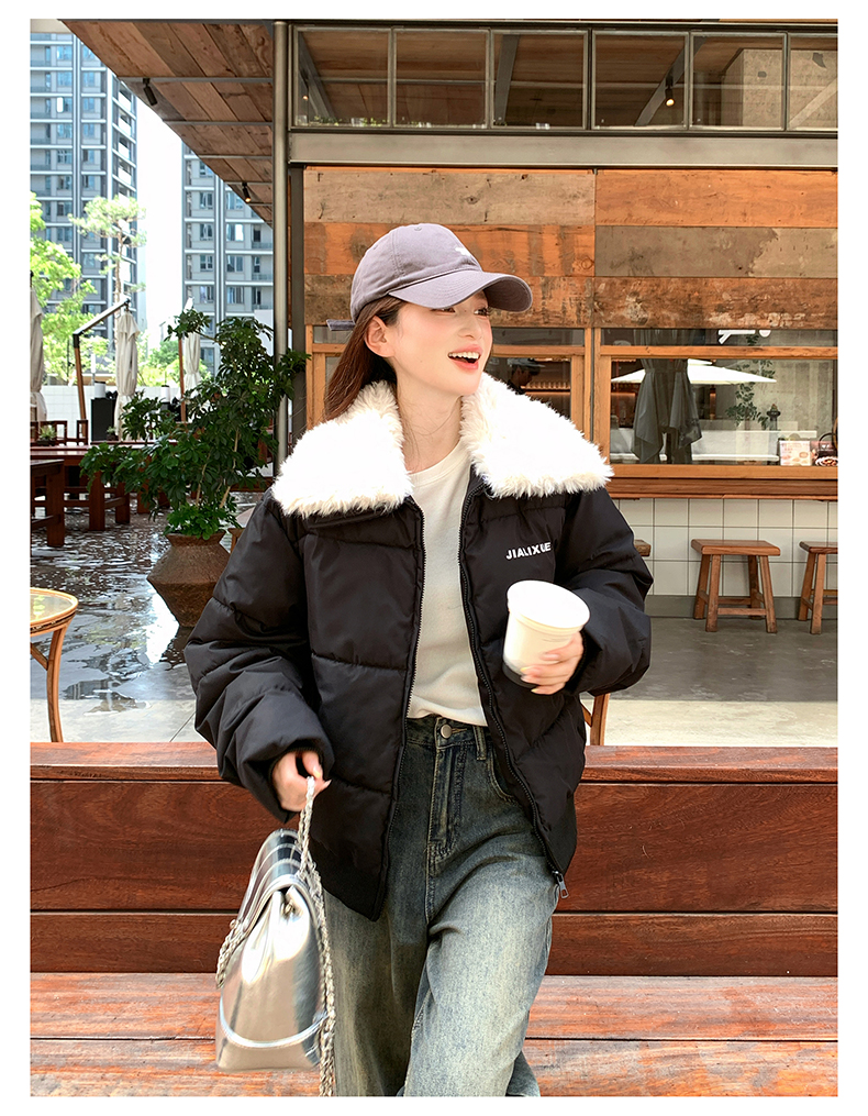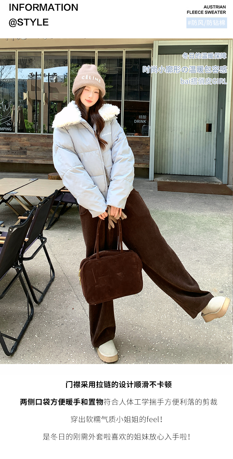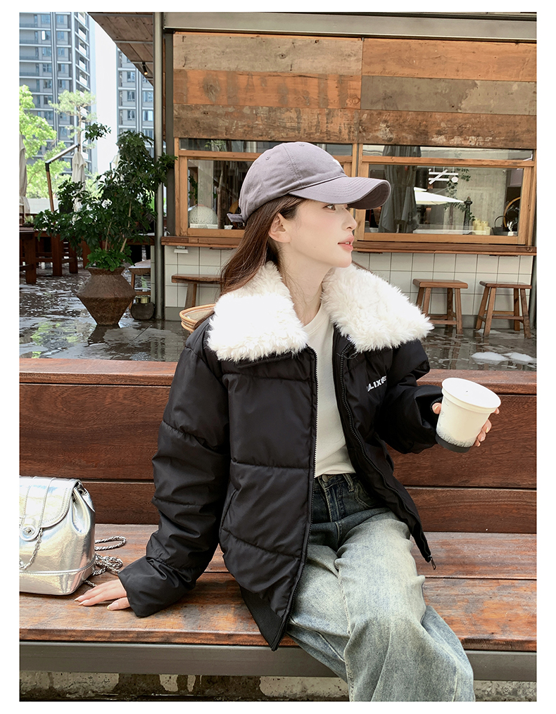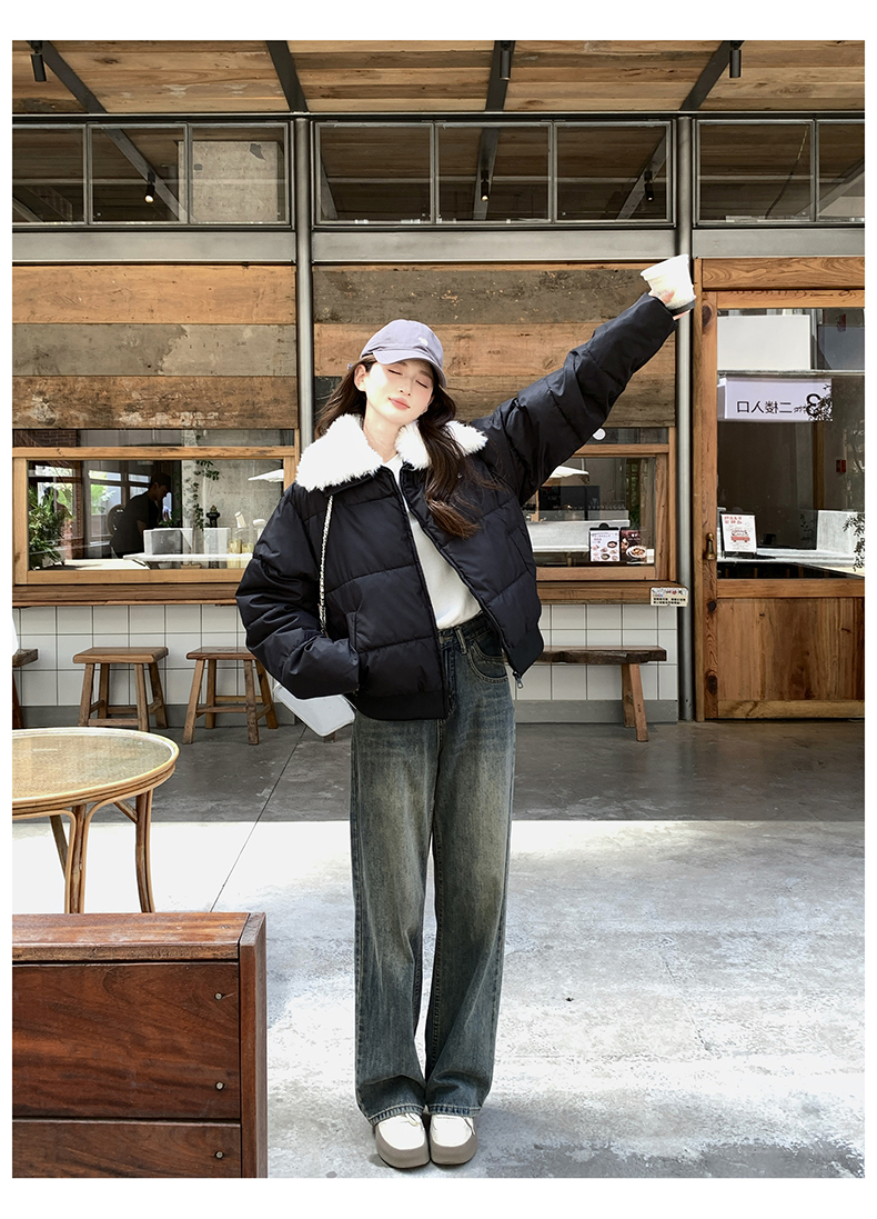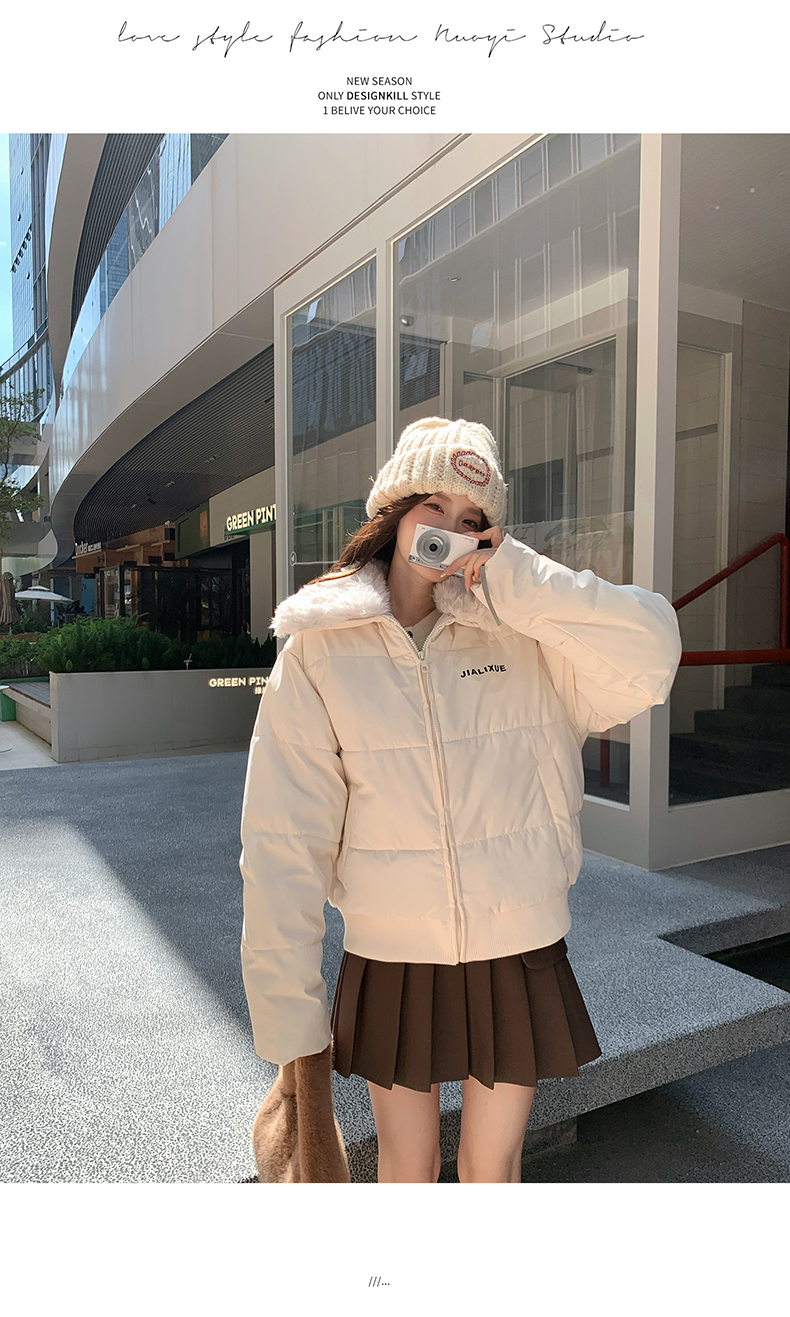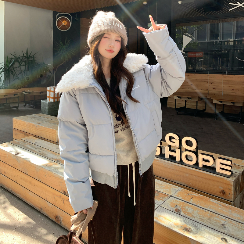MY14916# 美式羊羔毛领短款棉服外套新款小个子面包服加厚加厚女裝貨源服裝批發