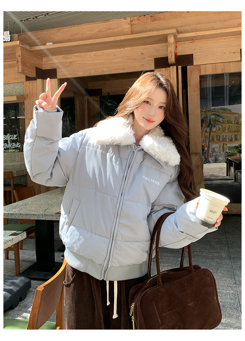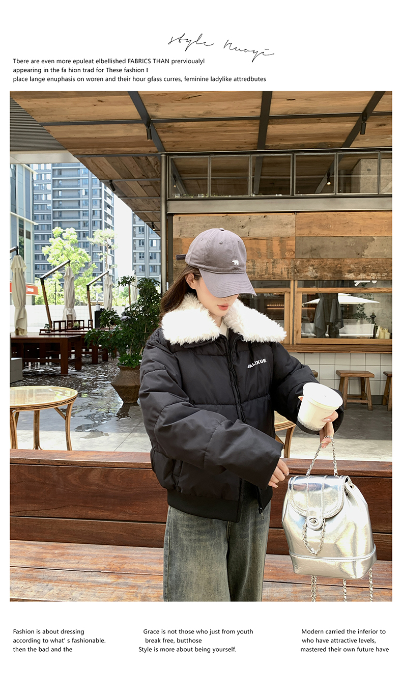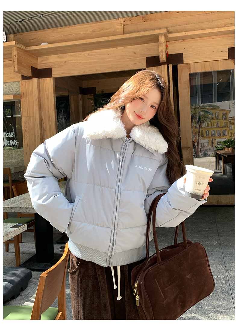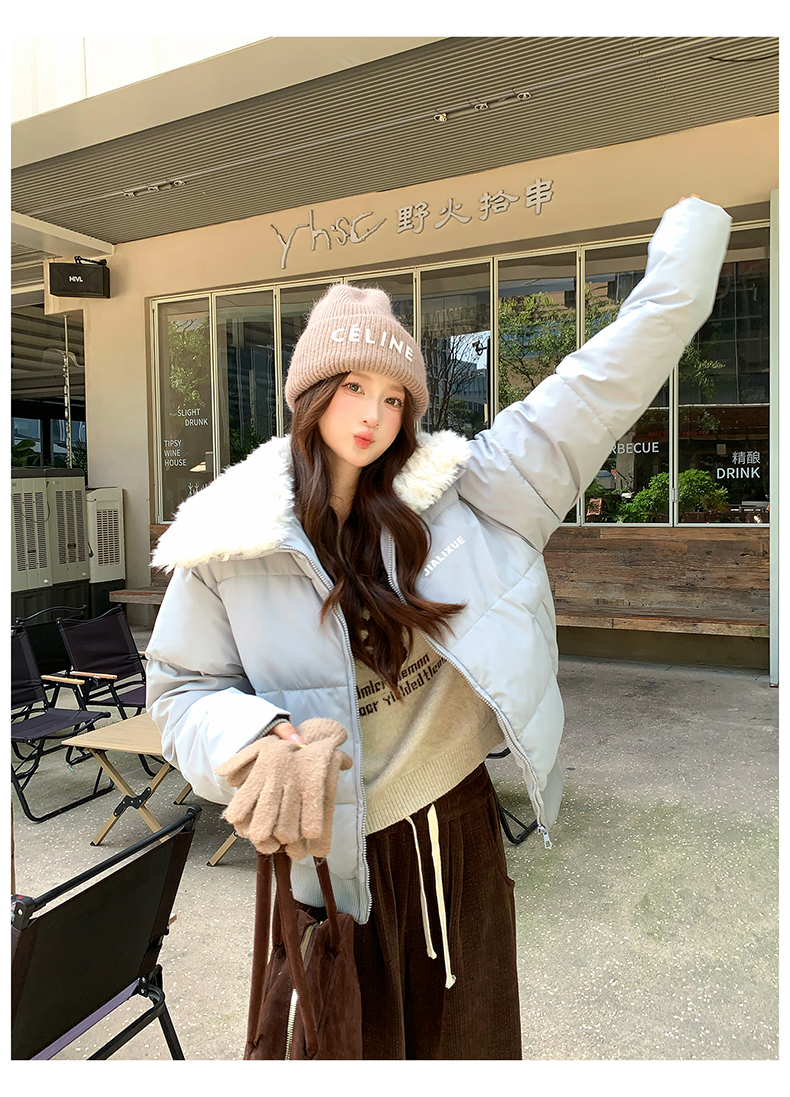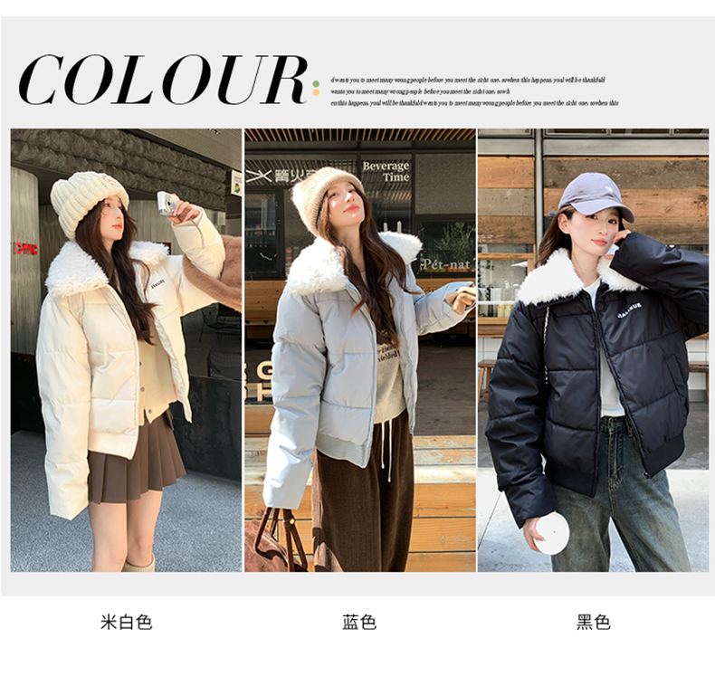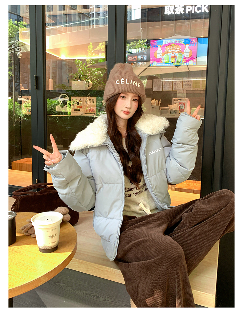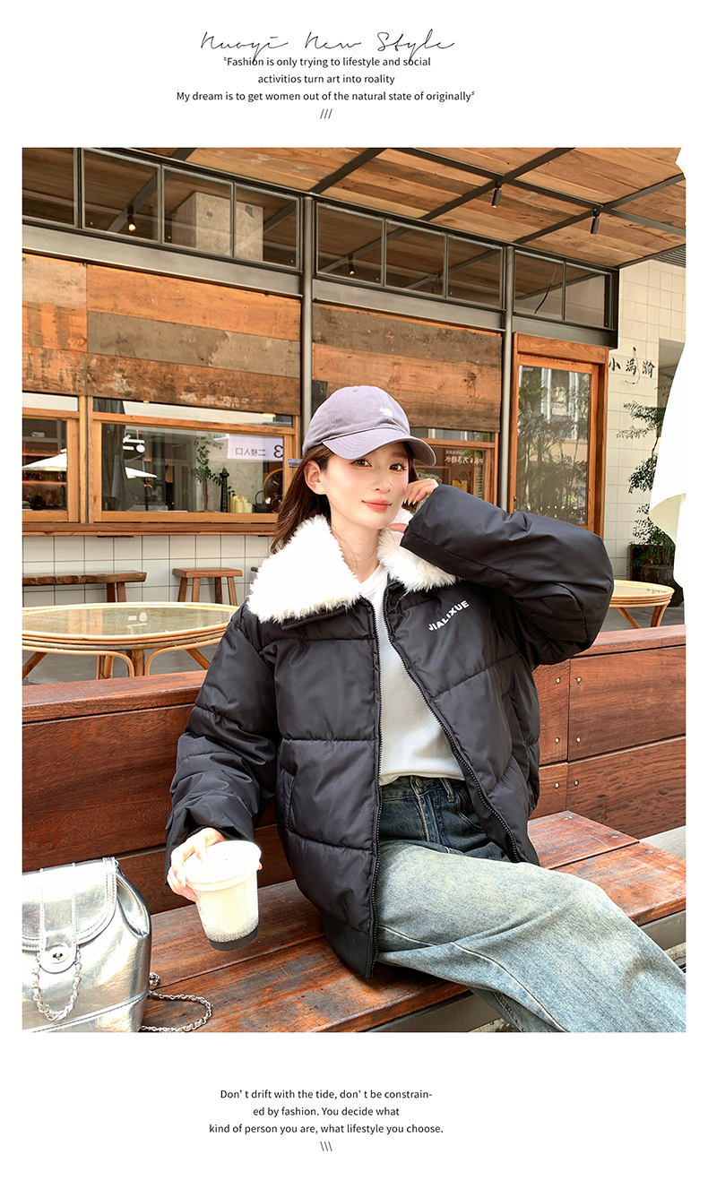 MY14916# 美式羊羔毛领短款棉服外套新款小个子面包服加厚加厚女裝貨源服裝批發