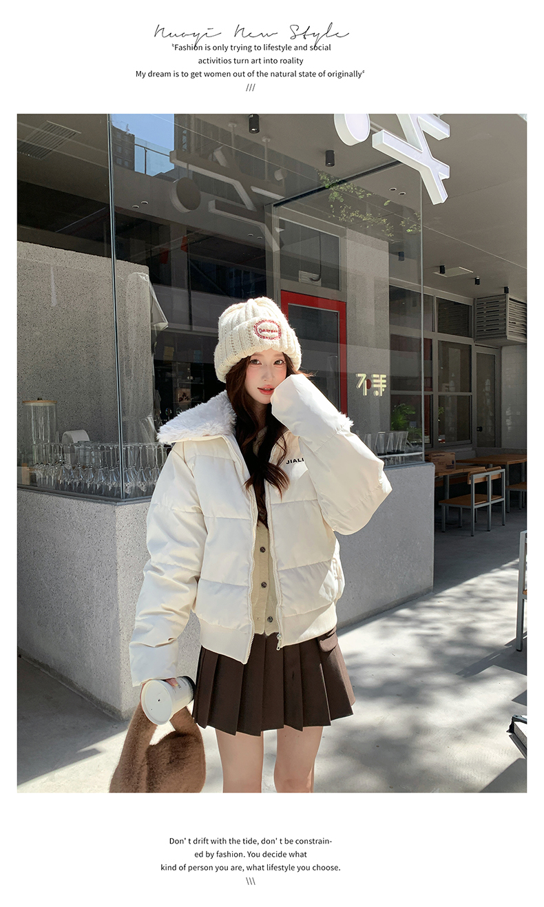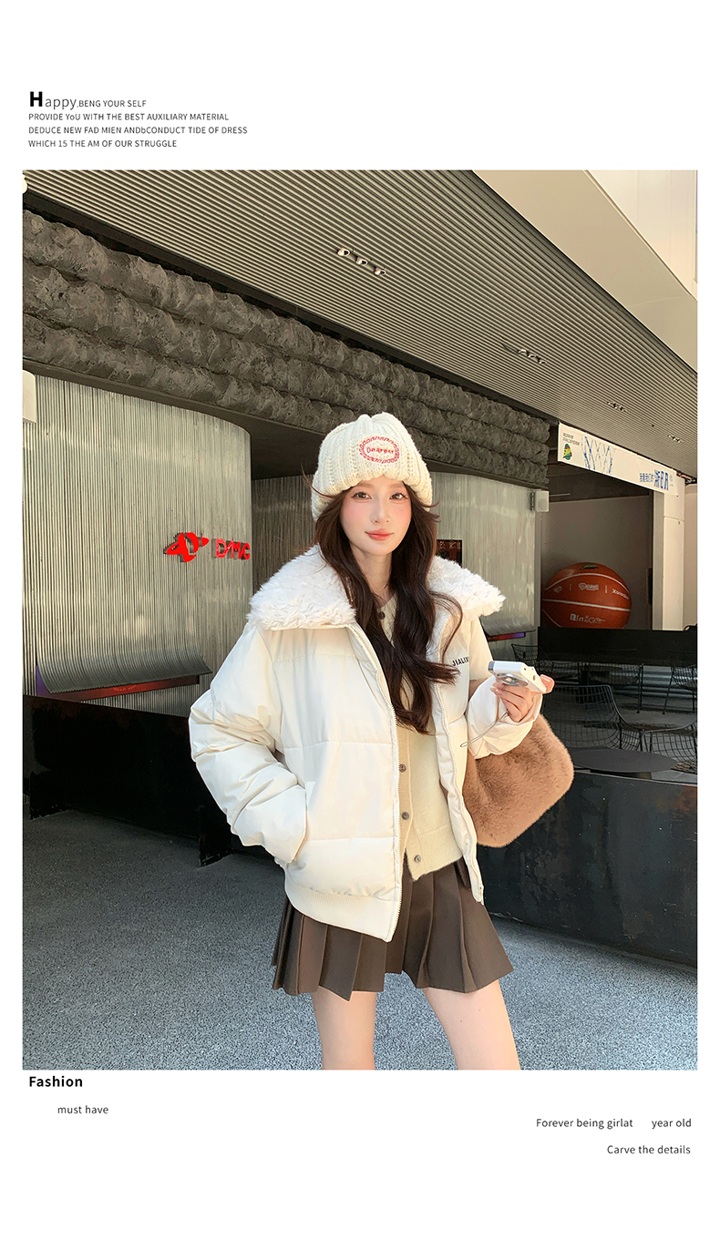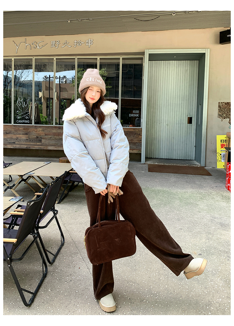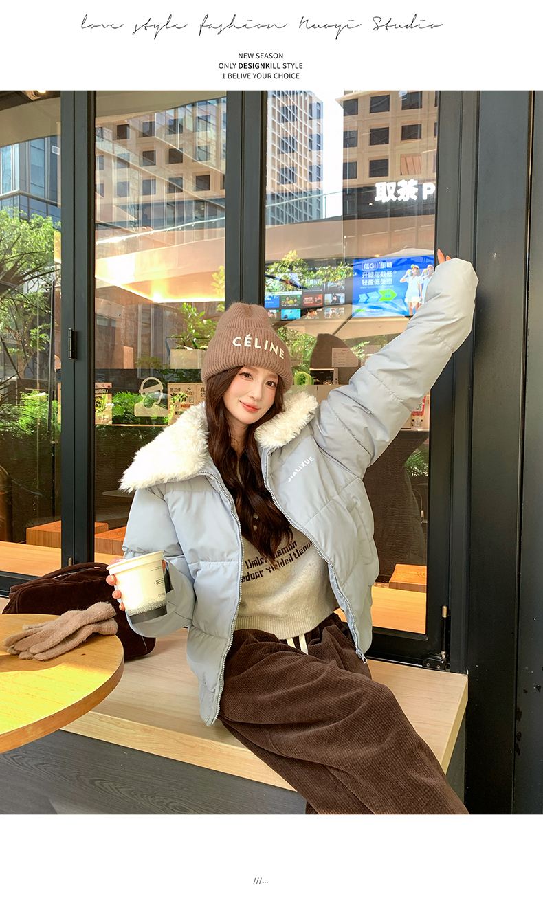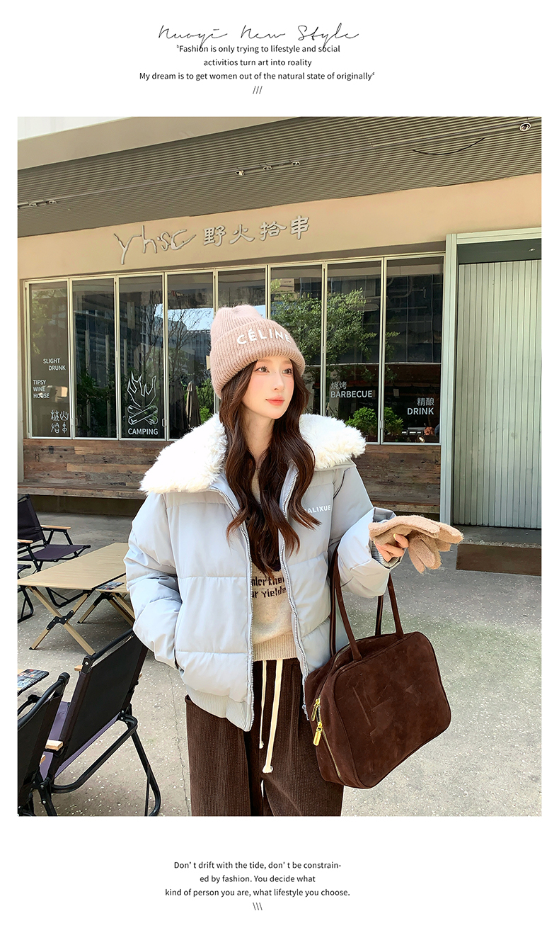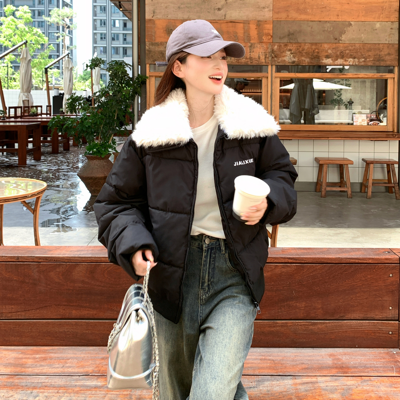 MY14916# 美式羊羔毛领短款棉服外套新款小个子面包服加厚加厚女裝貨源服裝批發
