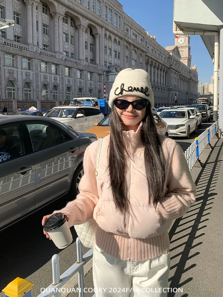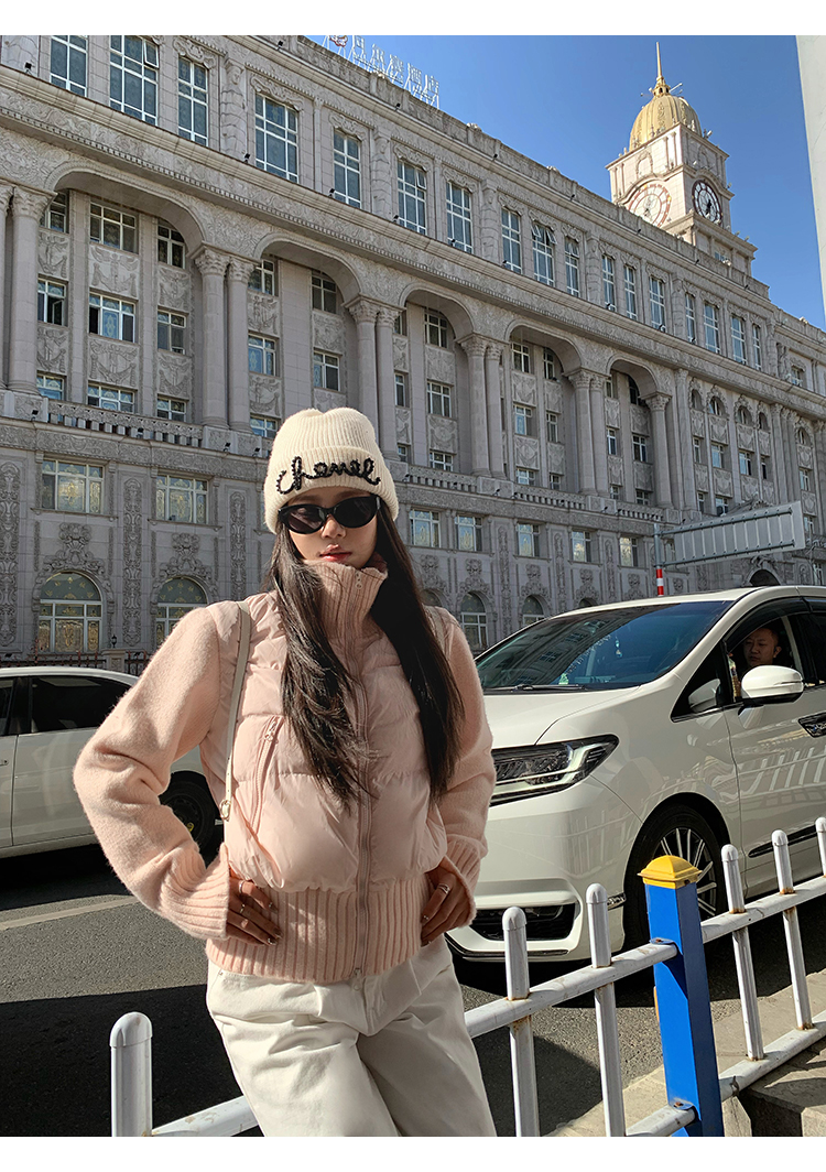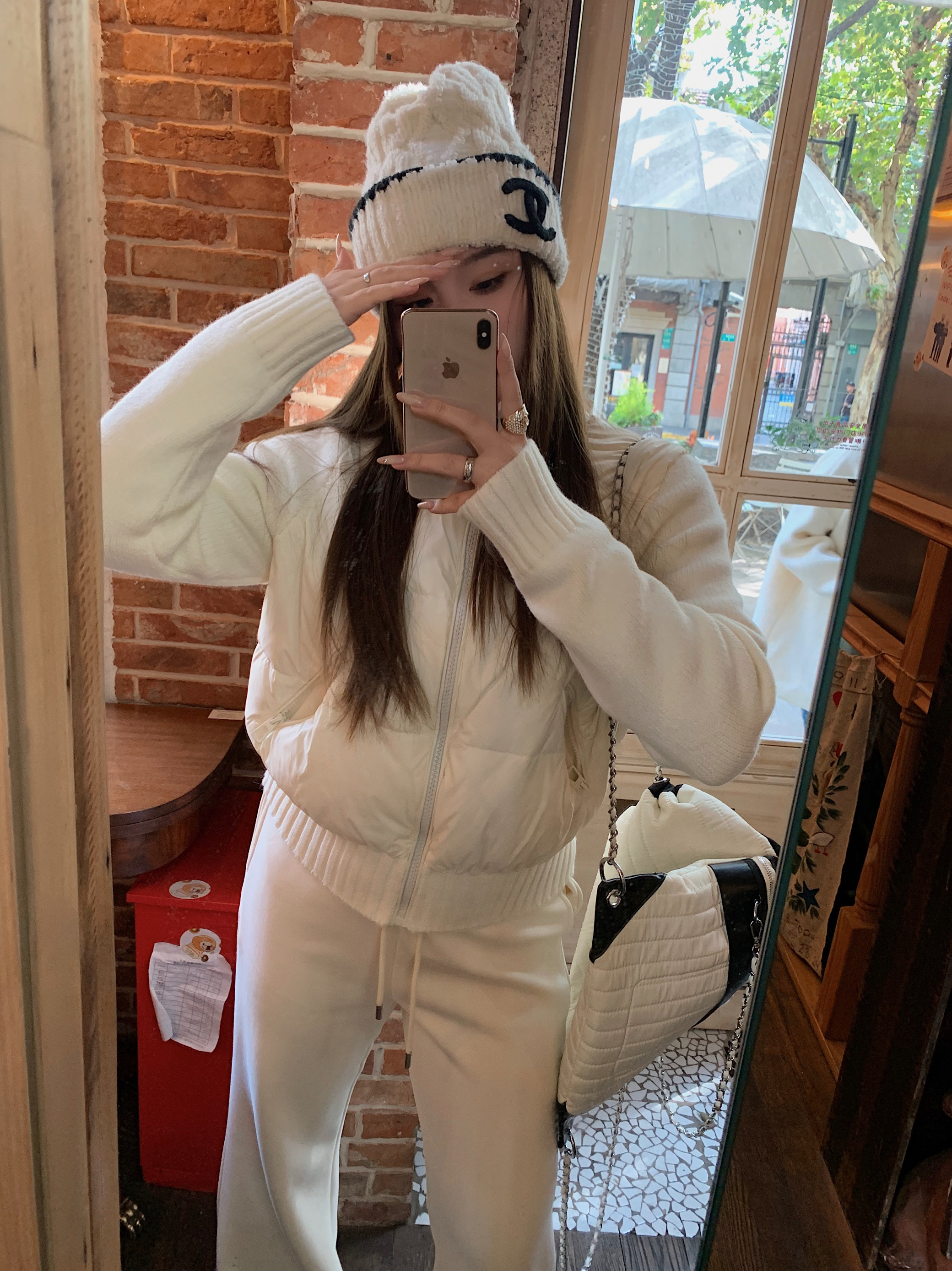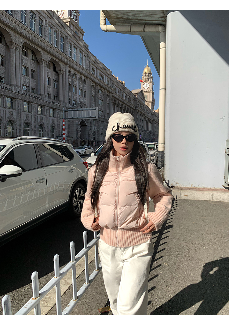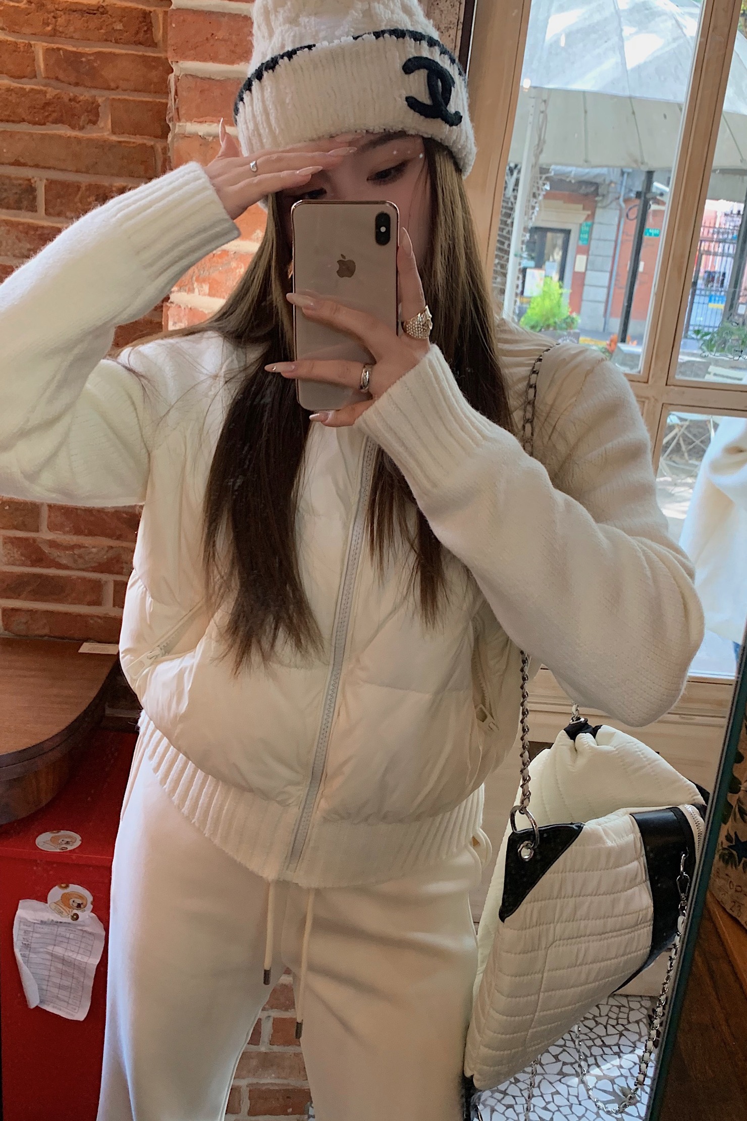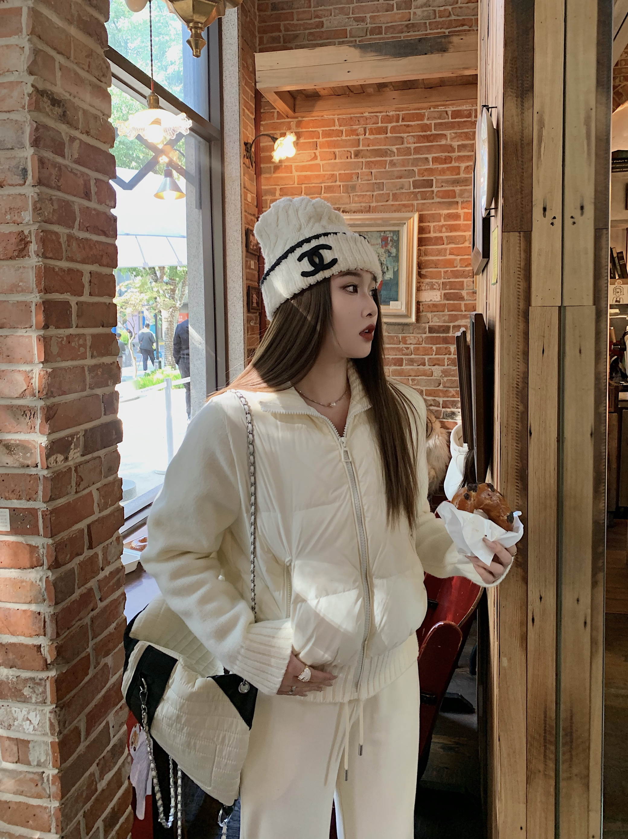 MY14919# 羊毛拼接新款法式气质设计感小众短款白色羽绒服保暖外套女裝貨源服裝批發