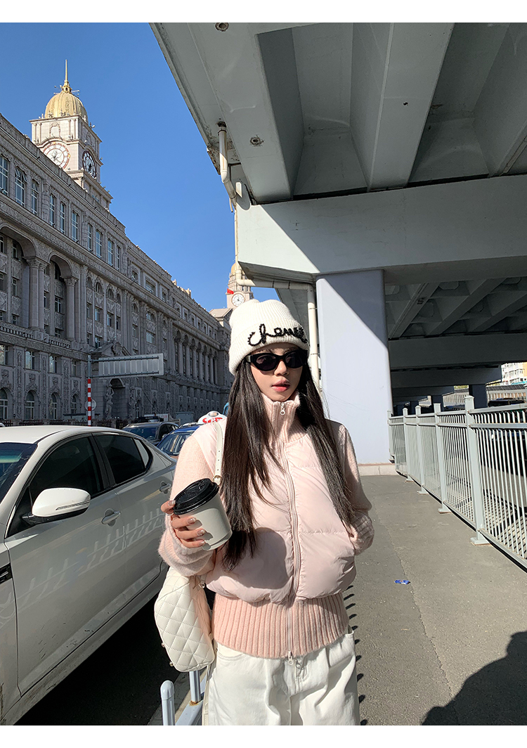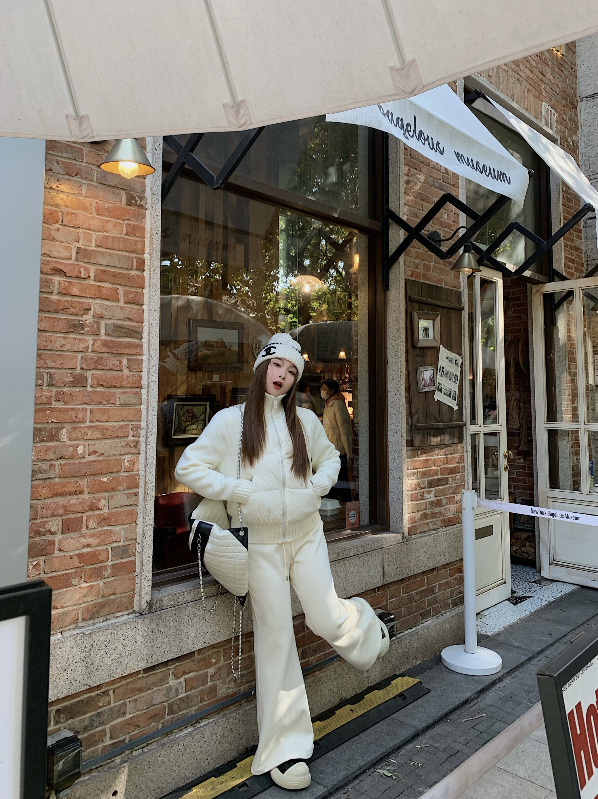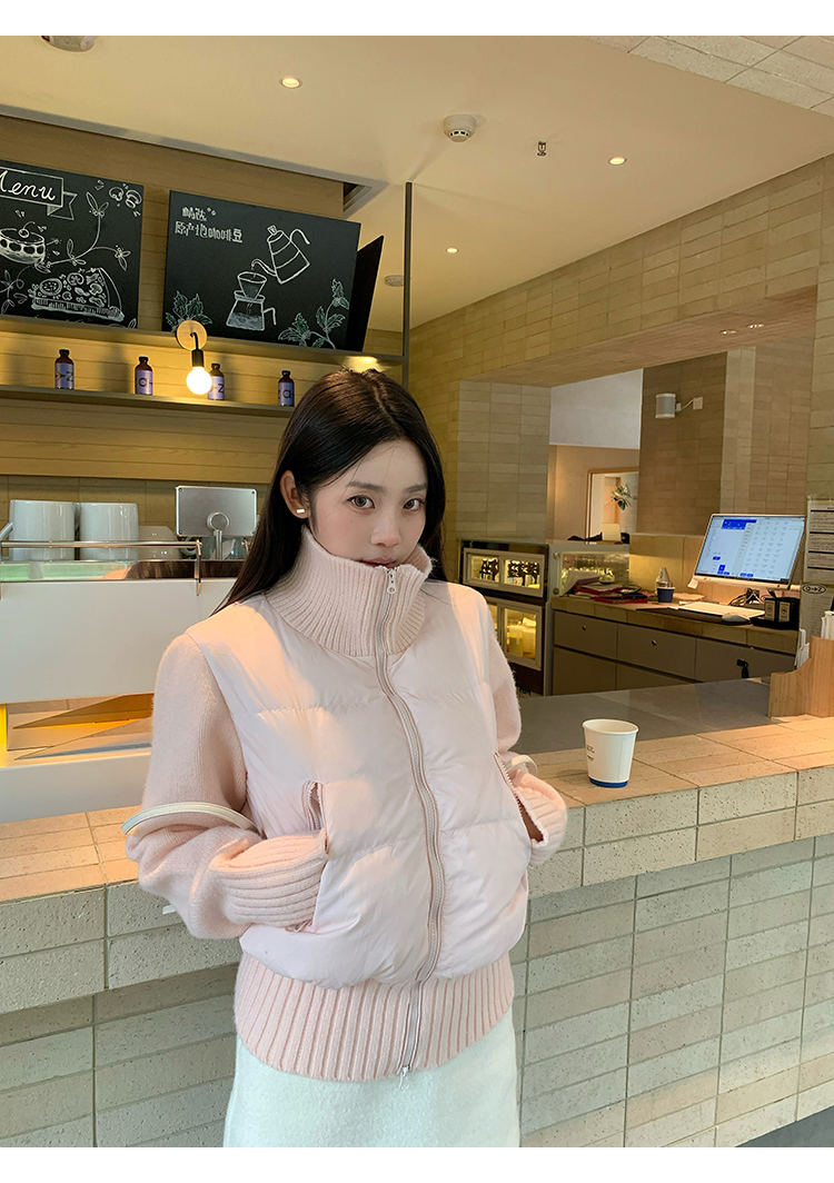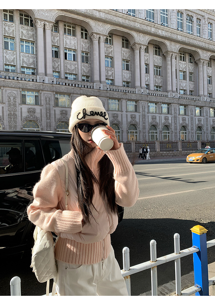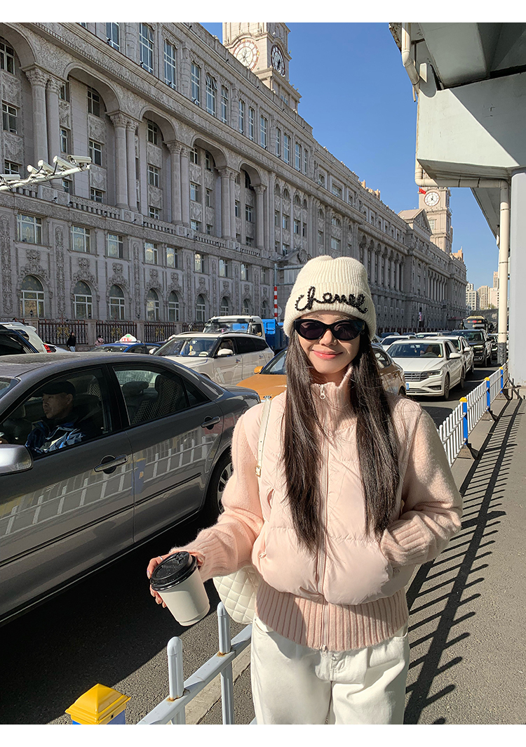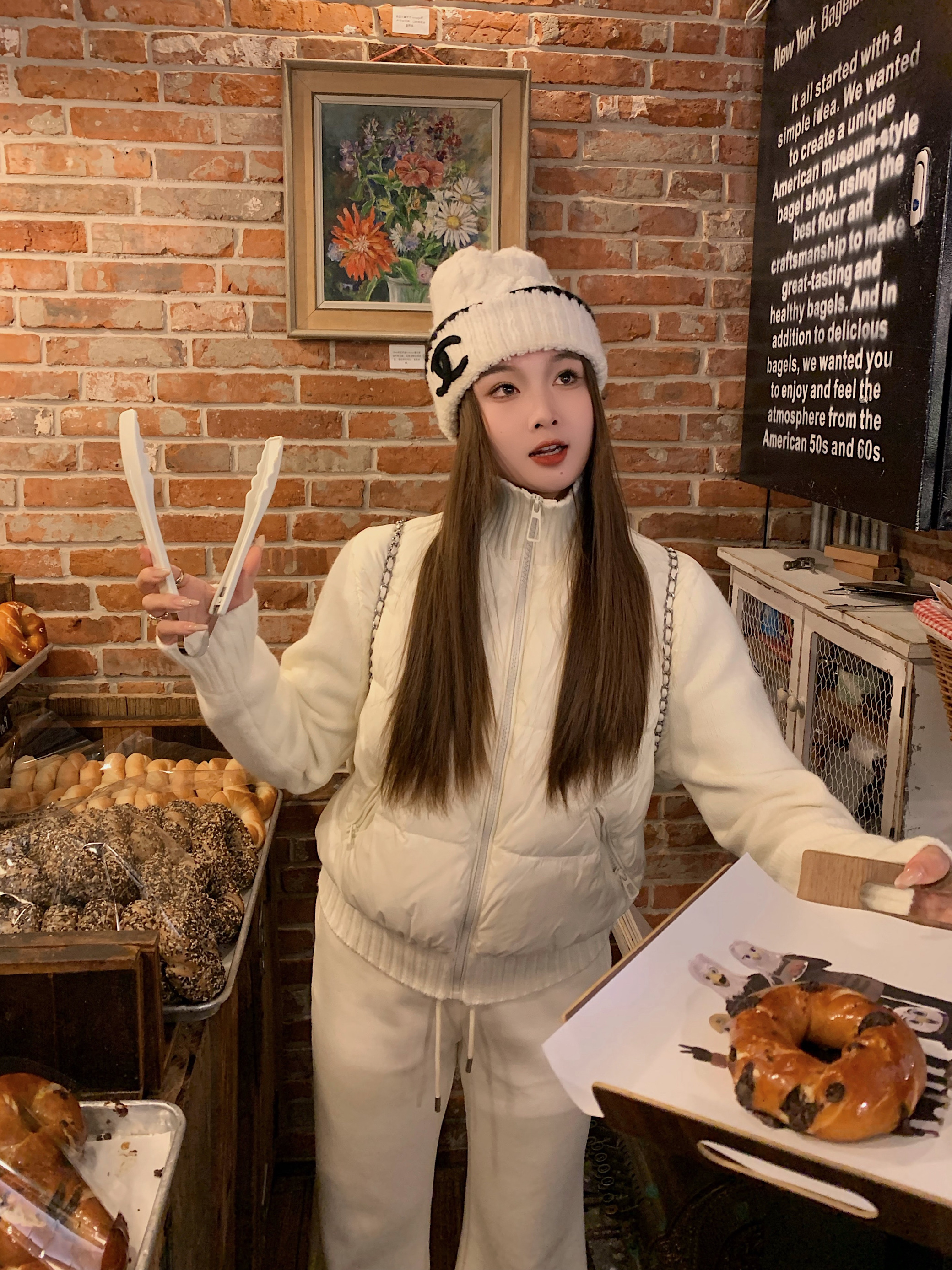 MY14919# 羊毛拼接新款法式气质设计感小众短款白色羽绒服保暖外套女裝貨源服裝批發