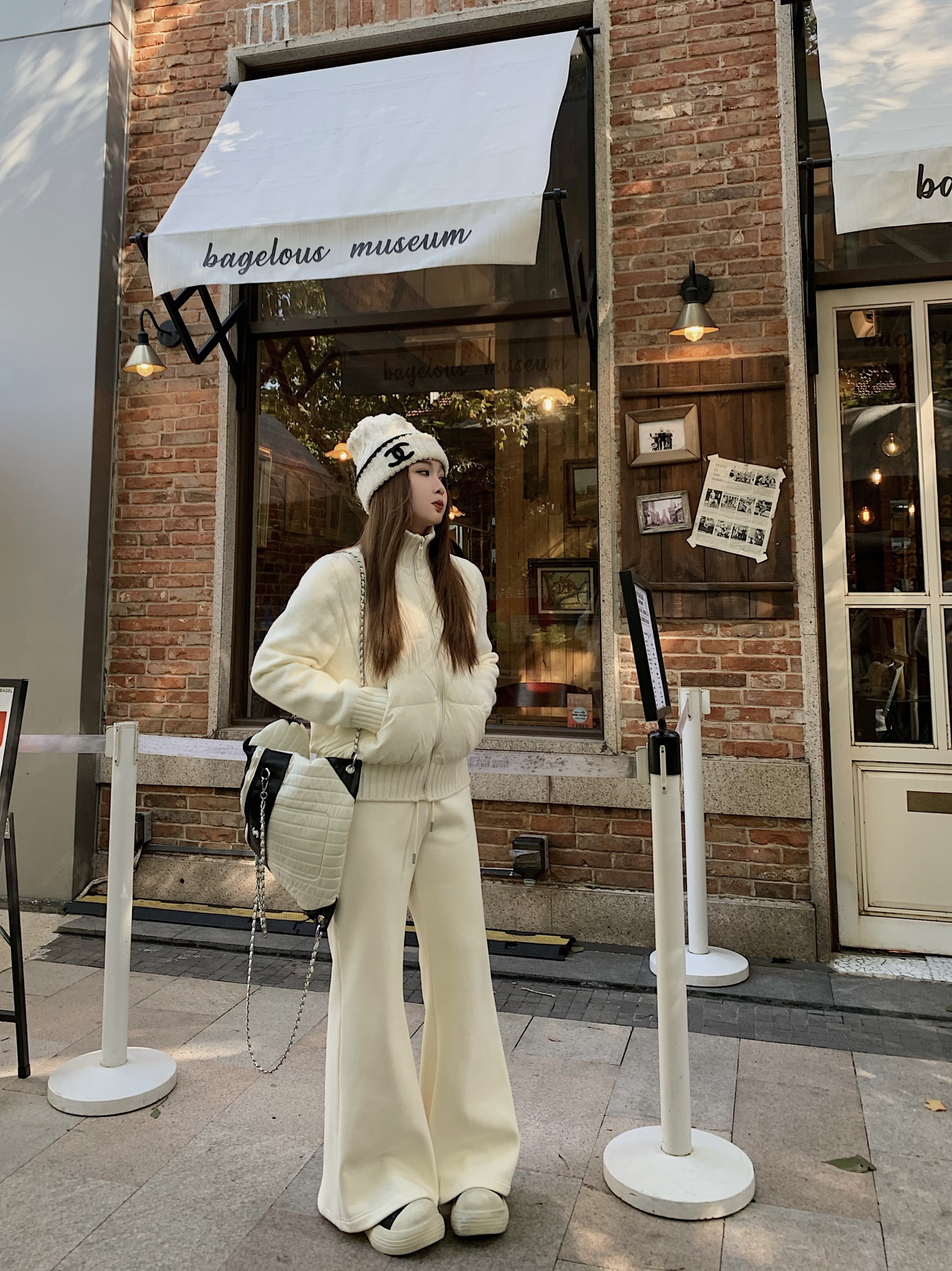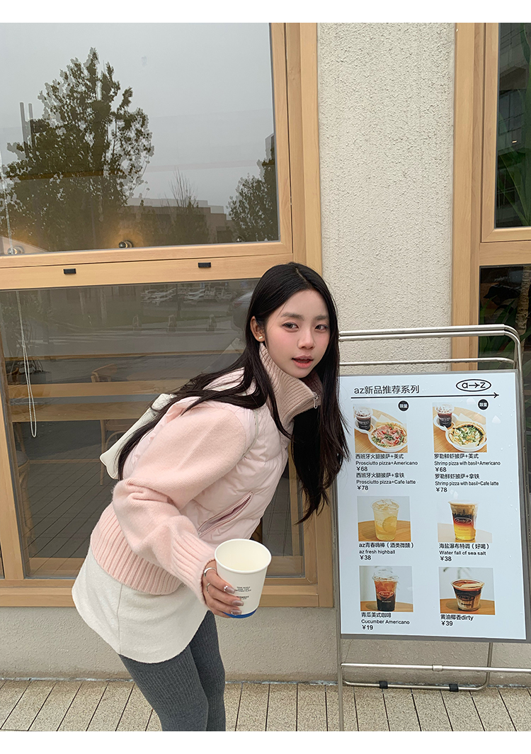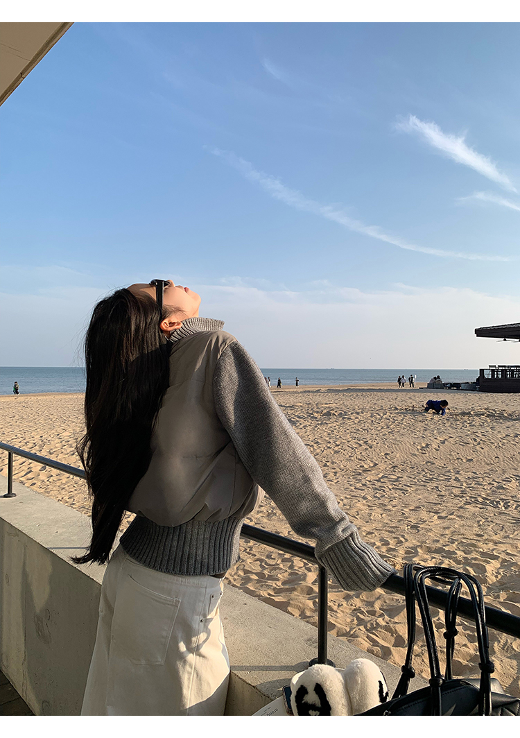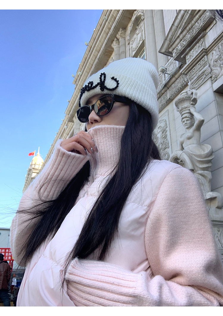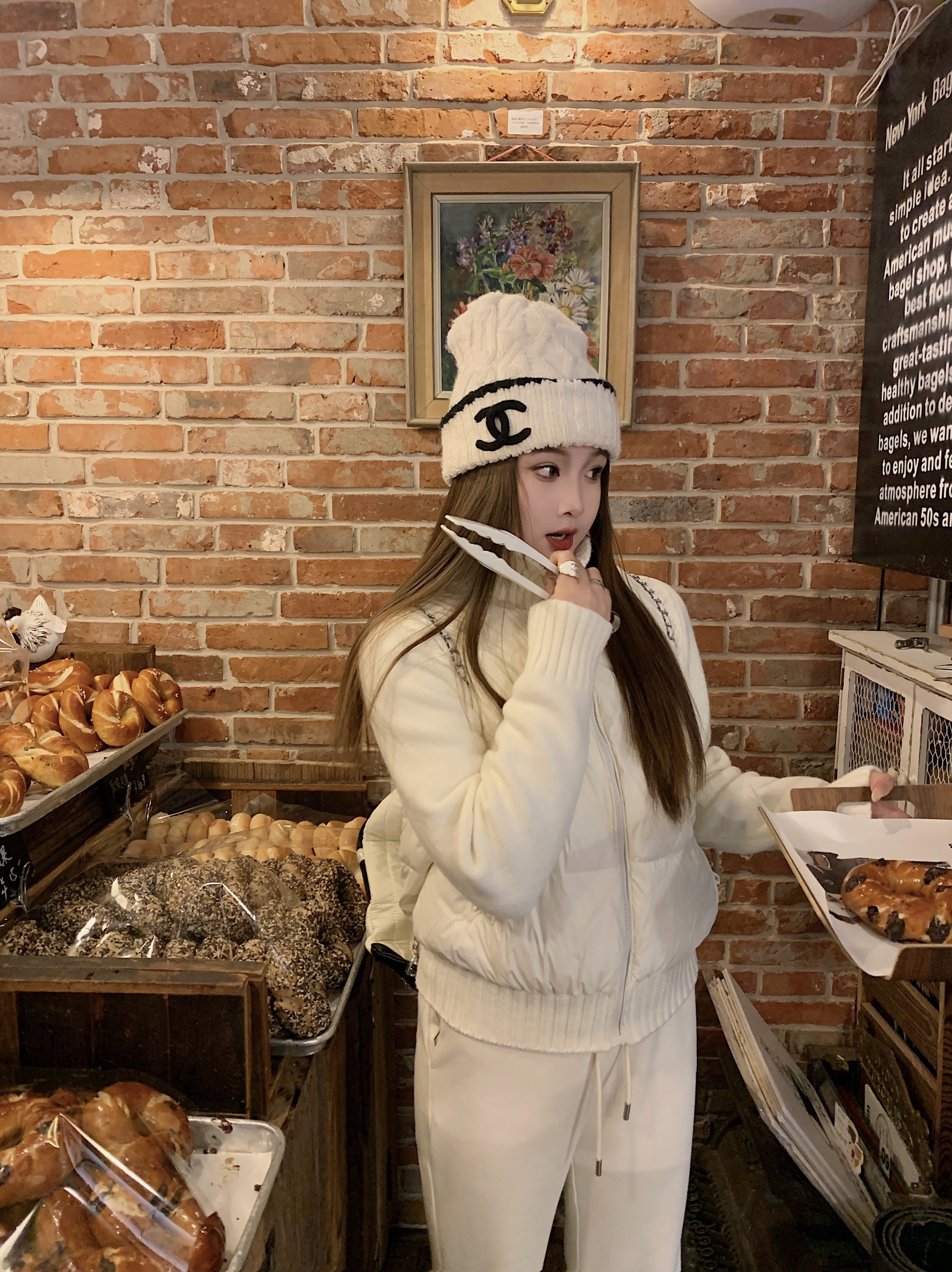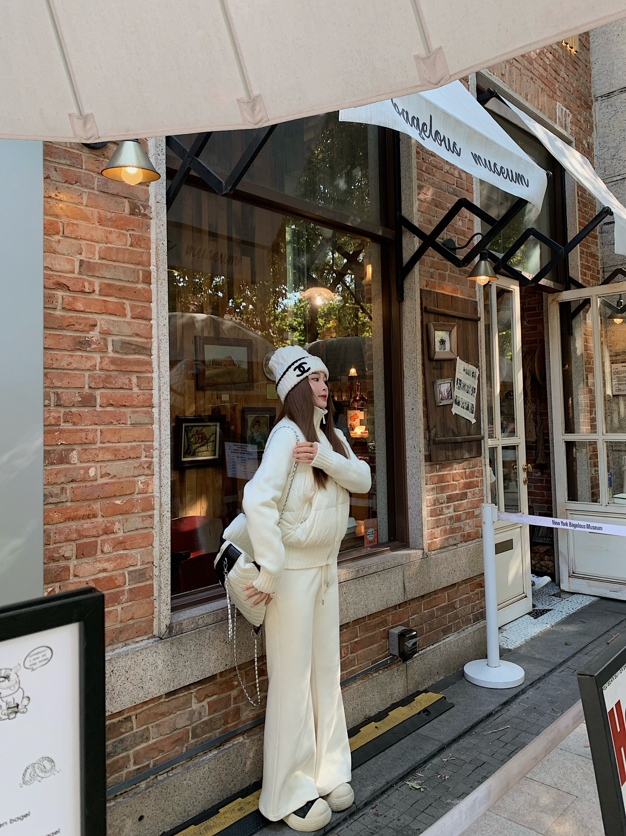 MY14919# 羊毛拼接新款法式气质设计感小众短款白色羽绒服保暖外套女裝貨源服裝批發
