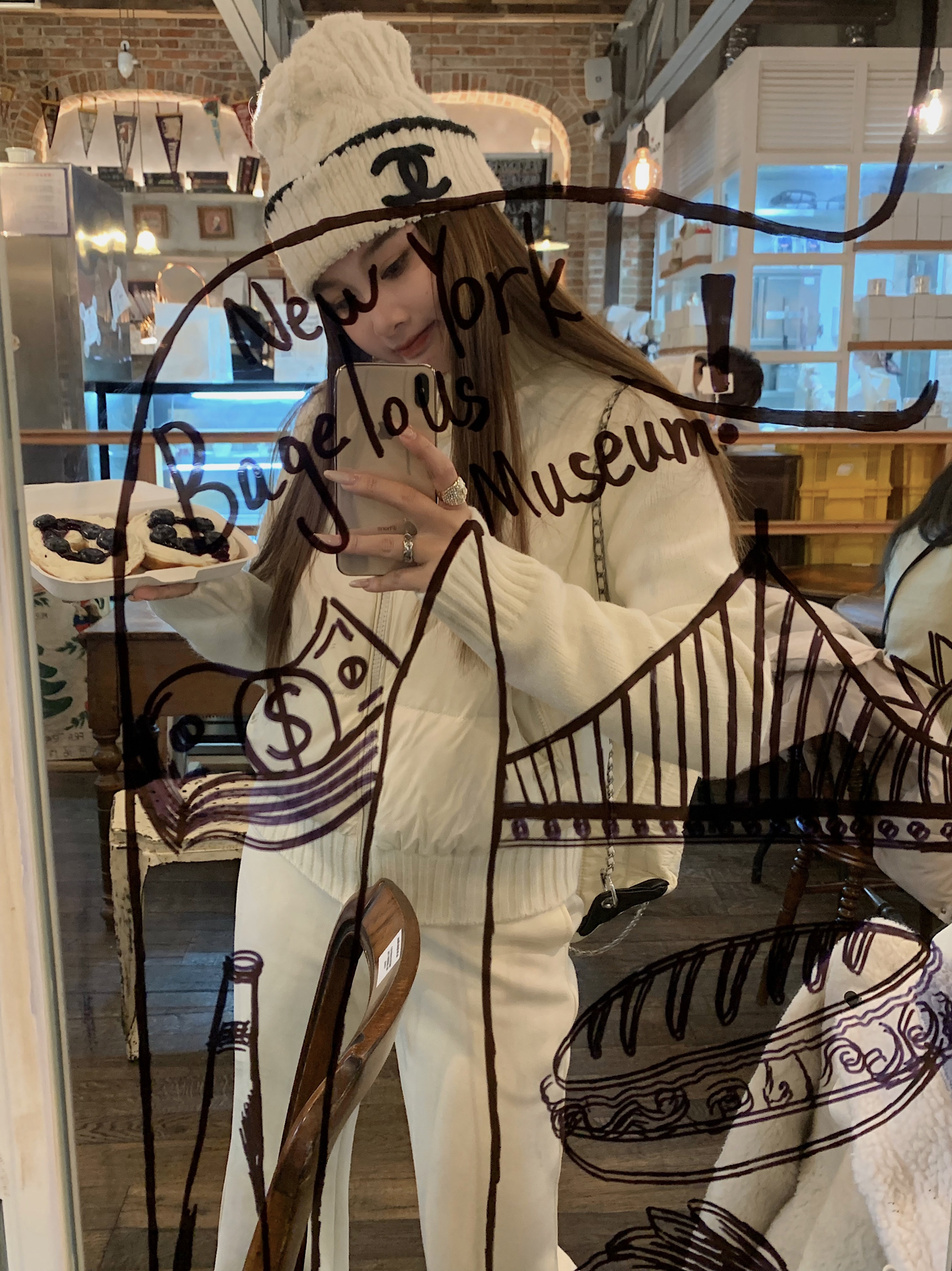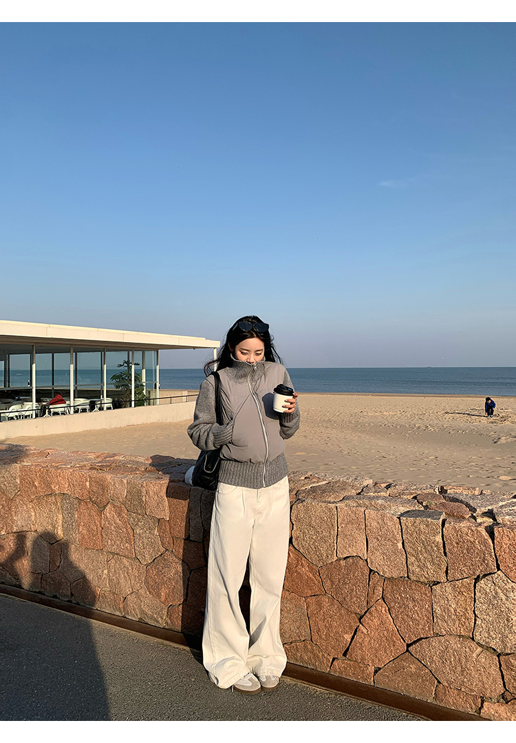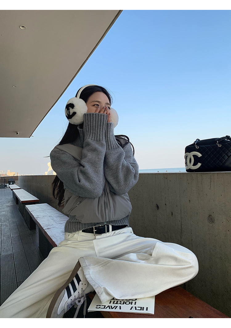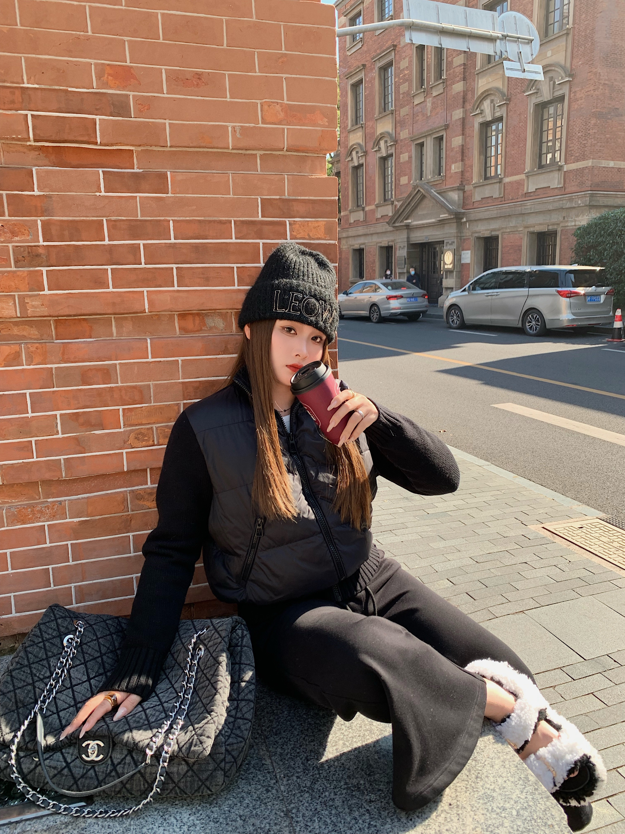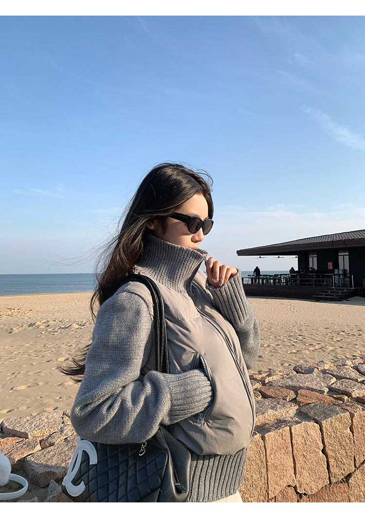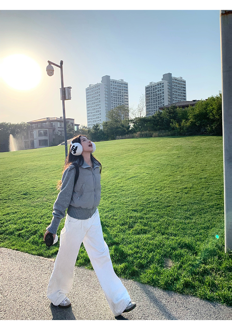 MY14919# 羊毛拼接新款法式气质设计感小众短款白色羽绒服保暖外套女裝貨源服裝批發