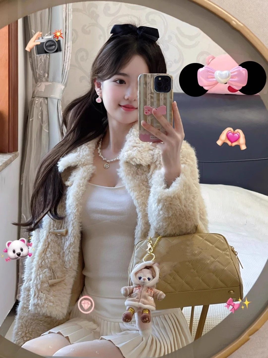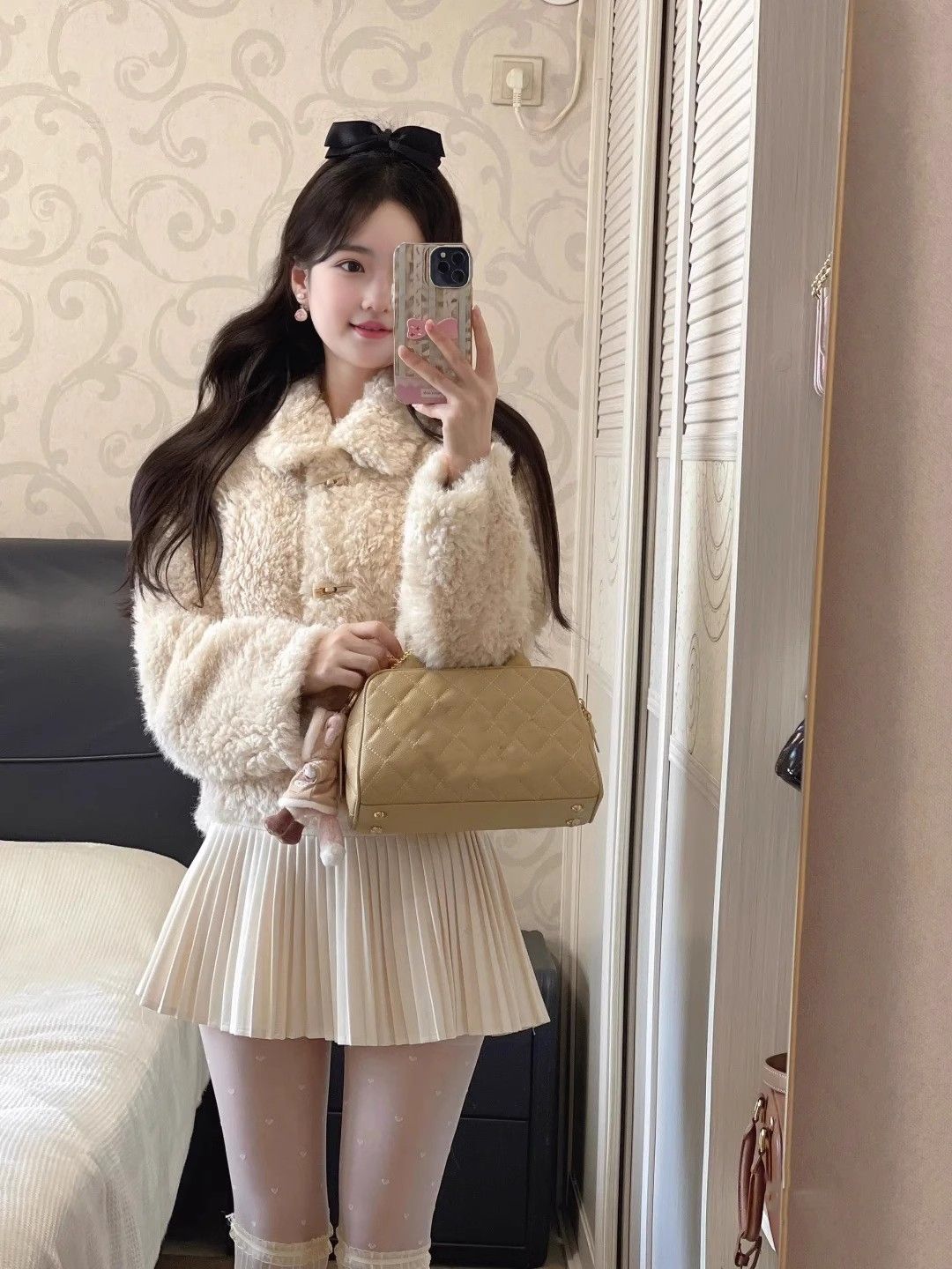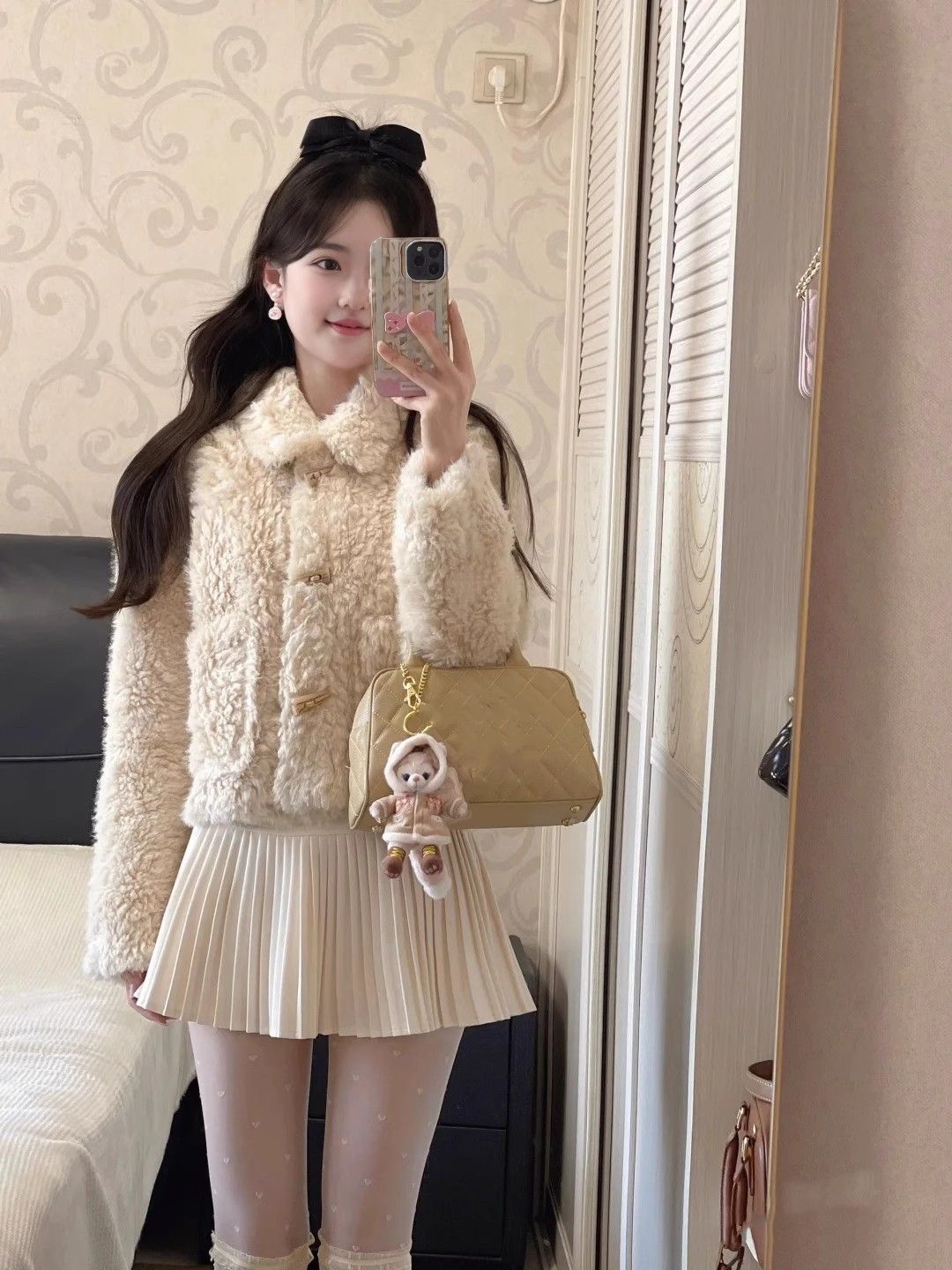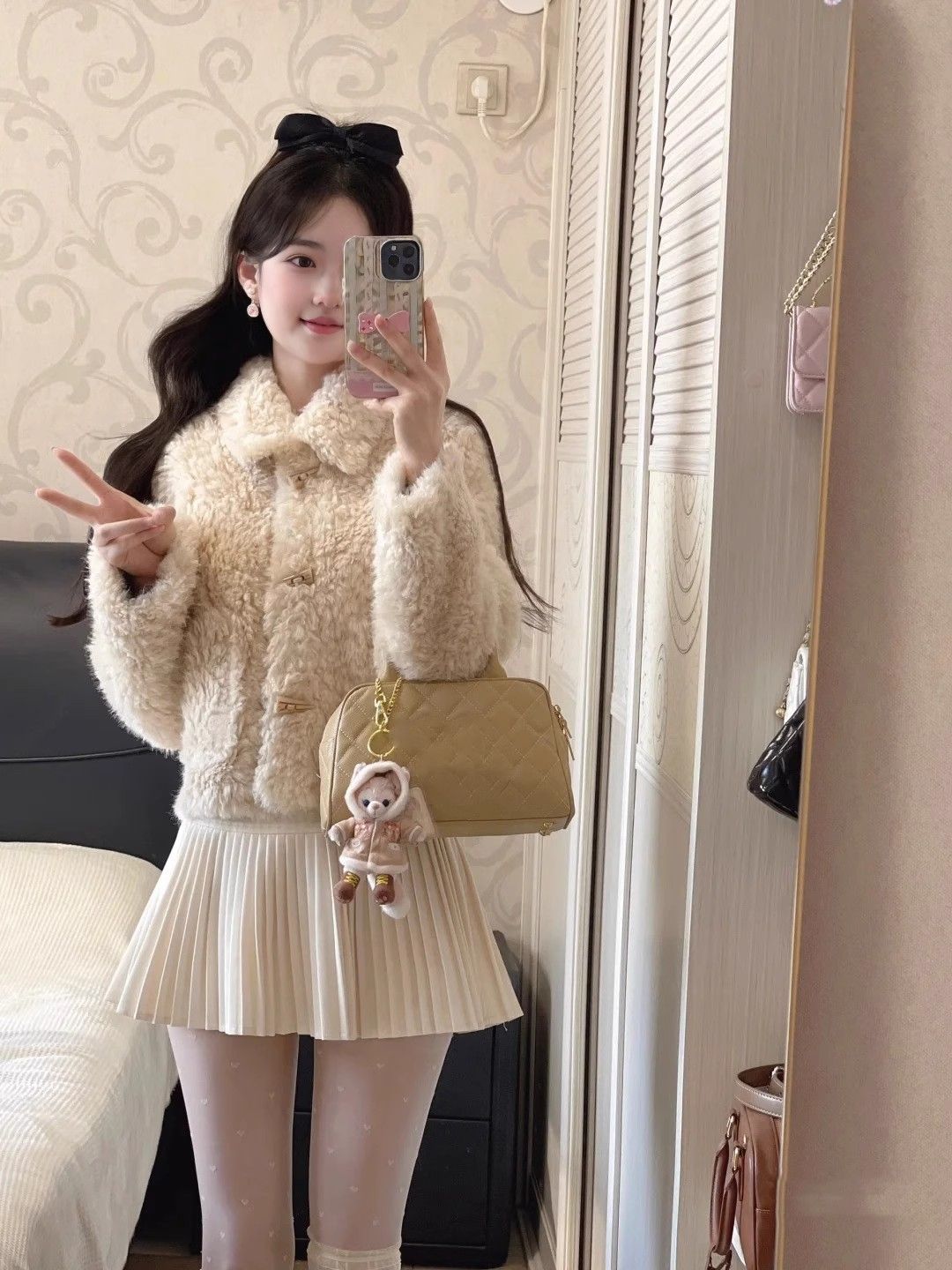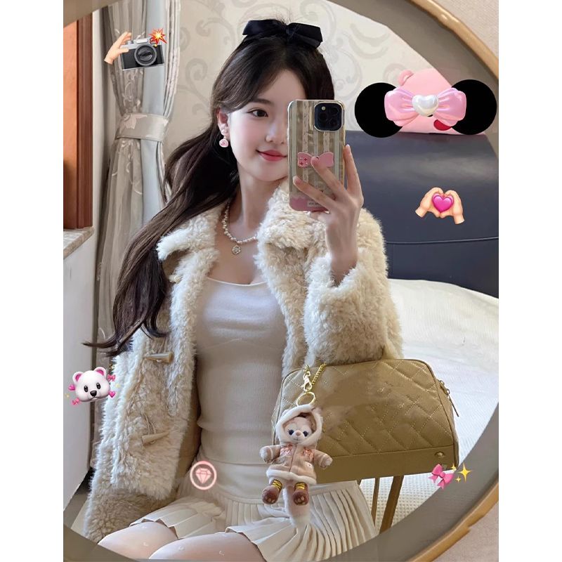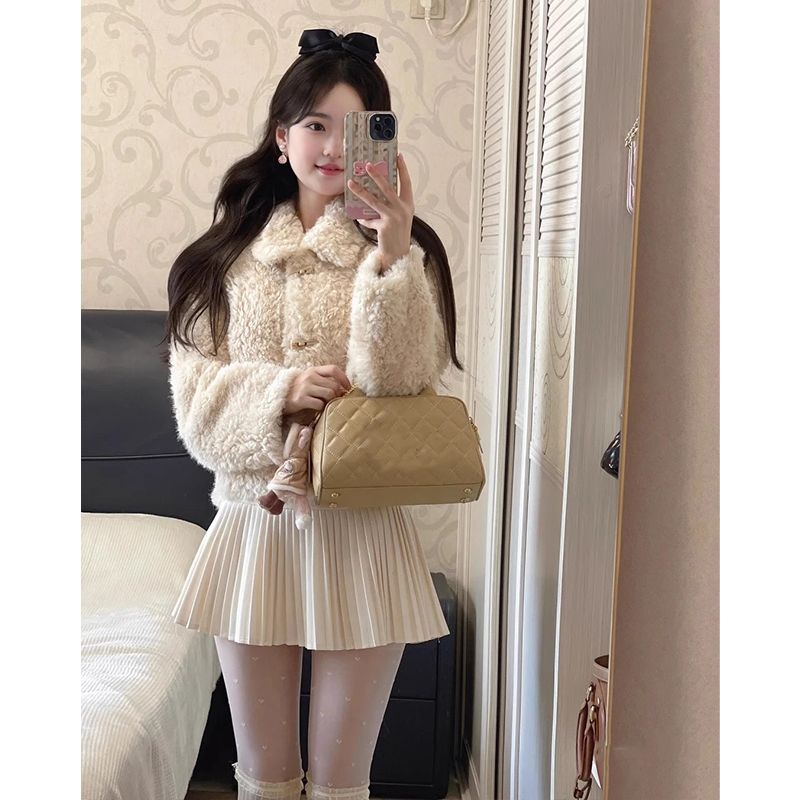 MY14924# 年轻款羊羔毛外套女冬短款韩系小个子皮毛一体减龄洋气毛绒厚上衣女裝貨源服裝批發