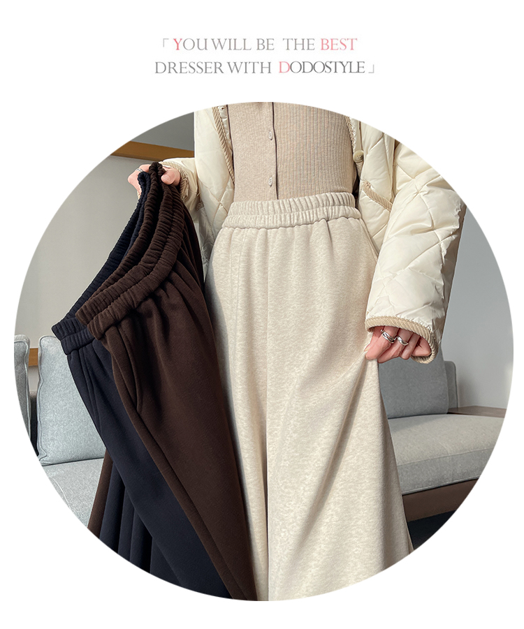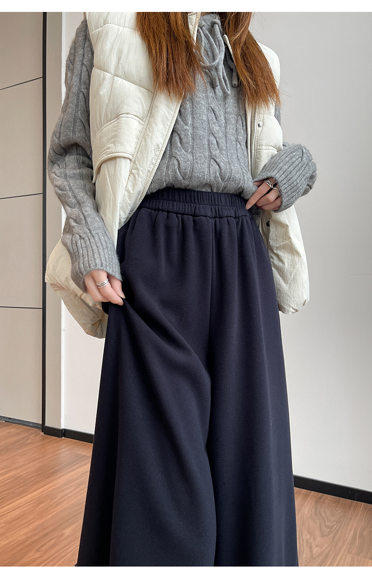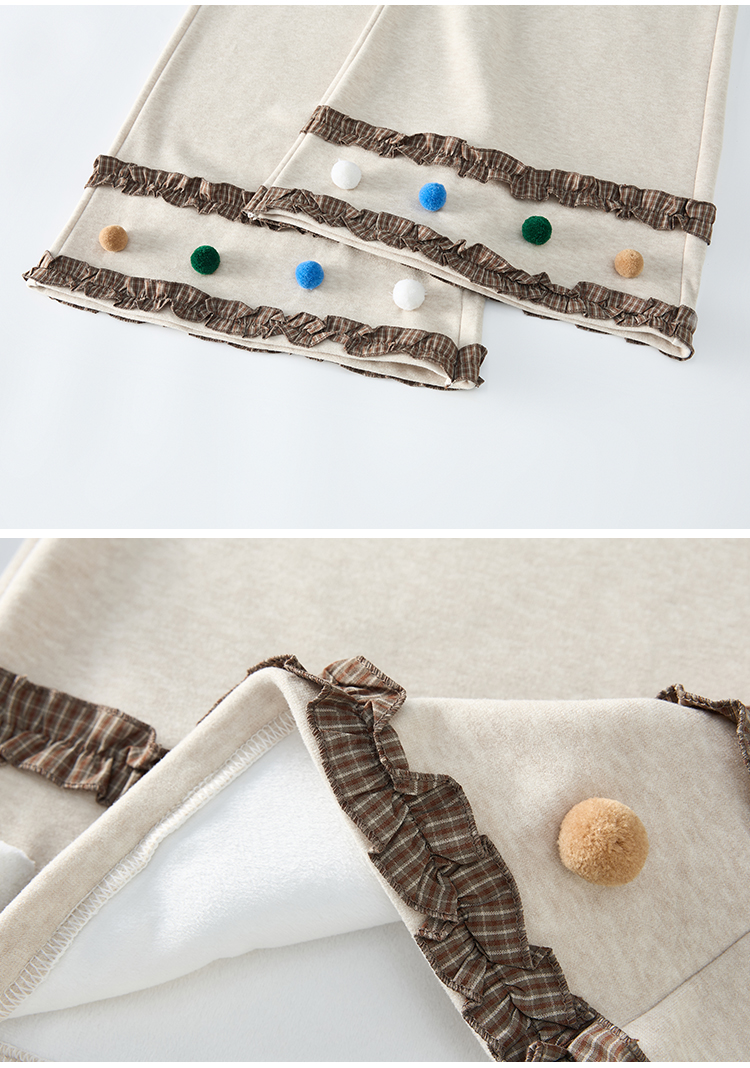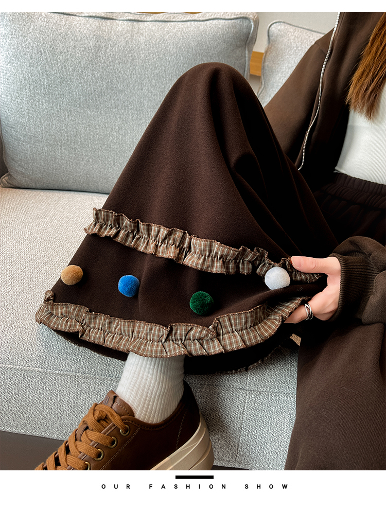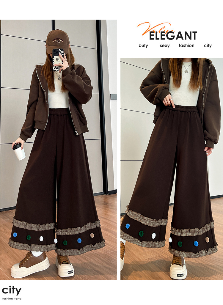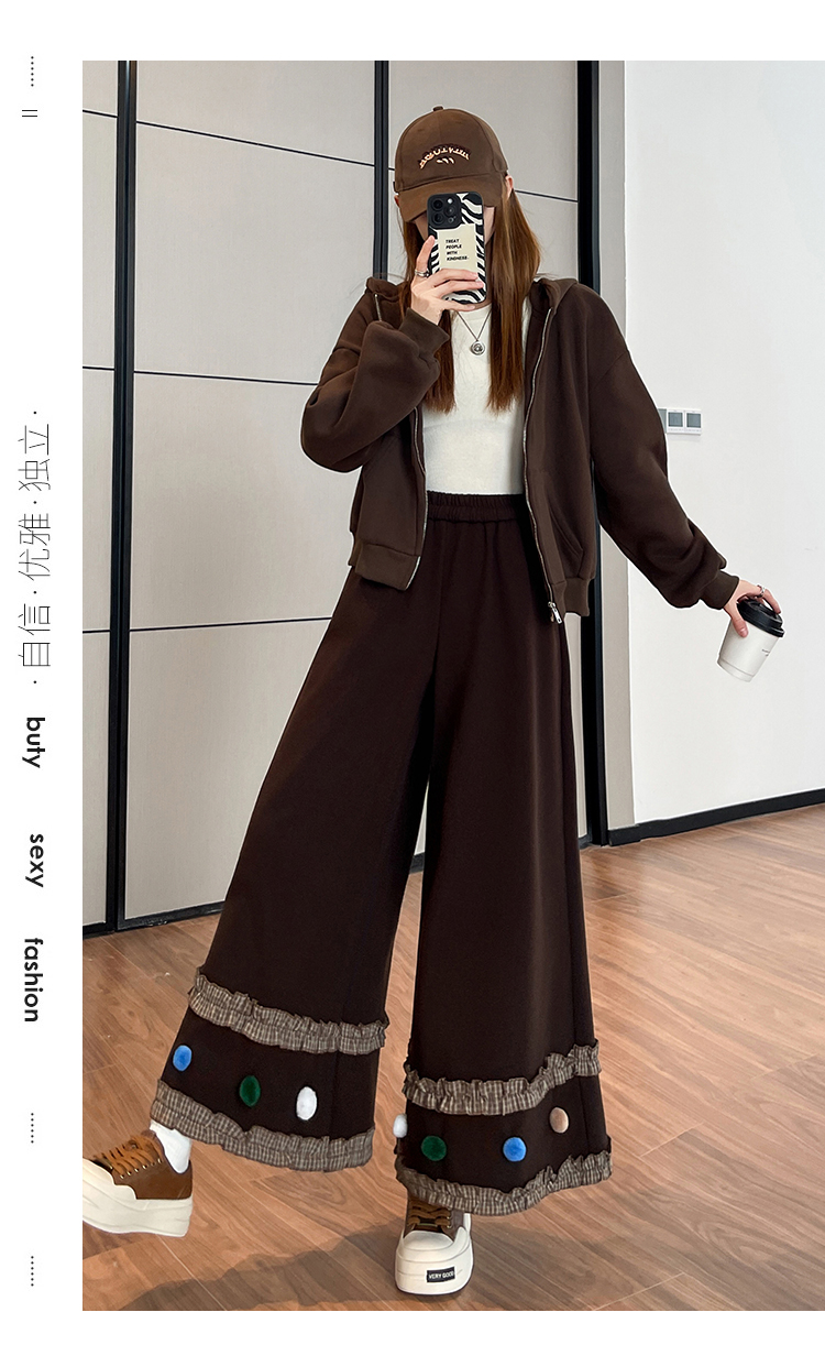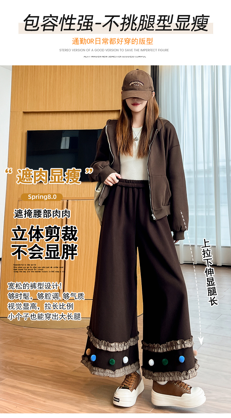 MY14932# 新款花边毛球加绒羊绒阔腿裤女高腰直筒小个子休闲裤女裝貨源服裝批發