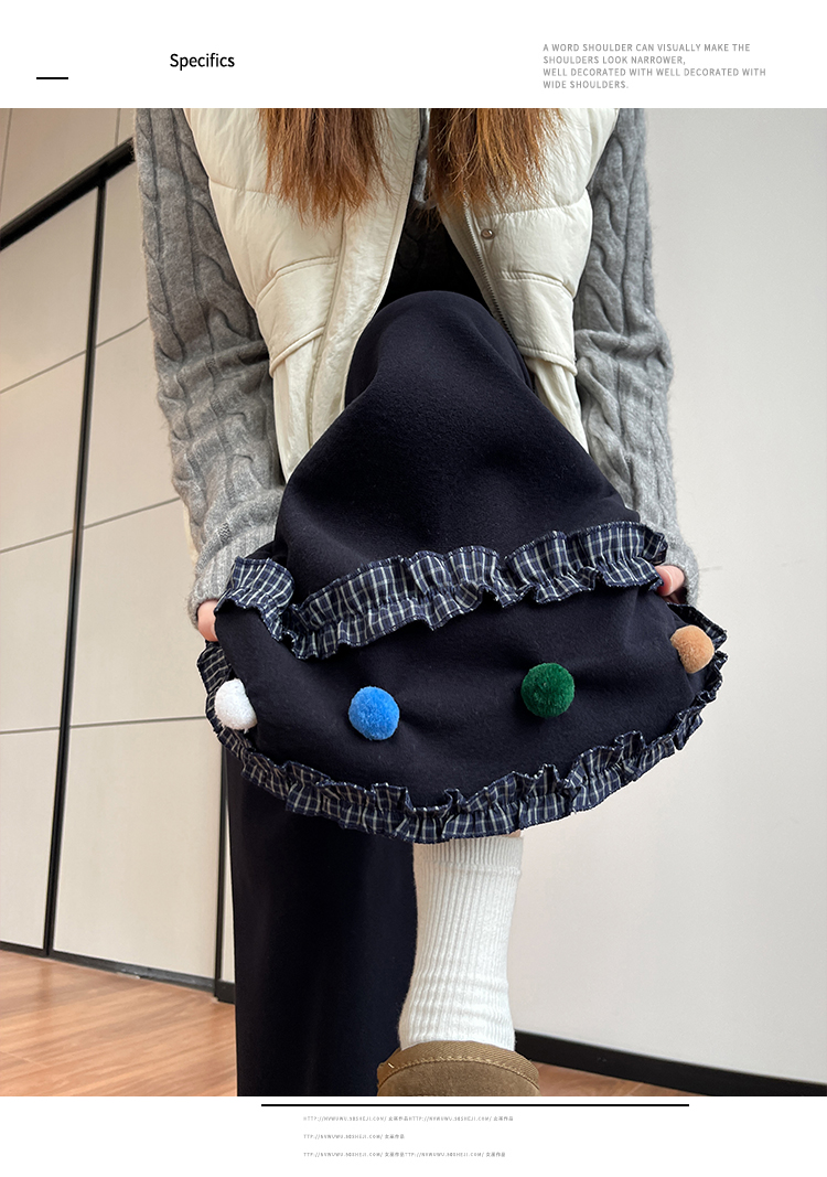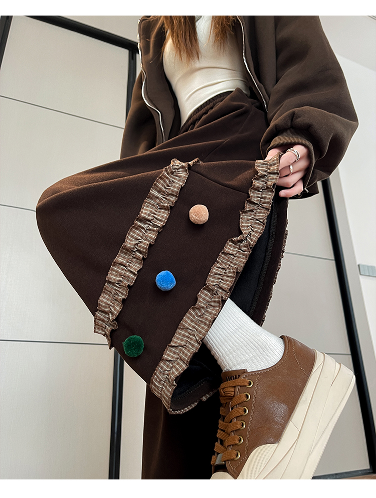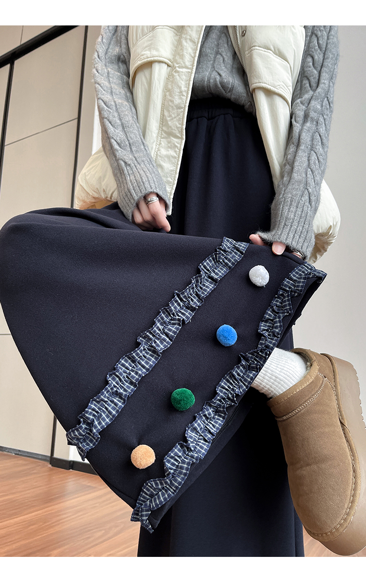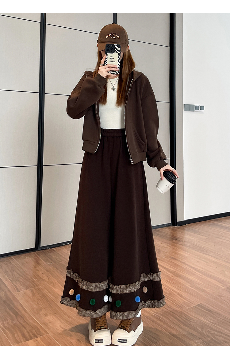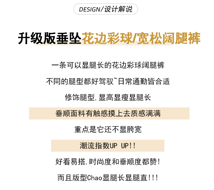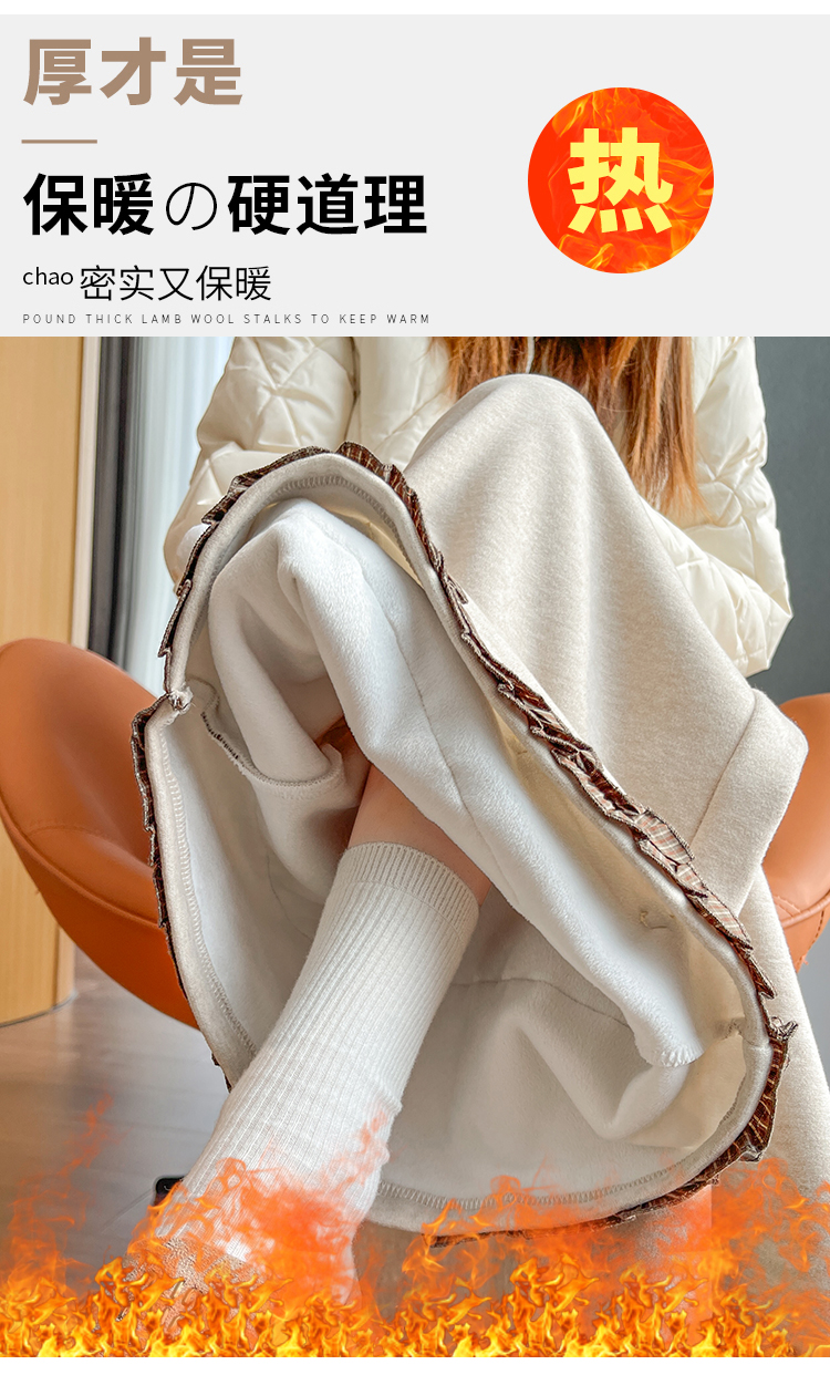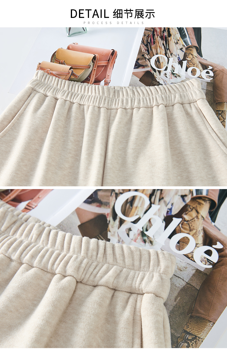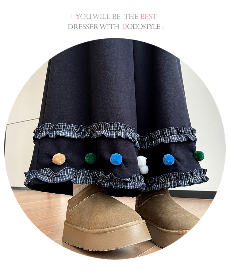 MY14932# 新款花边毛球加绒羊绒阔腿裤女高腰直筒小个子休闲裤女裝貨源服裝批發