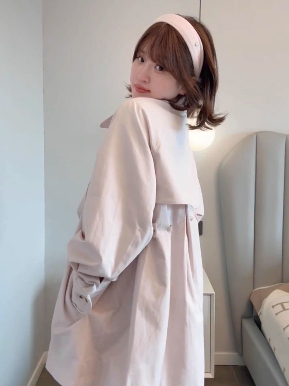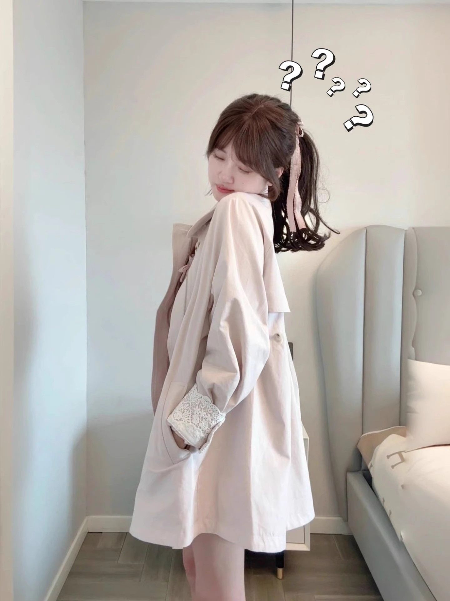 MY14938# 韩系中长款粉色风衣外套英伦风设计感小众蕾丝拼接斗篷开衫女裝貨源服裝批發