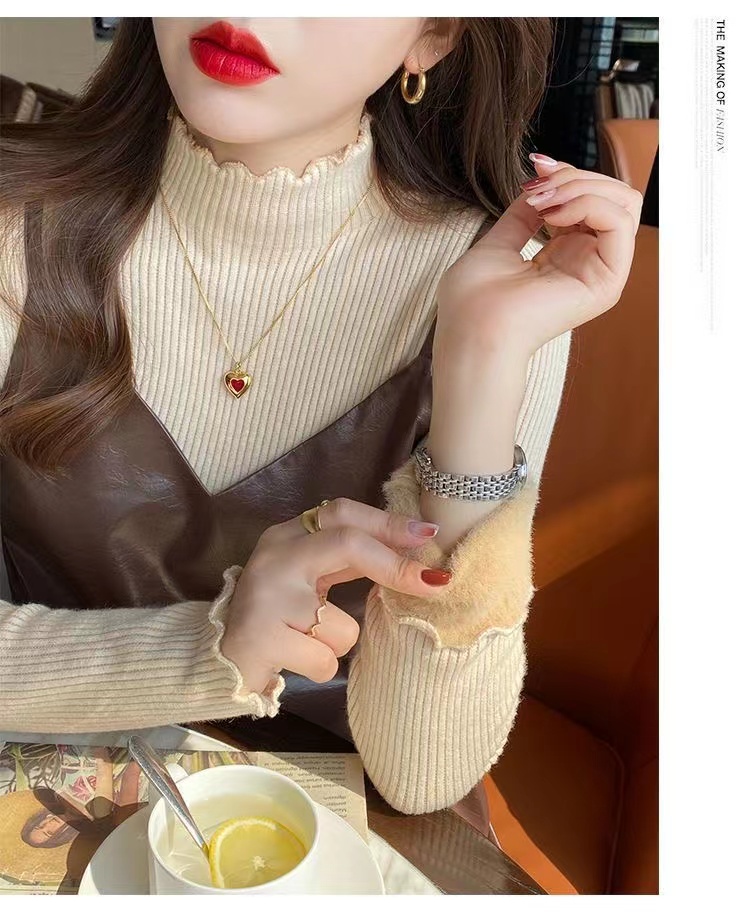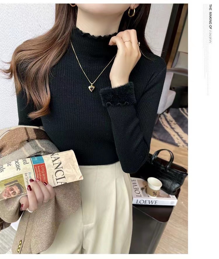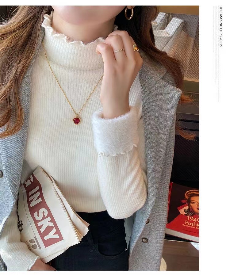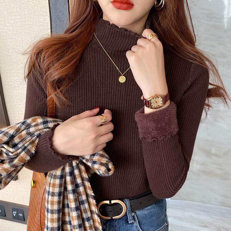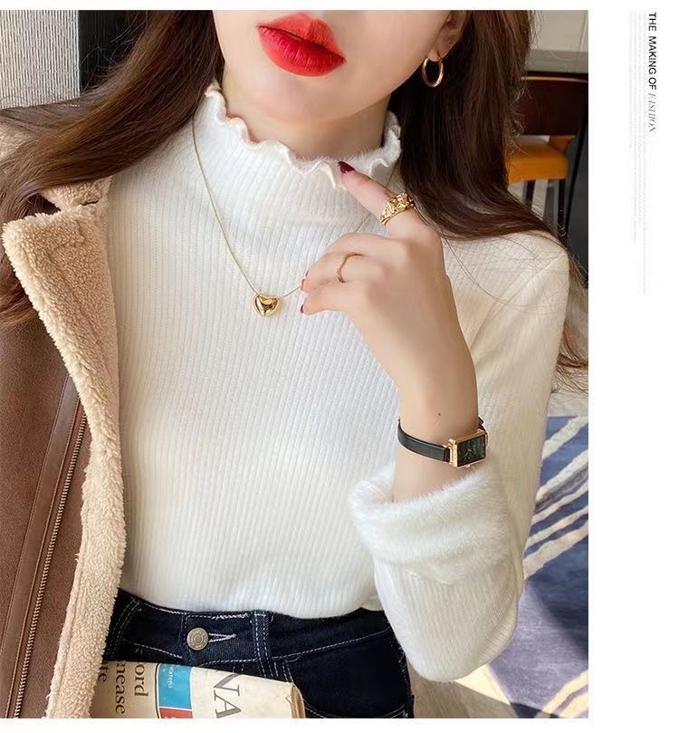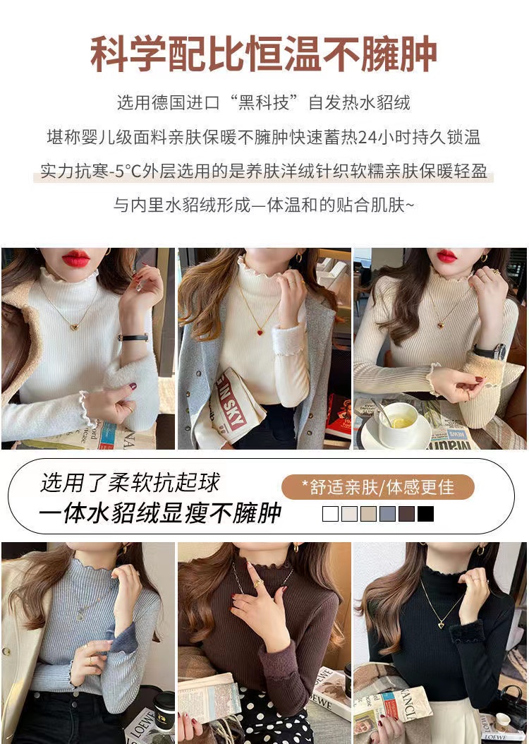 MY14941# 半高领加厚一体绒打底毛衣女网红爆款内搭针织上衣女裝貨源服裝批發