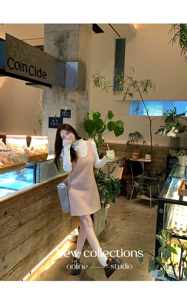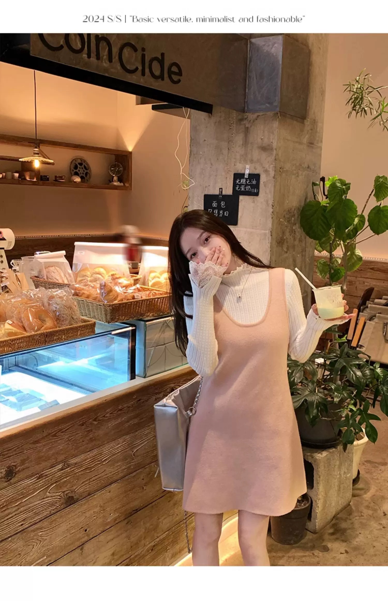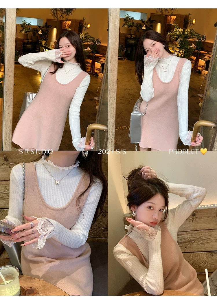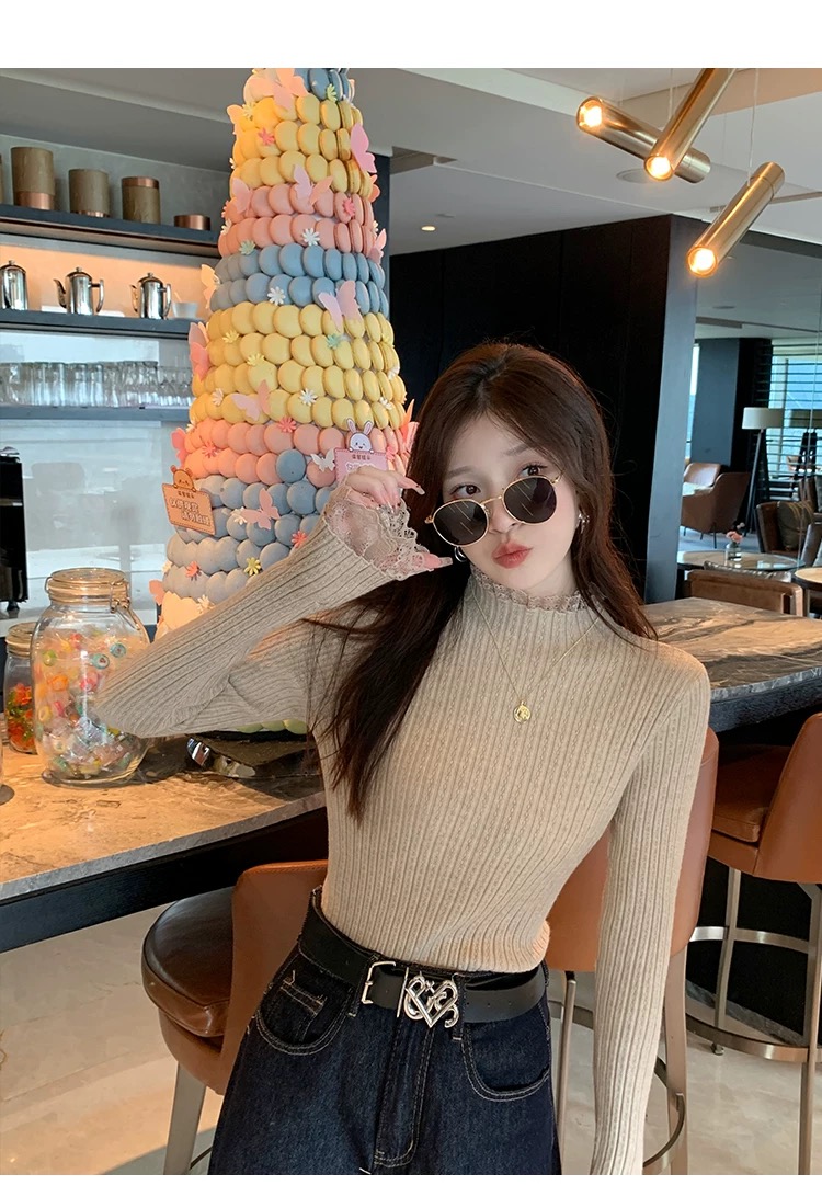 MY14943# 小香风蕾丝内搭针织打底衫白色半高领毛衣上衣女裝貨源服裝批發
