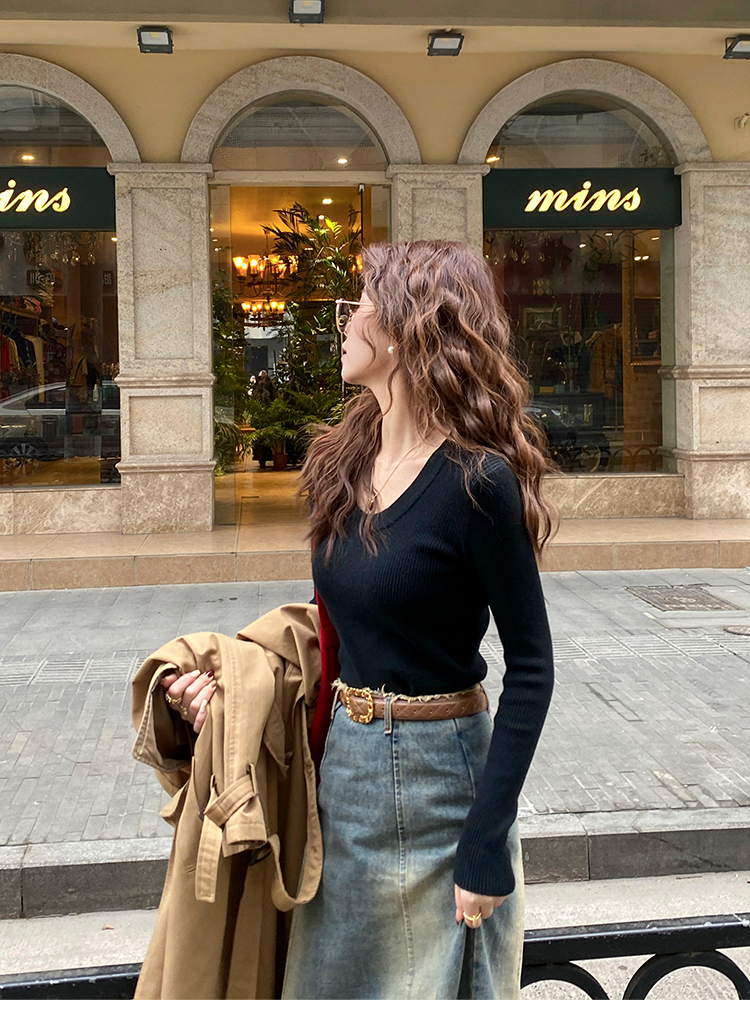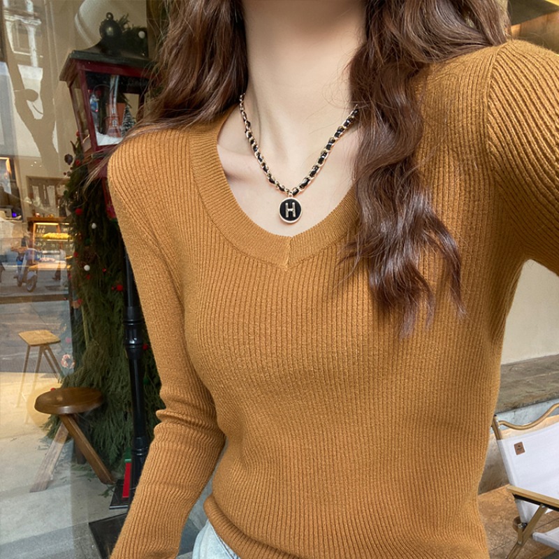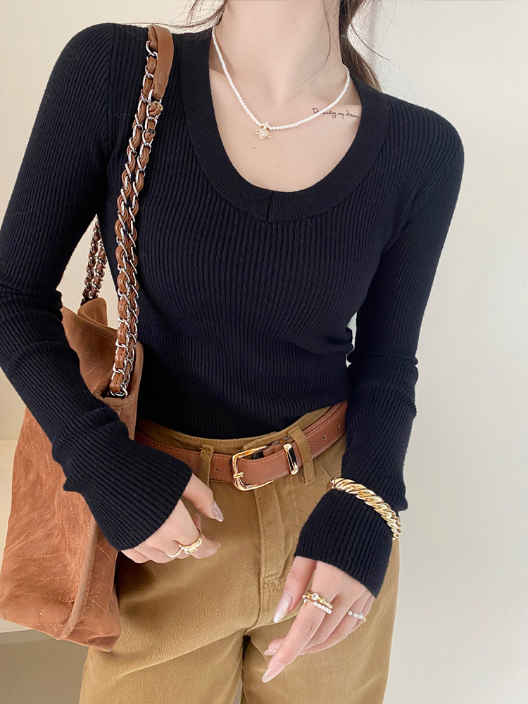 MY14945# 打底衫新款小香风内搭低圆领毛衣针织长袖上衣女裝貨源服裝批發