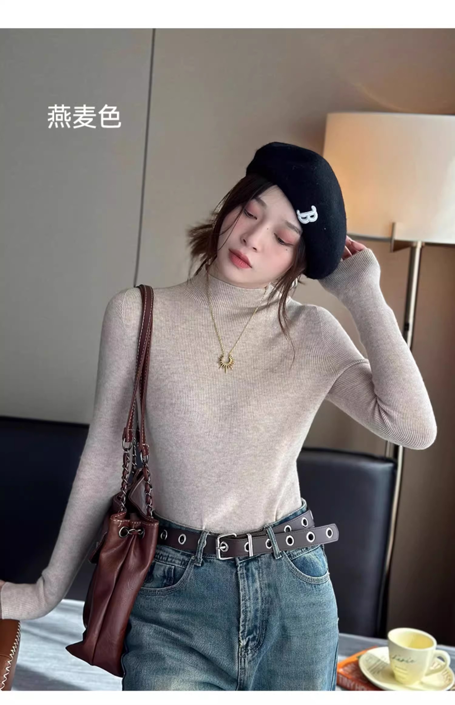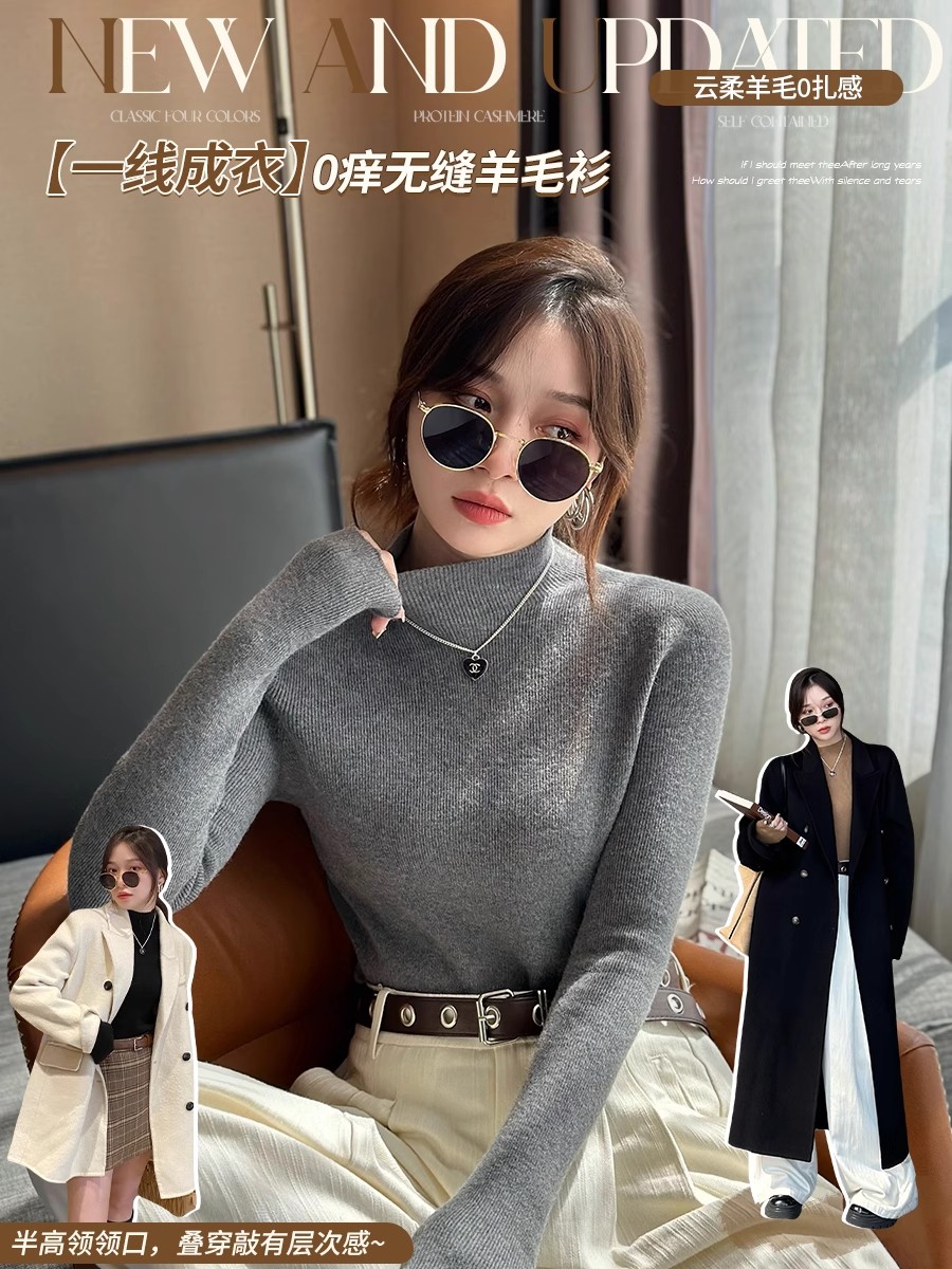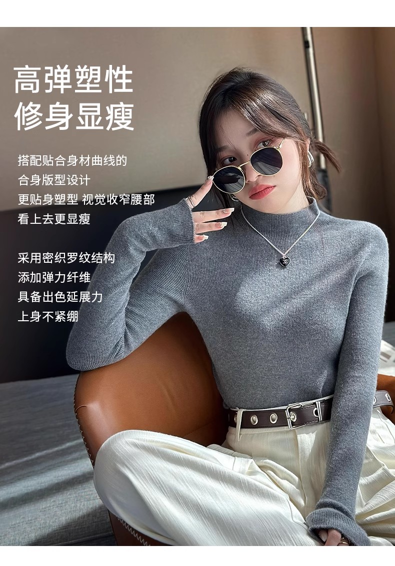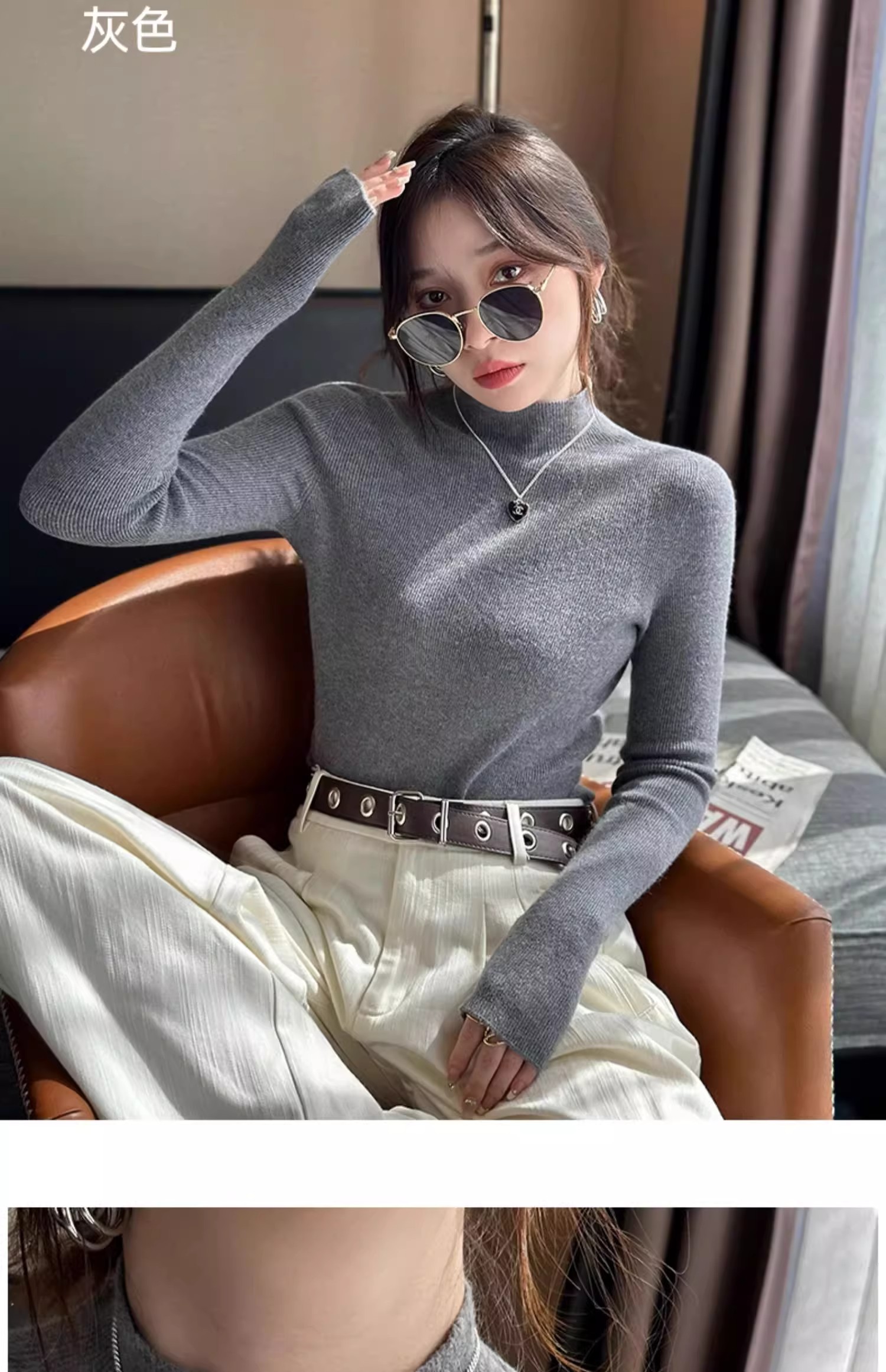MY14946# 灰色打底衫新款黑色针织上衣内搭羊毛衫半高领毛衣女裝貨源服裝批發