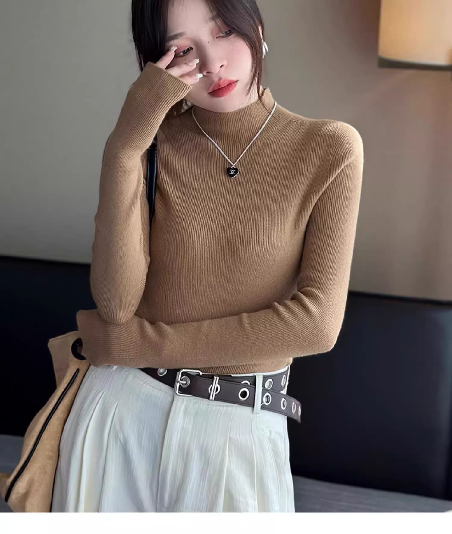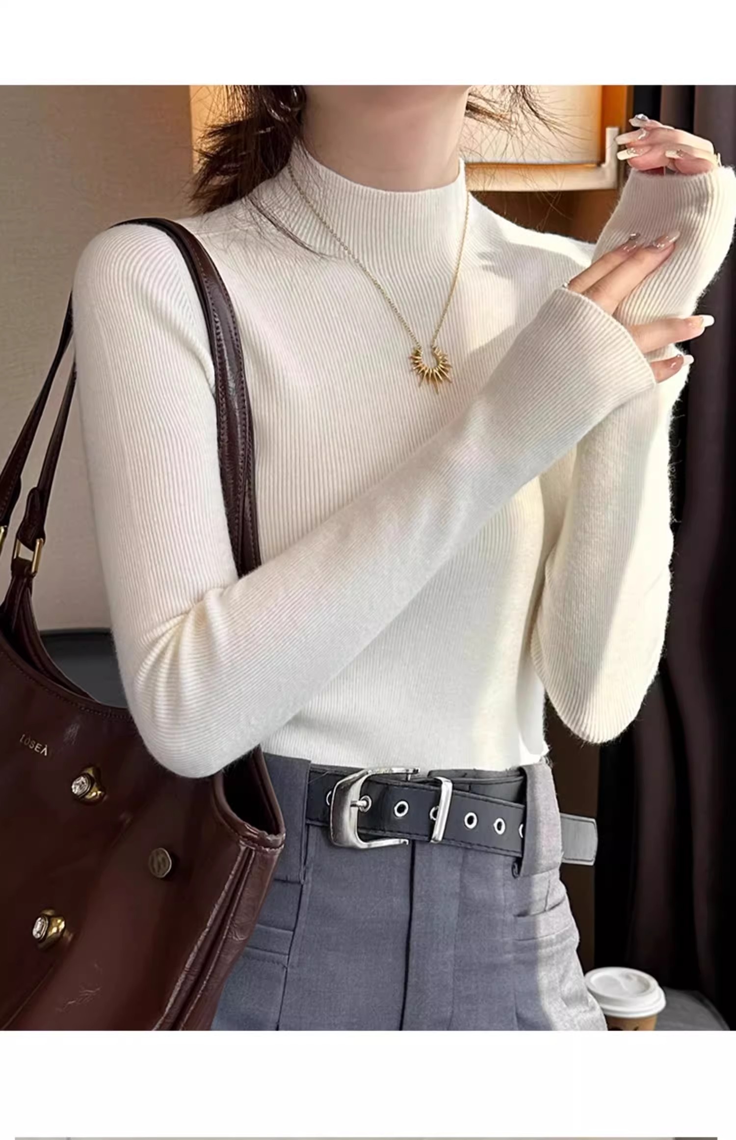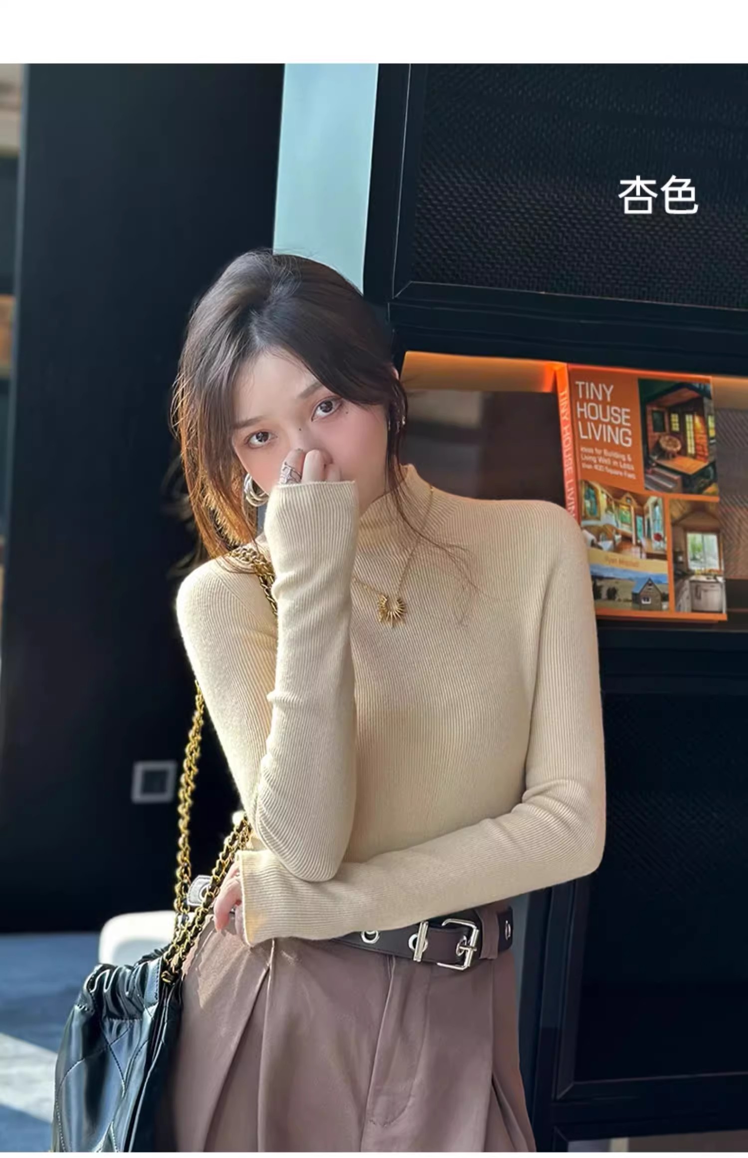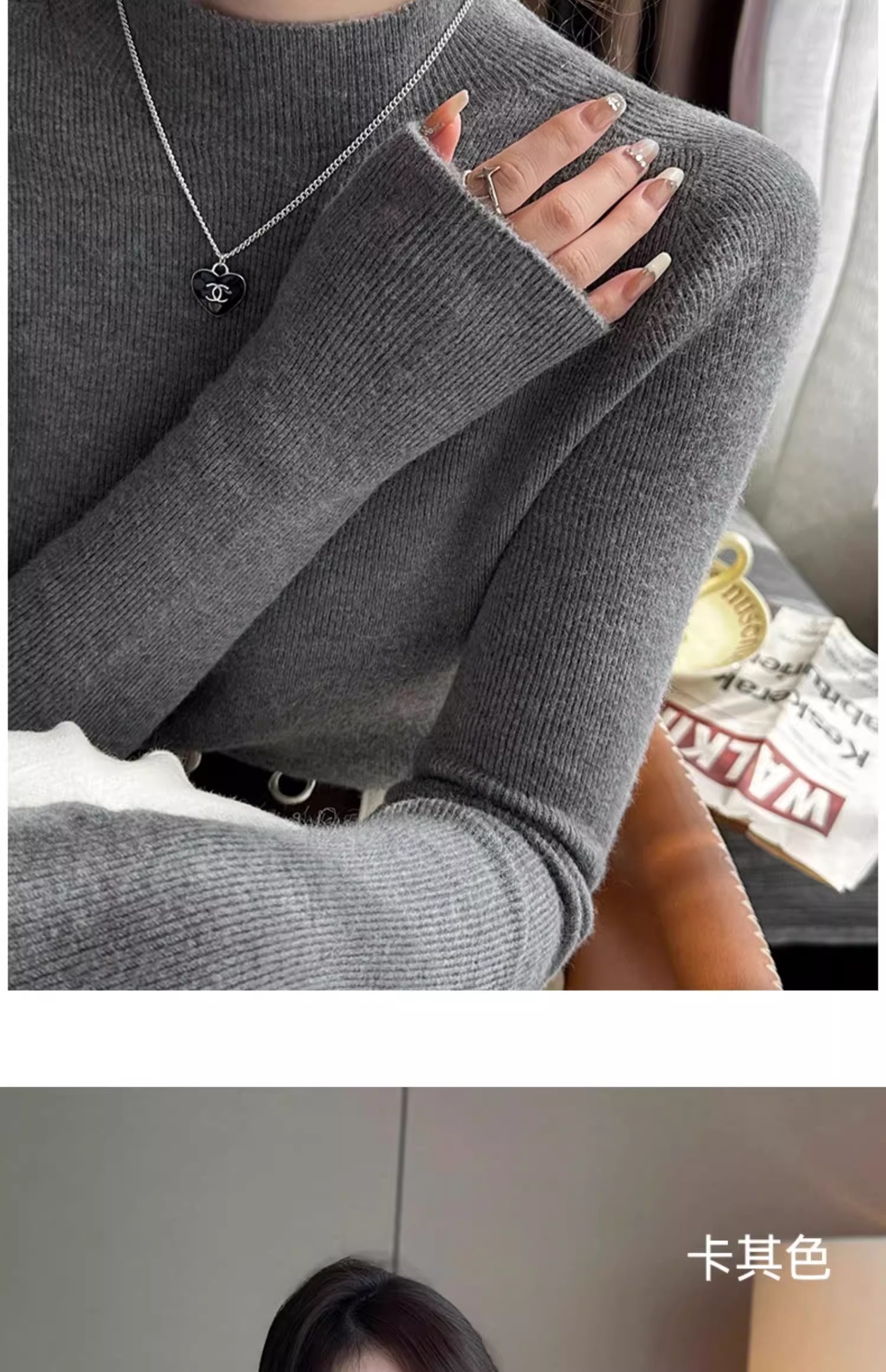MY14946# 灰色打底衫新款黑色针织上衣内搭羊毛衫半高领毛衣女裝貨源服裝批發