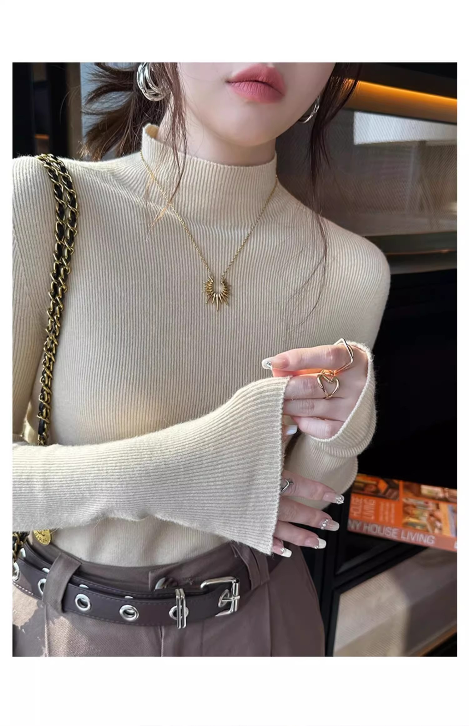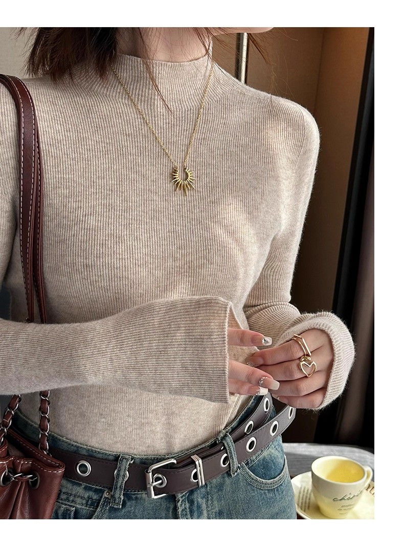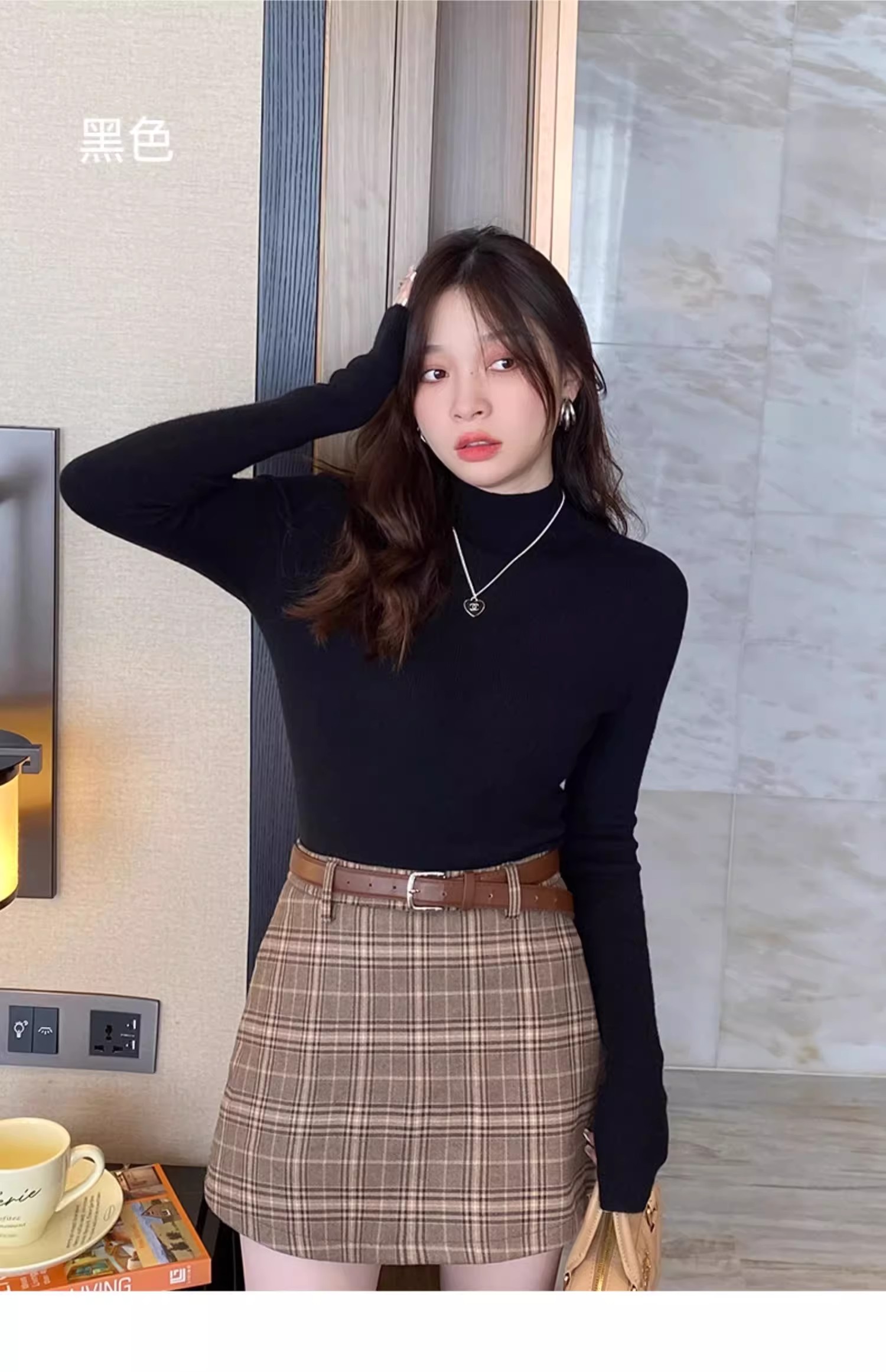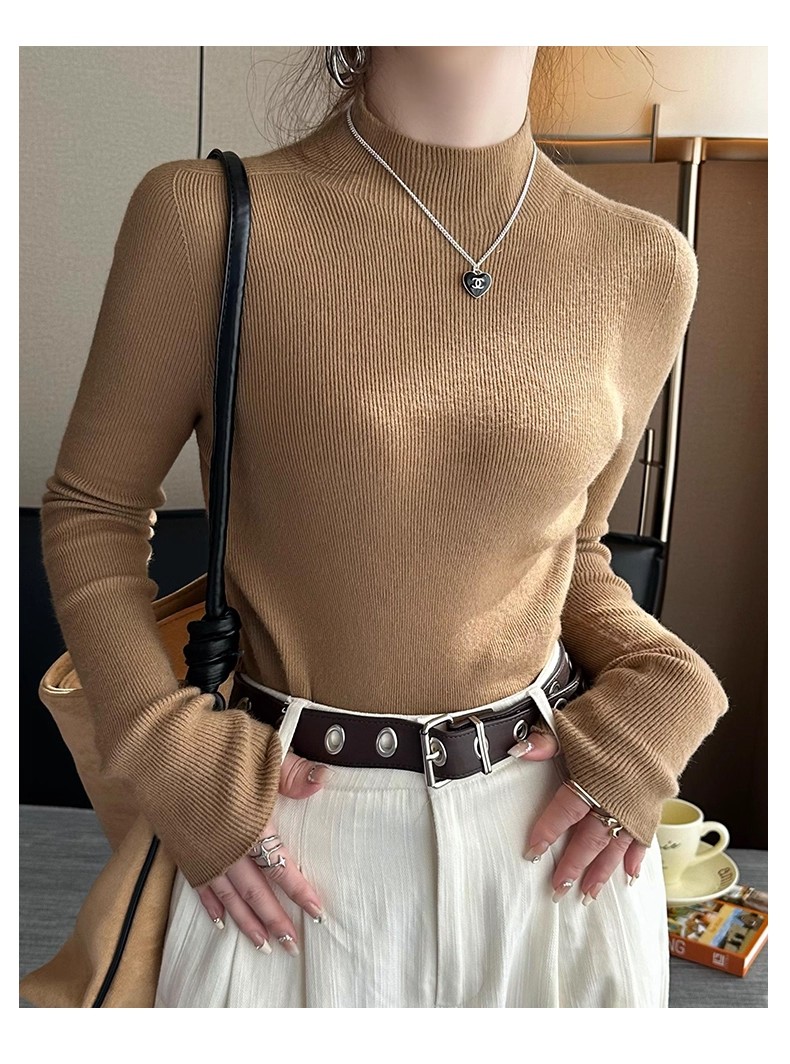 MY14946# 灰色打底衫新款黑色针织上衣内搭羊毛衫半高领毛衣女裝貨源服裝批發