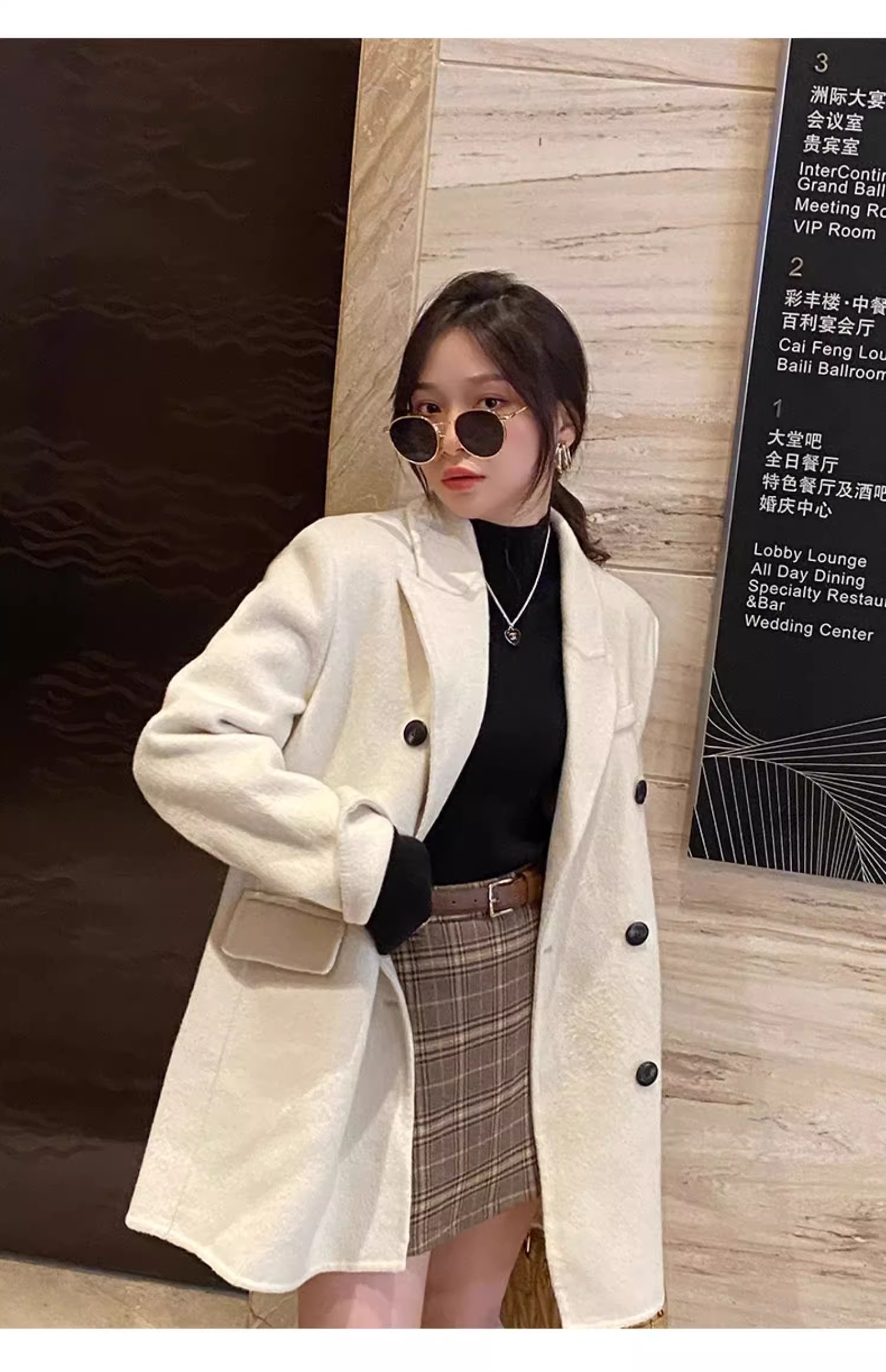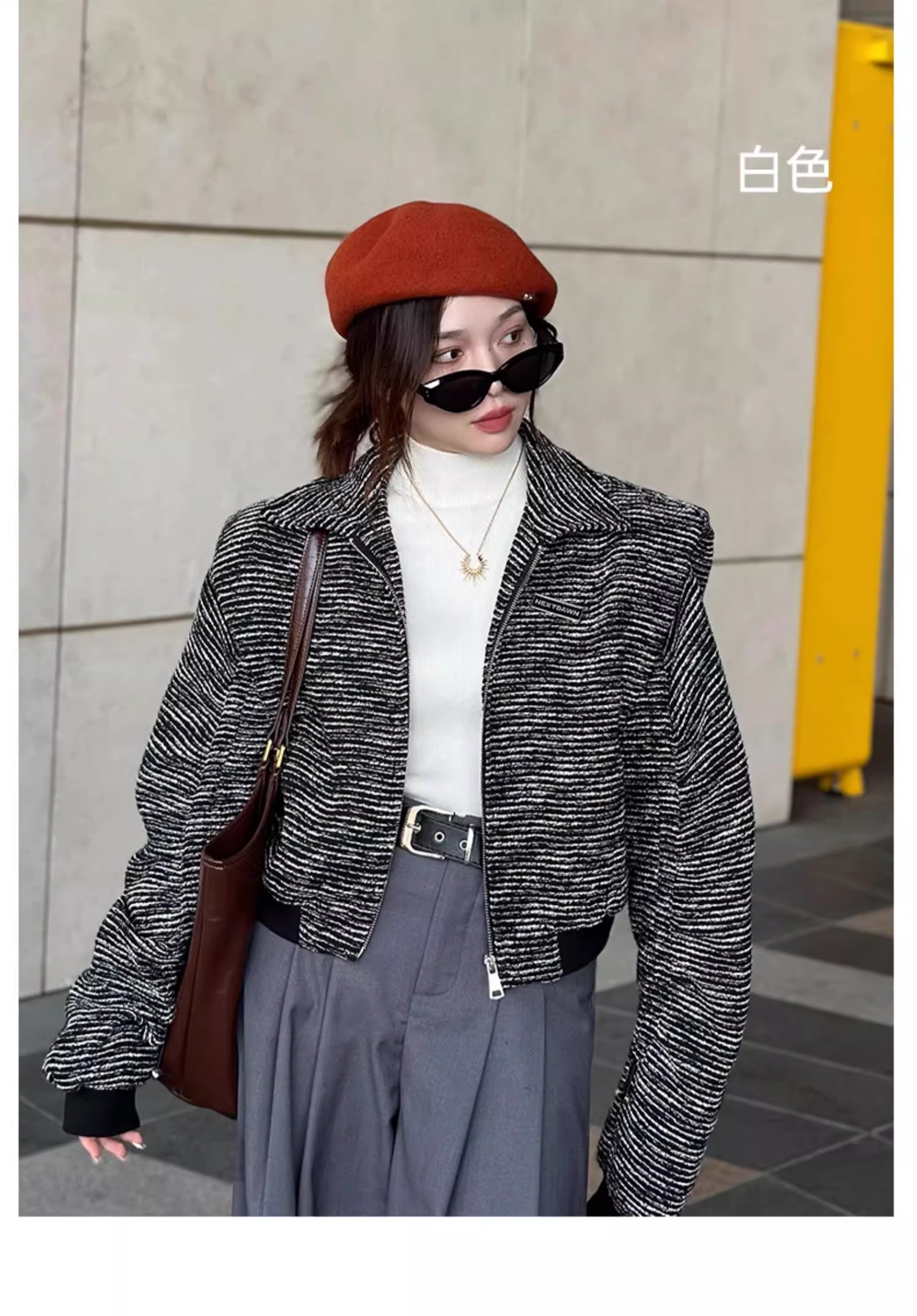 MY14964# 韩版网红格子毛呢单口袋衬衫设计感休闲宽松衬衣外套女女裝貨...