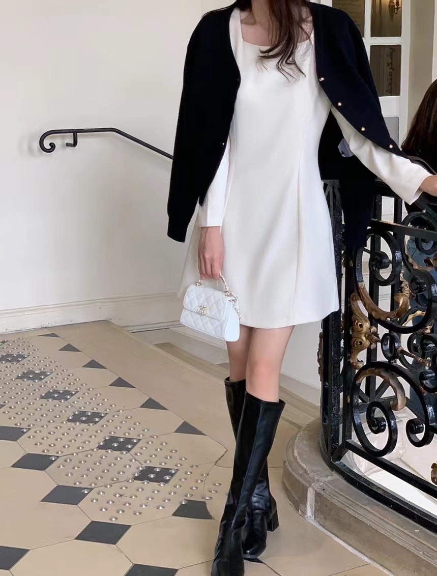 MY14956# 韩国东大门新款方领收腰纯色中长款连衣裙短裙女裝貨源服裝批發