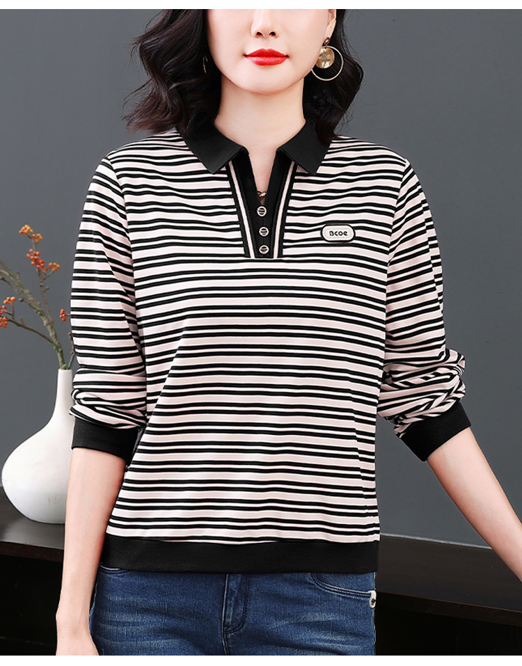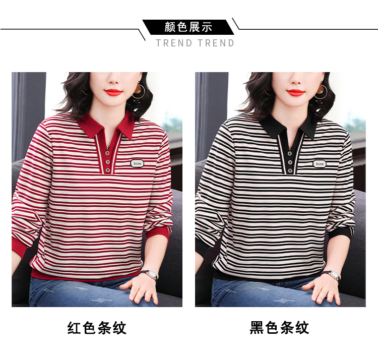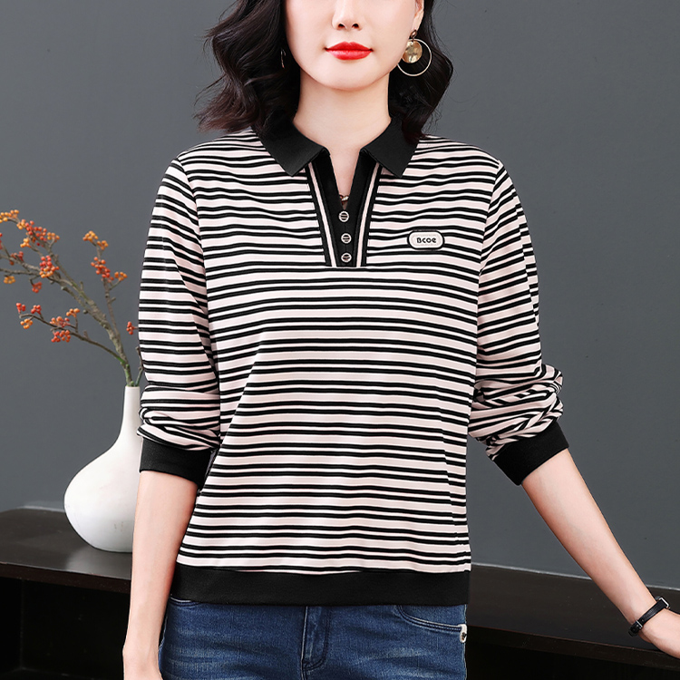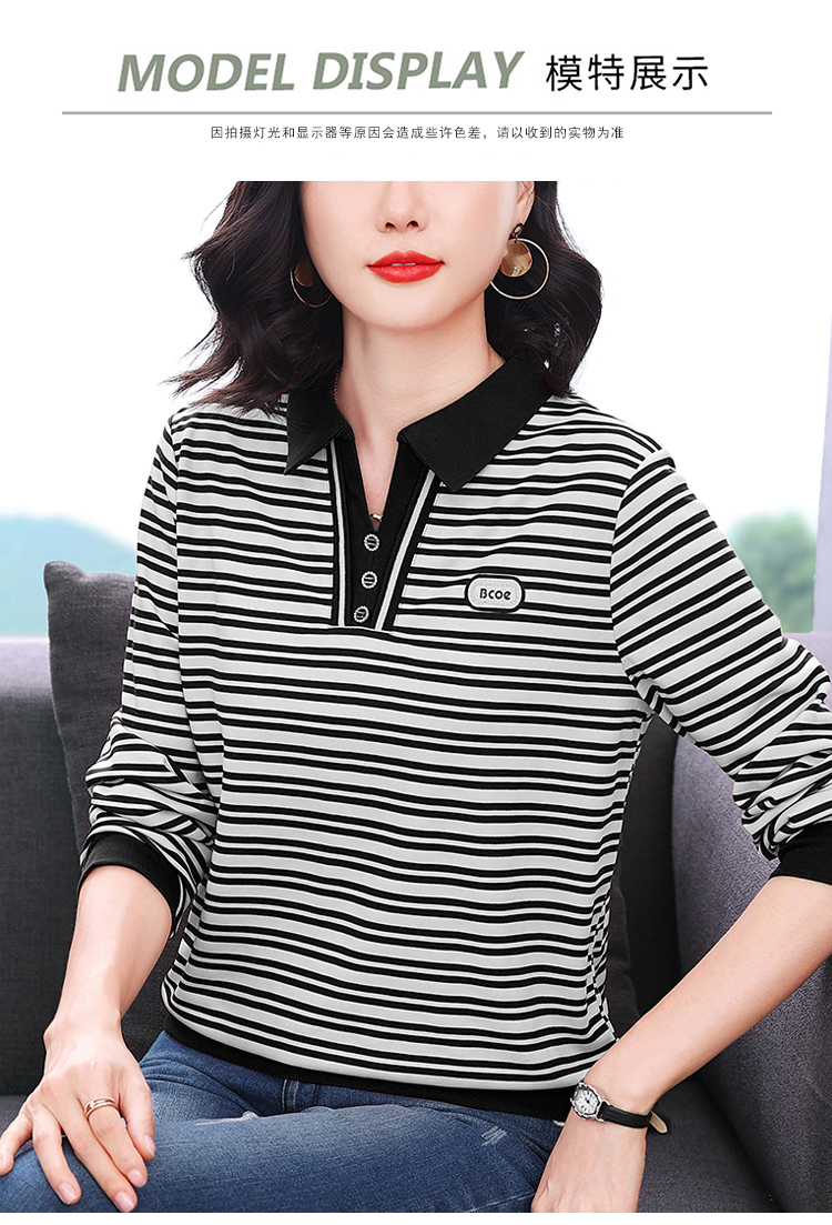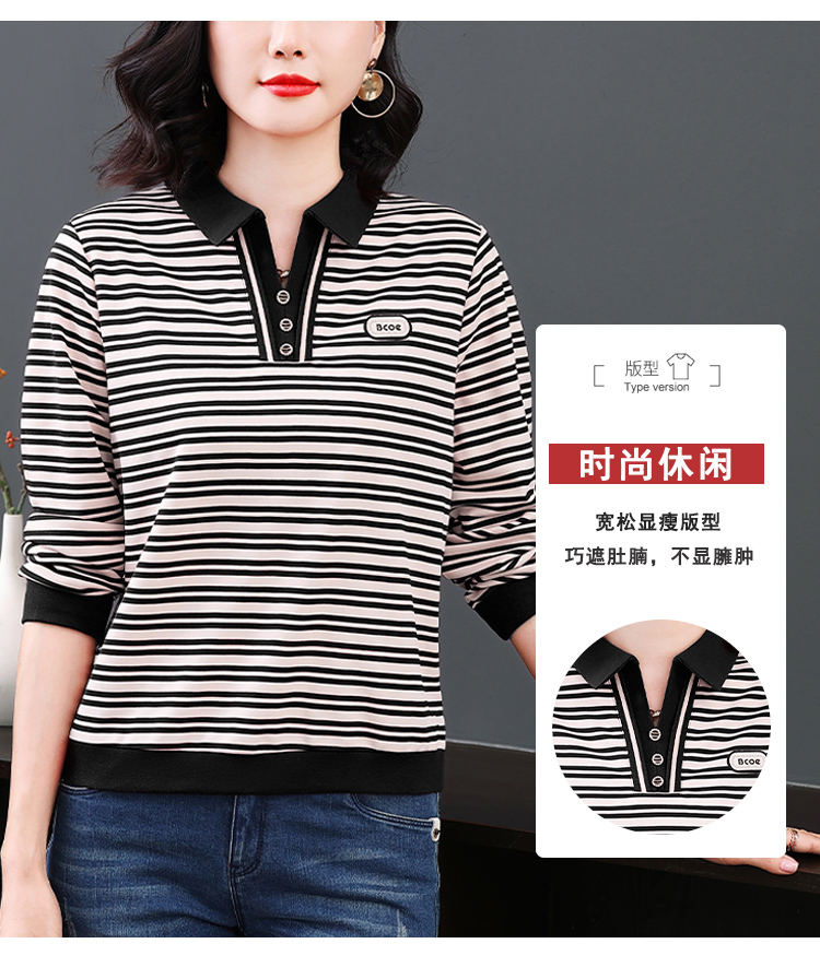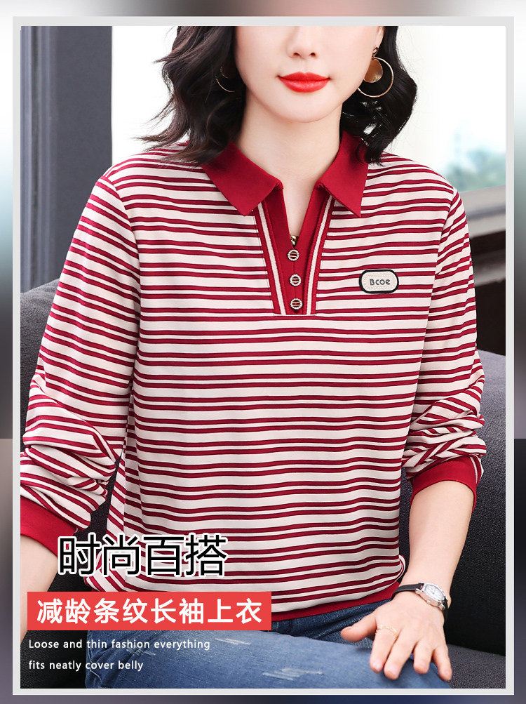 MY14959# 新款时尚减龄条纹体恤中年妈妈装宽松长袖休闲上衣女女裝貨源服裝批發