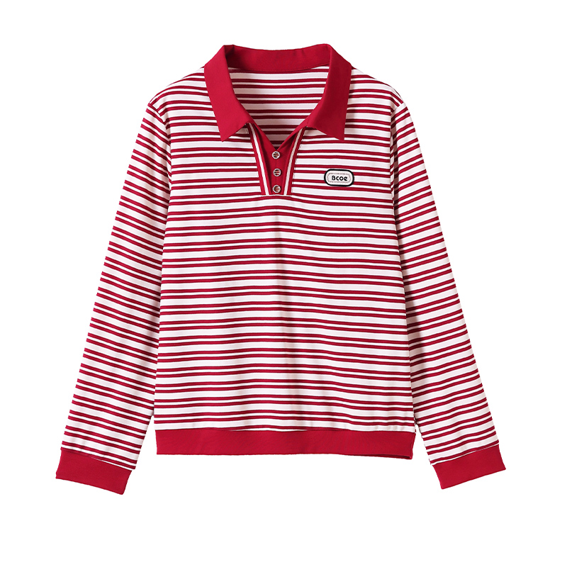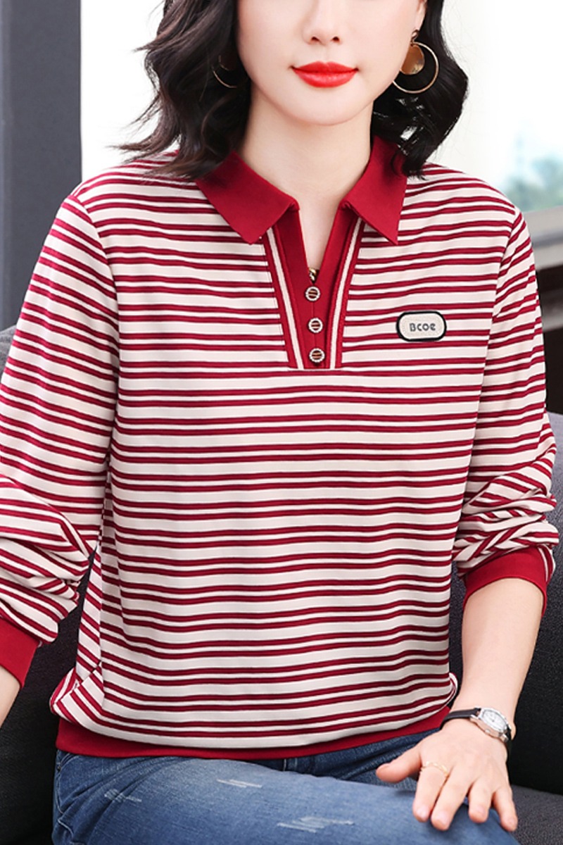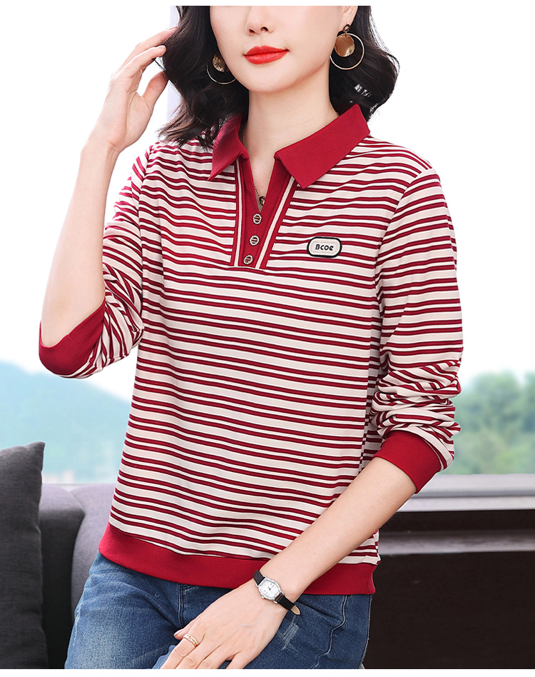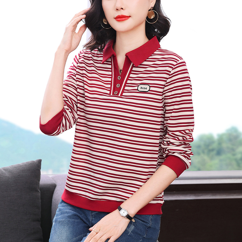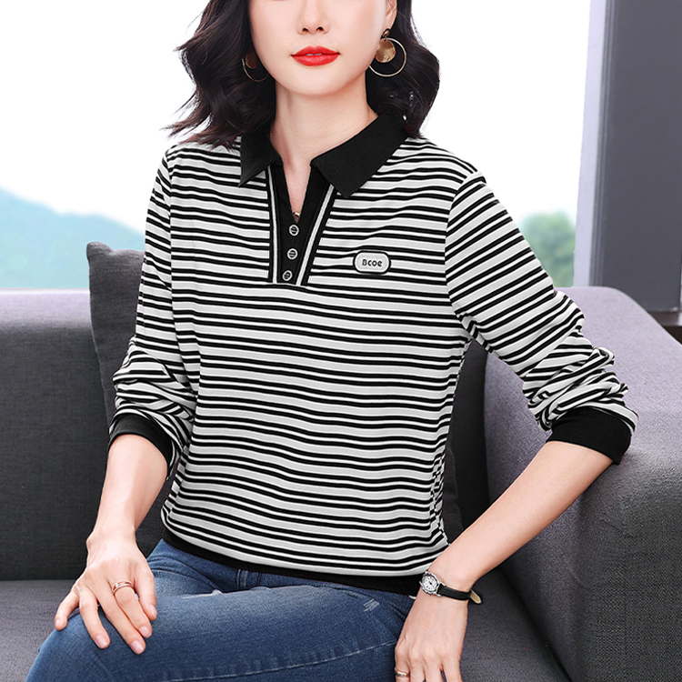 MY14959# 新款时尚减龄条纹体恤中年妈妈装宽松长袖休闲上衣女女裝貨源服裝批發