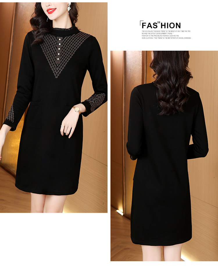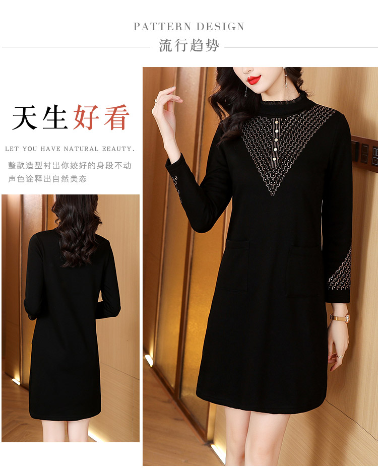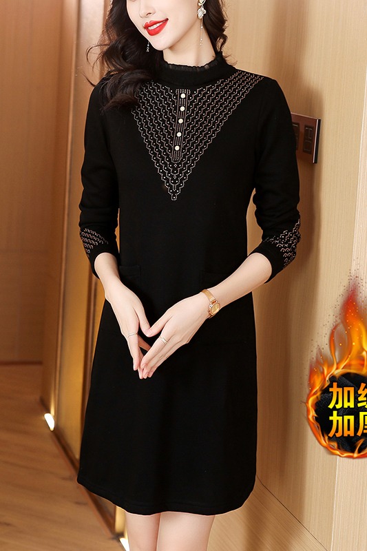 MY14962# 连衣裙新款洋气上档次加绒加厚冬天打底中长款裙子女裝貨源服裝批發