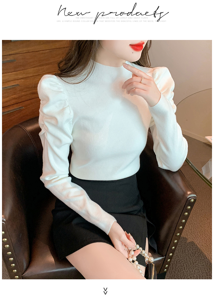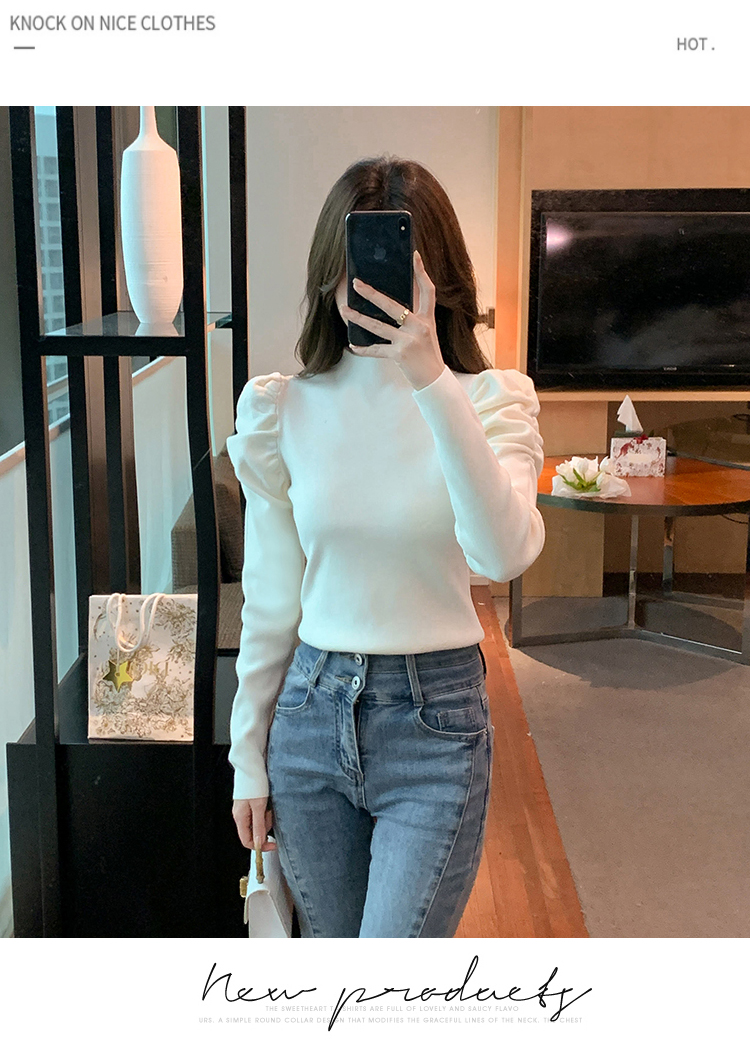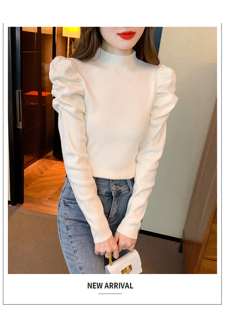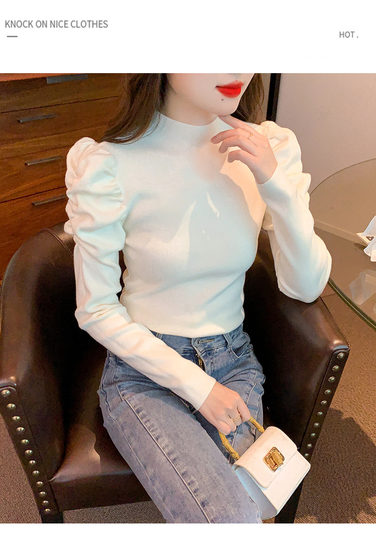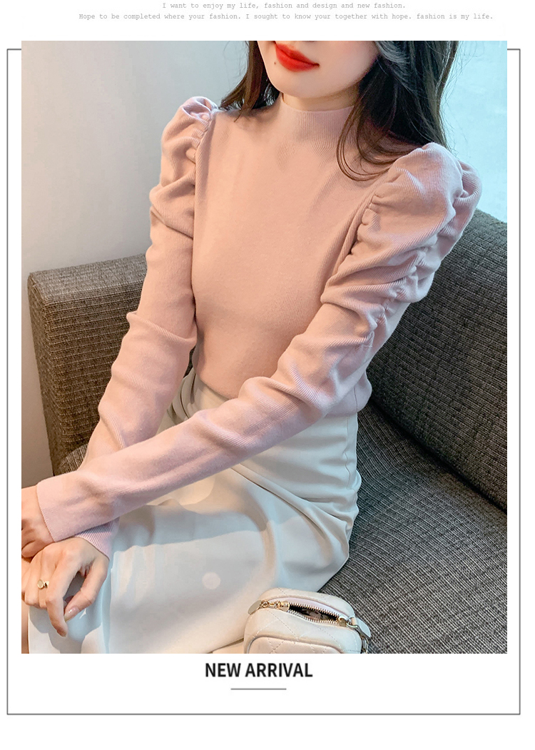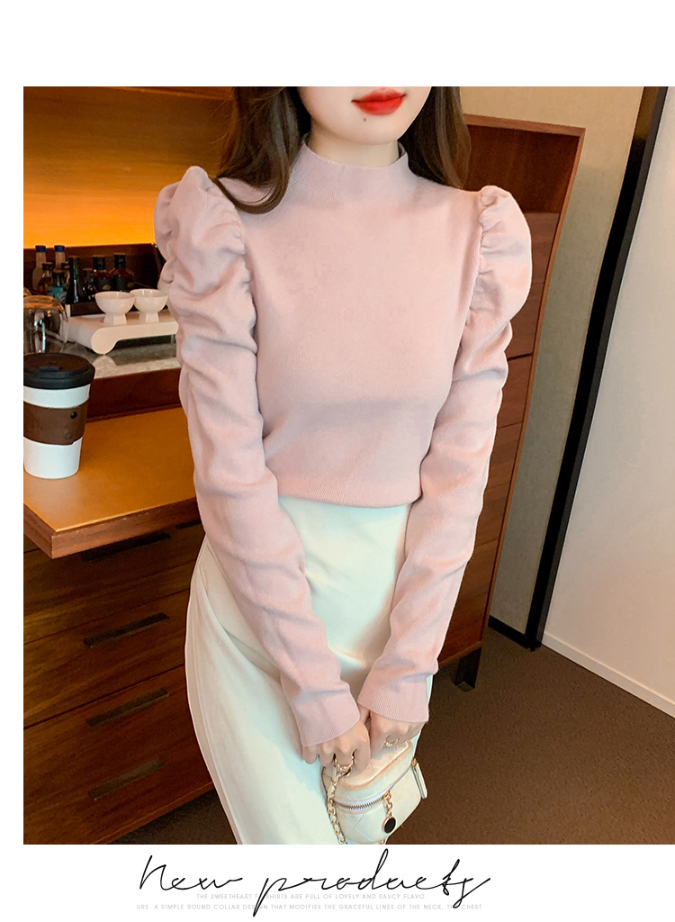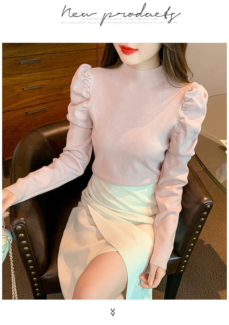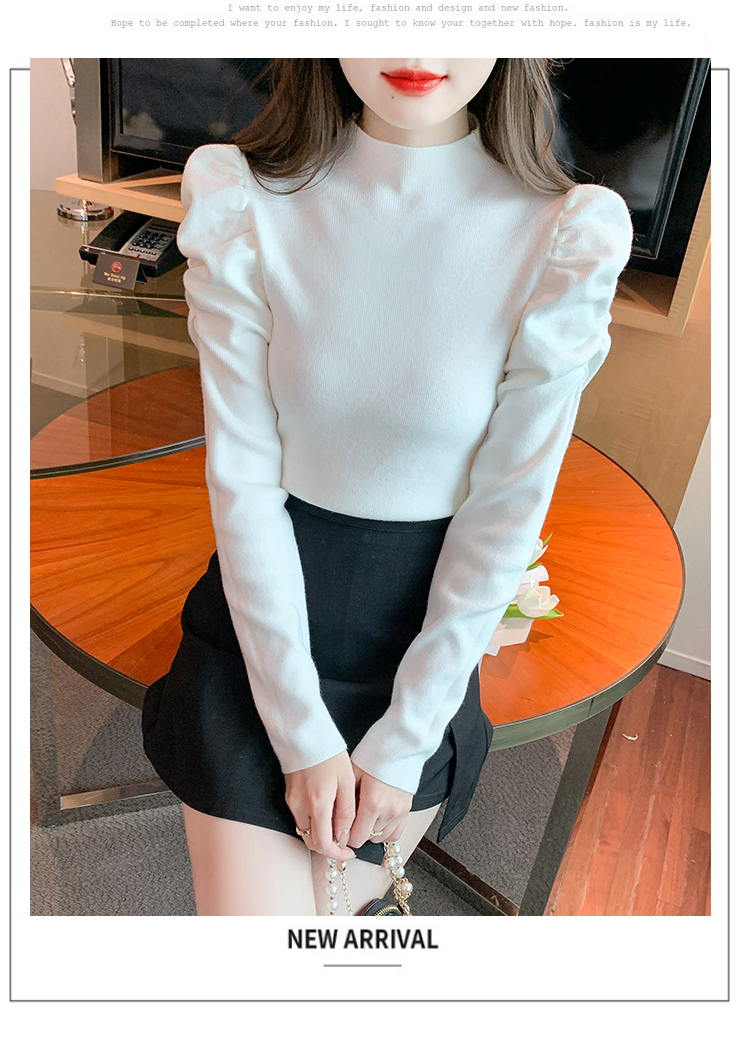 MY15098# 泡泡袖打底衫女新款时尚洋气半高领针织衫毛衣女女裝貨源服裝批發