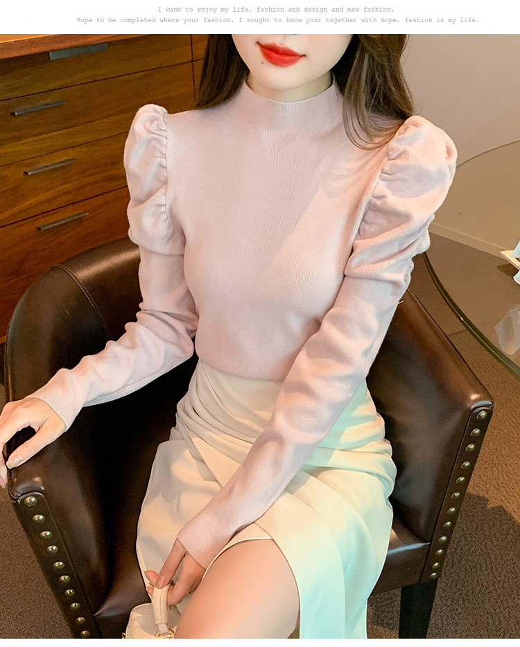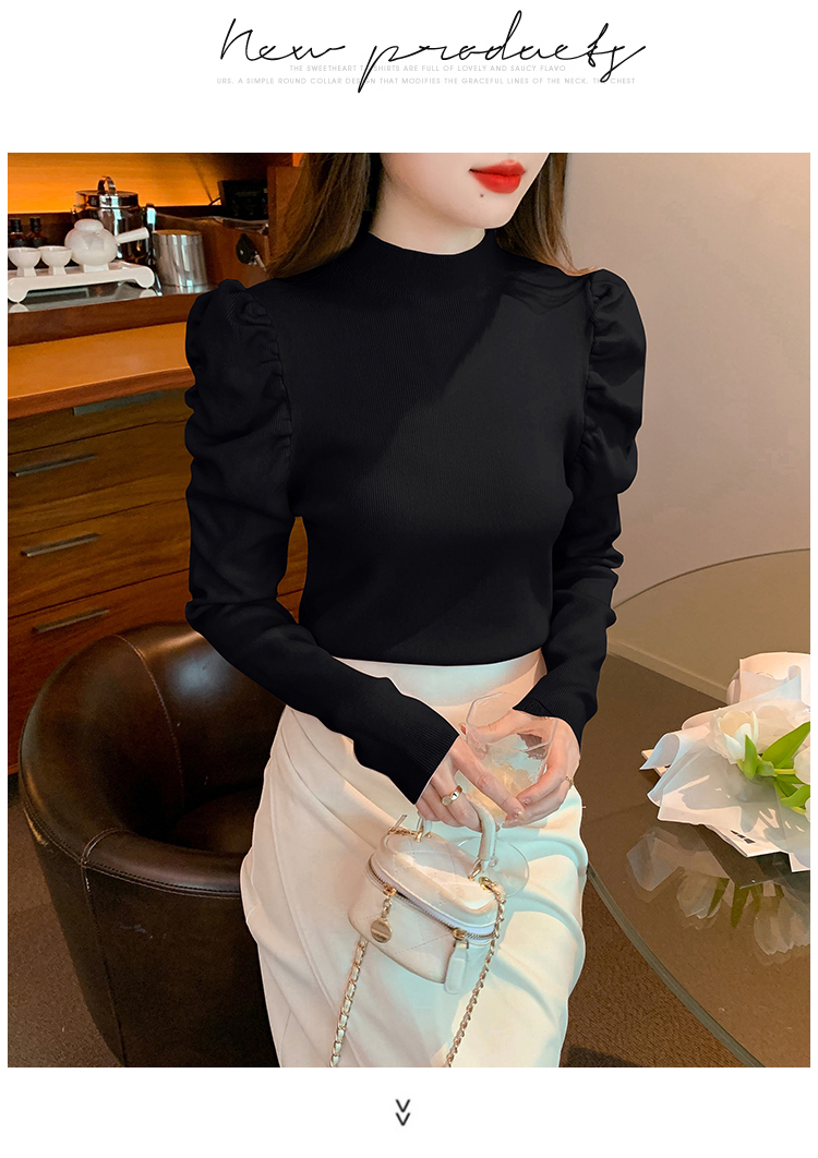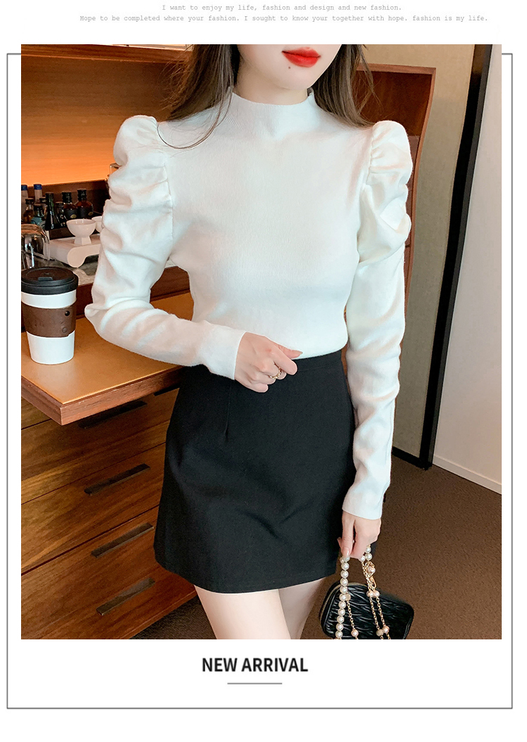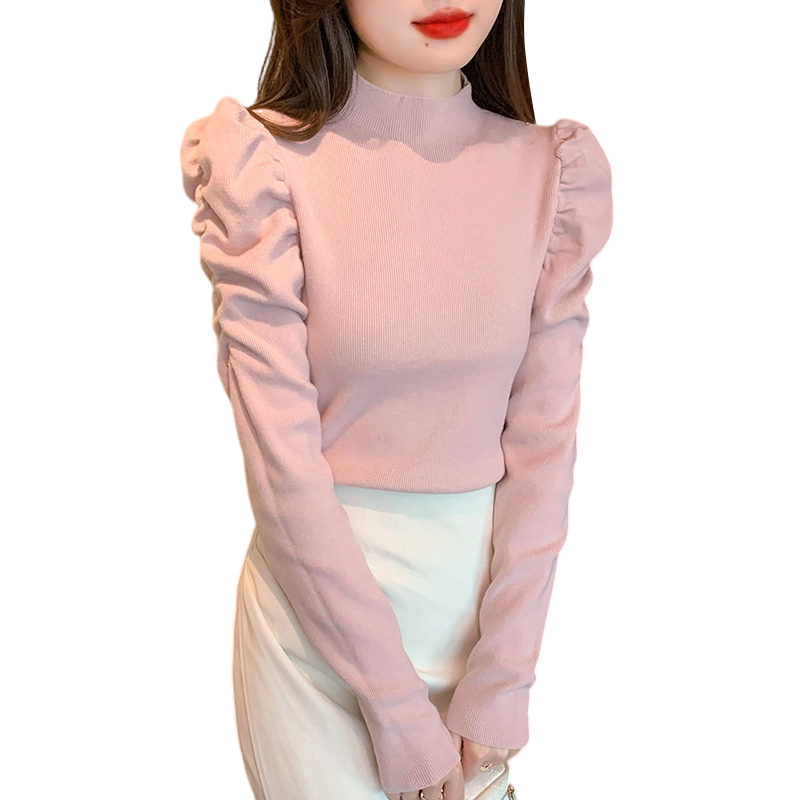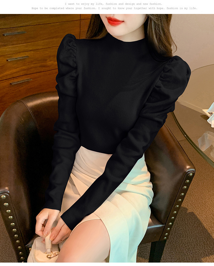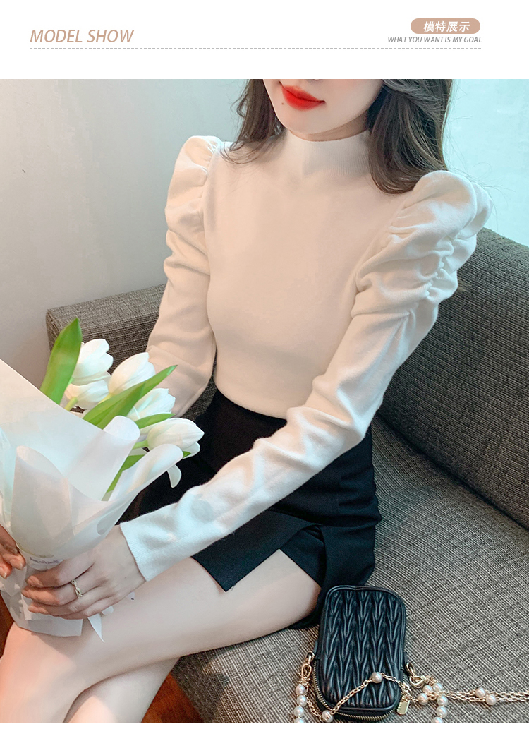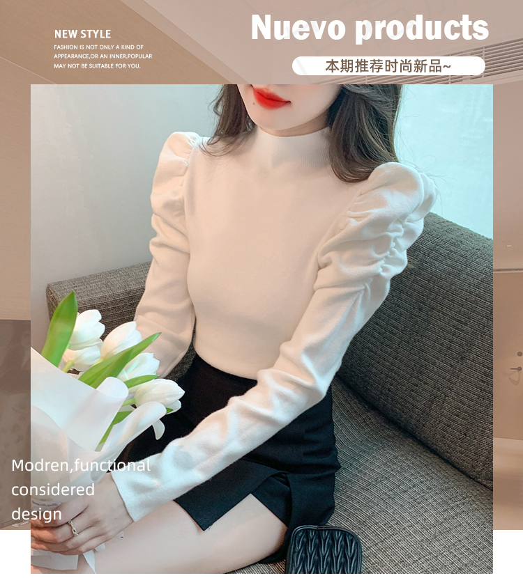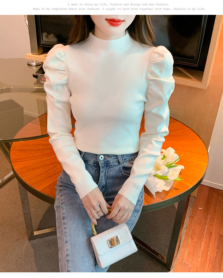 MY15098# 泡泡袖打底衫女新款时尚洋气半高领针织衫毛衣女女裝貨源服裝批發