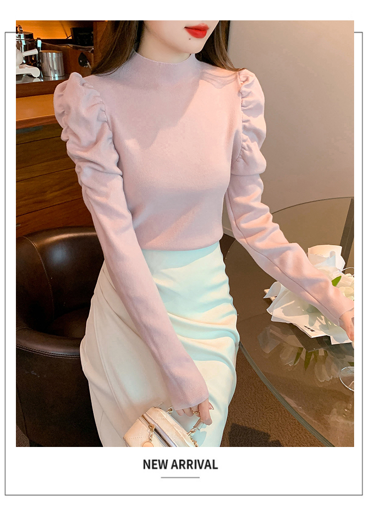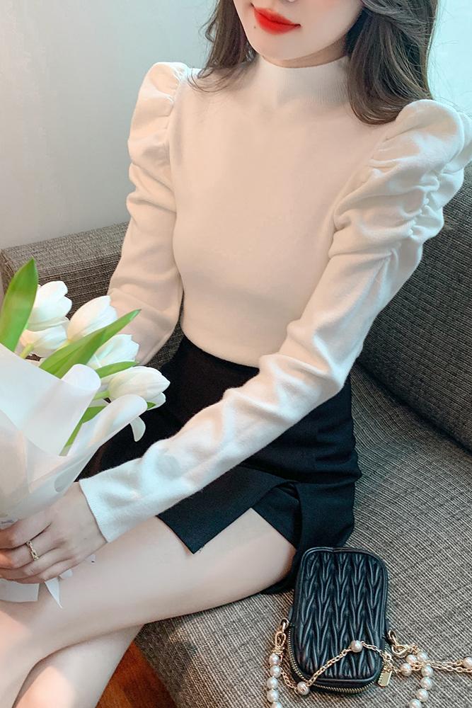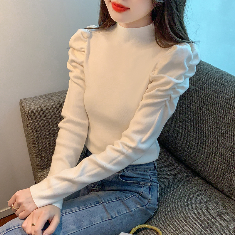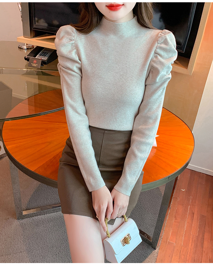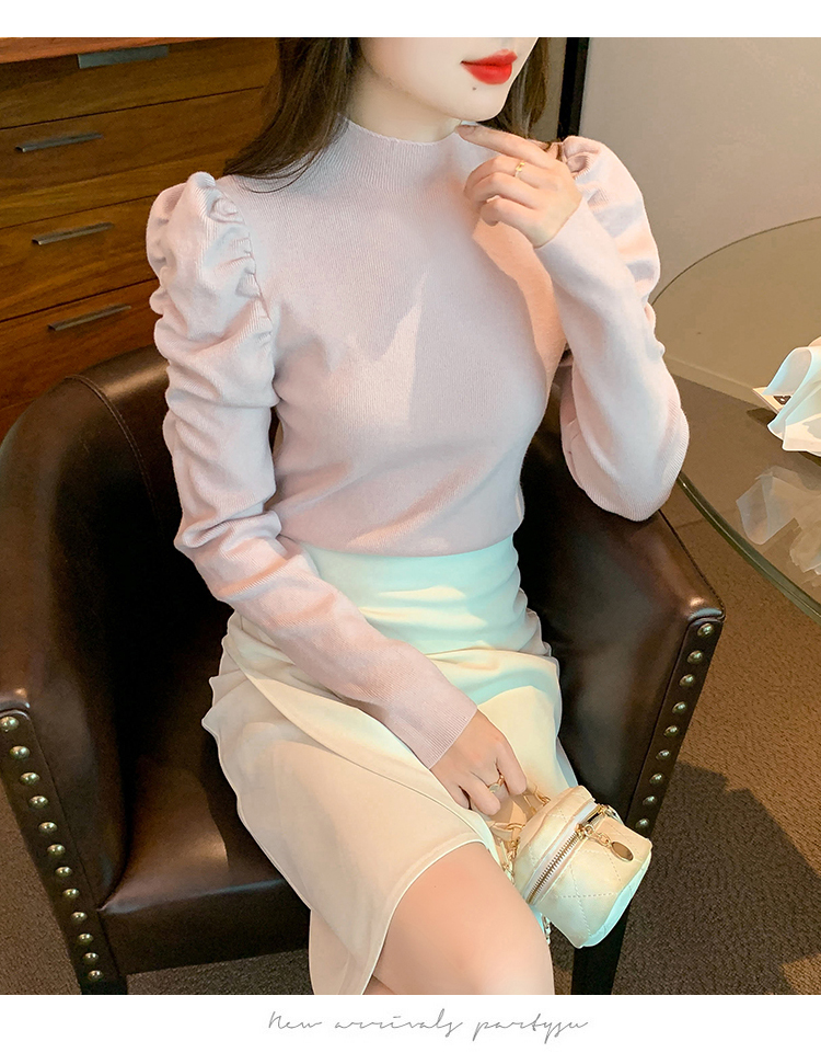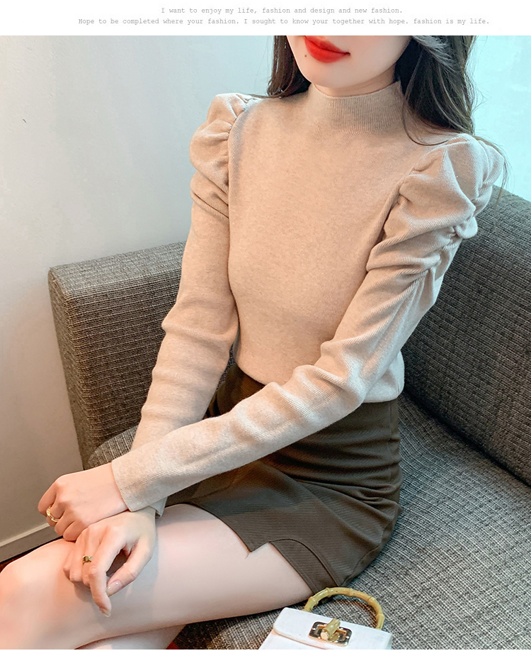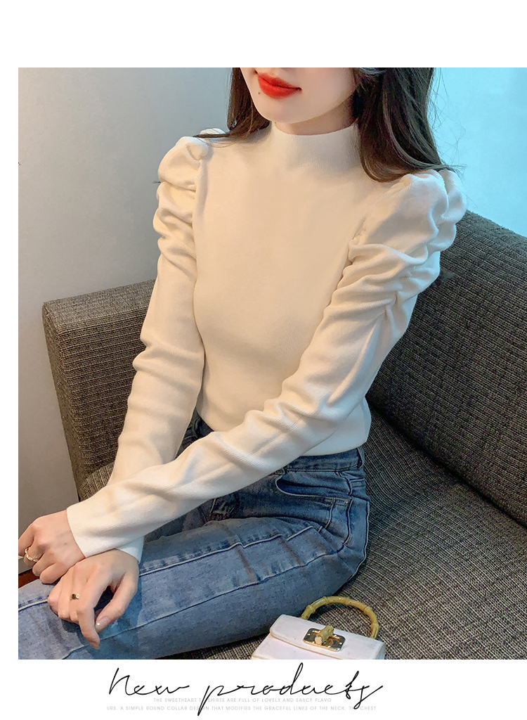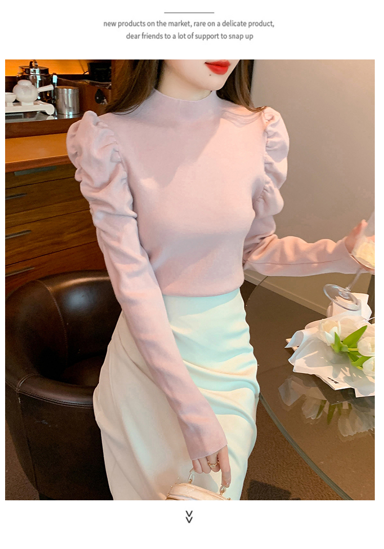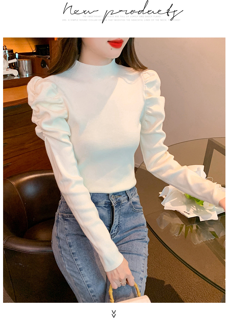 MY15098# 泡泡袖打底衫女新款时尚洋气半高领针织衫毛衣女女裝貨源服裝批發