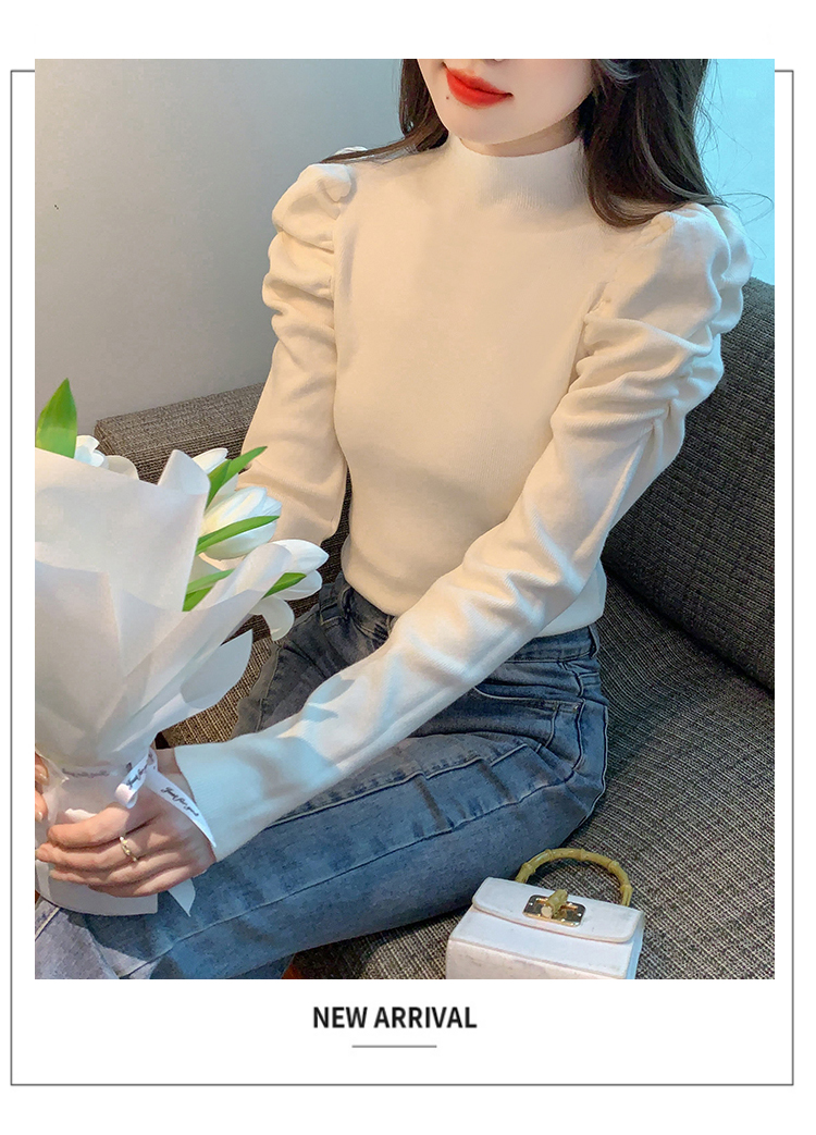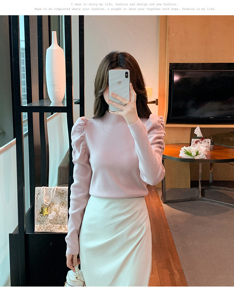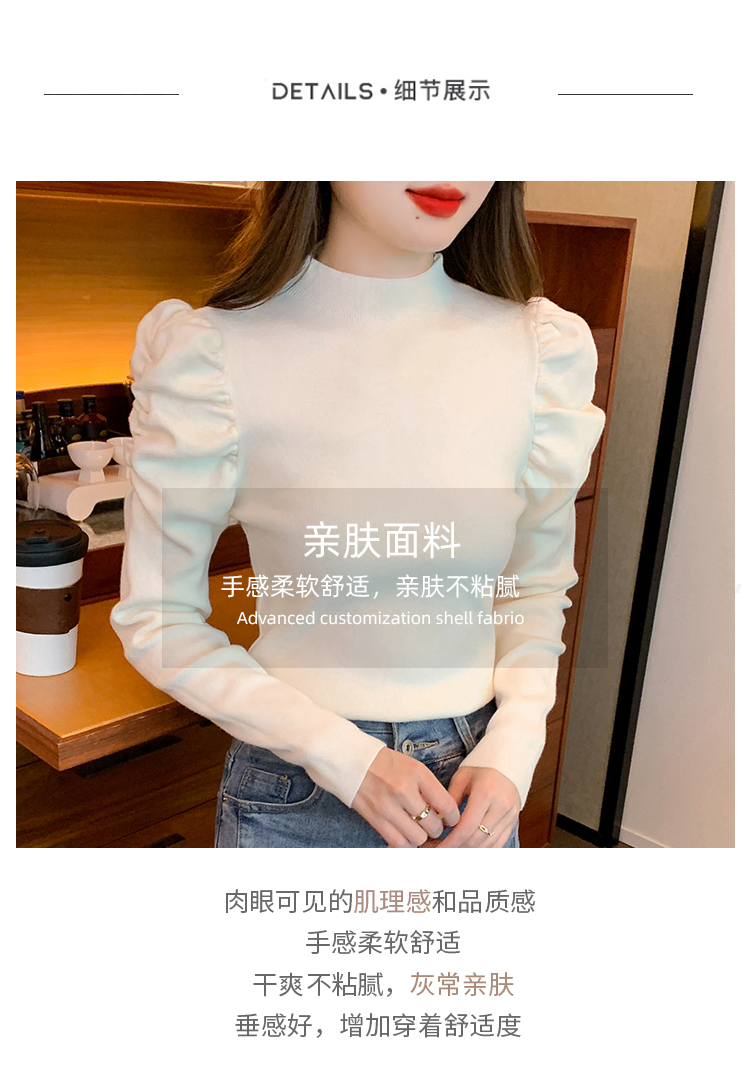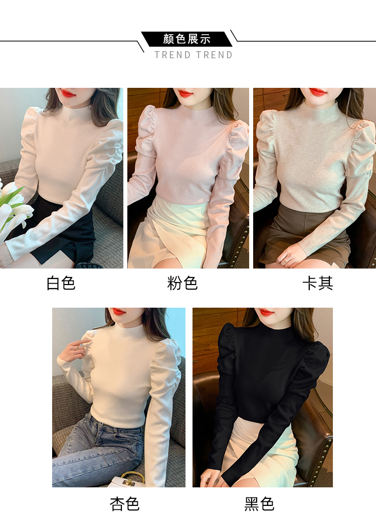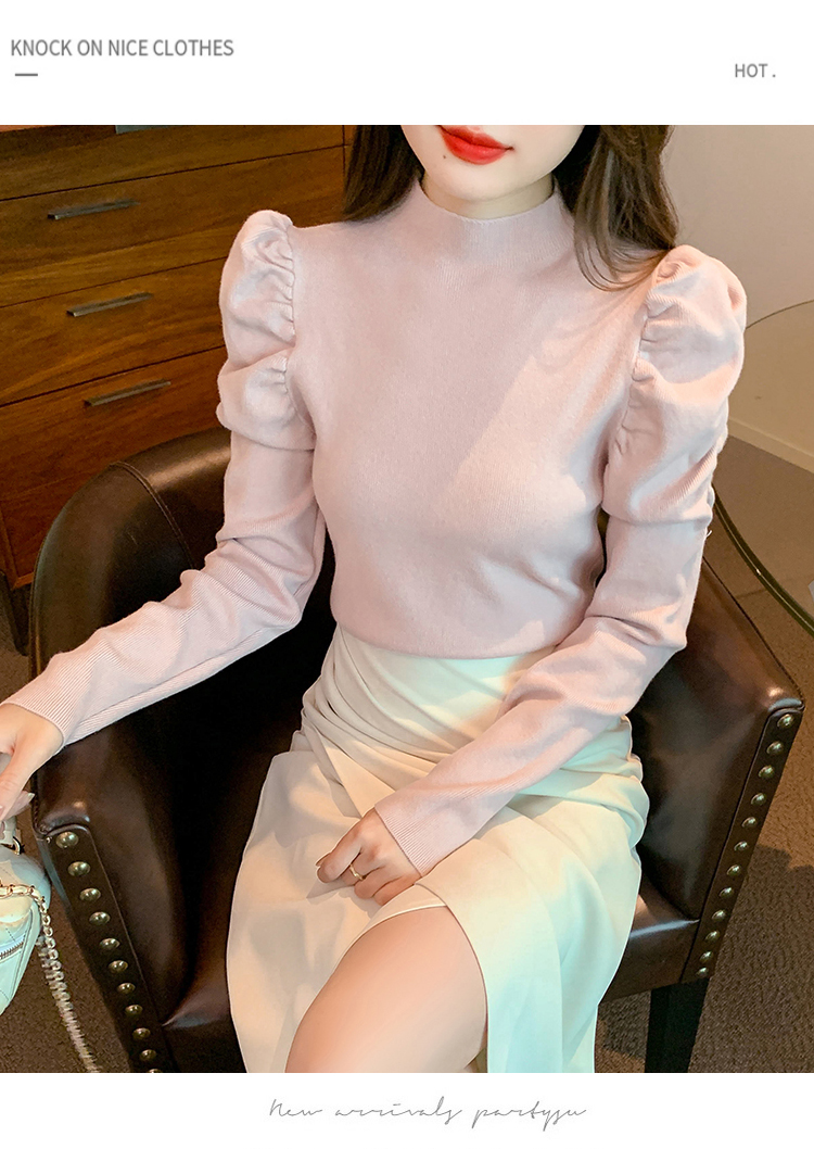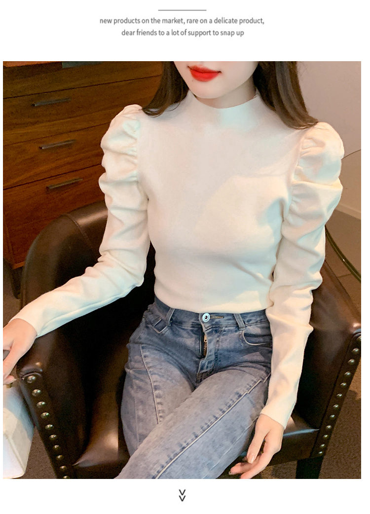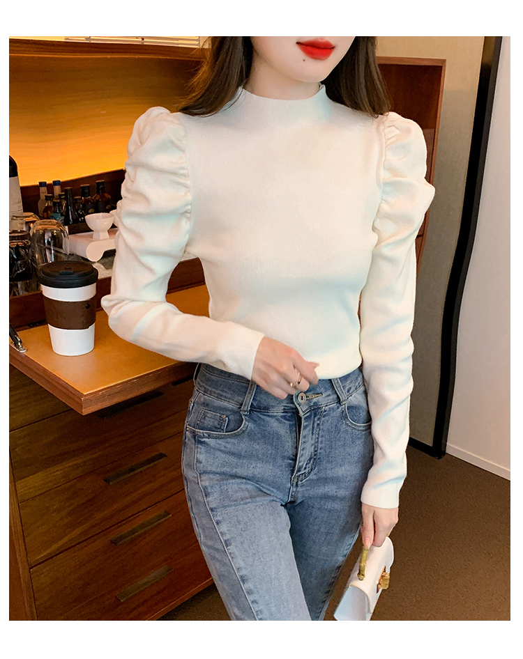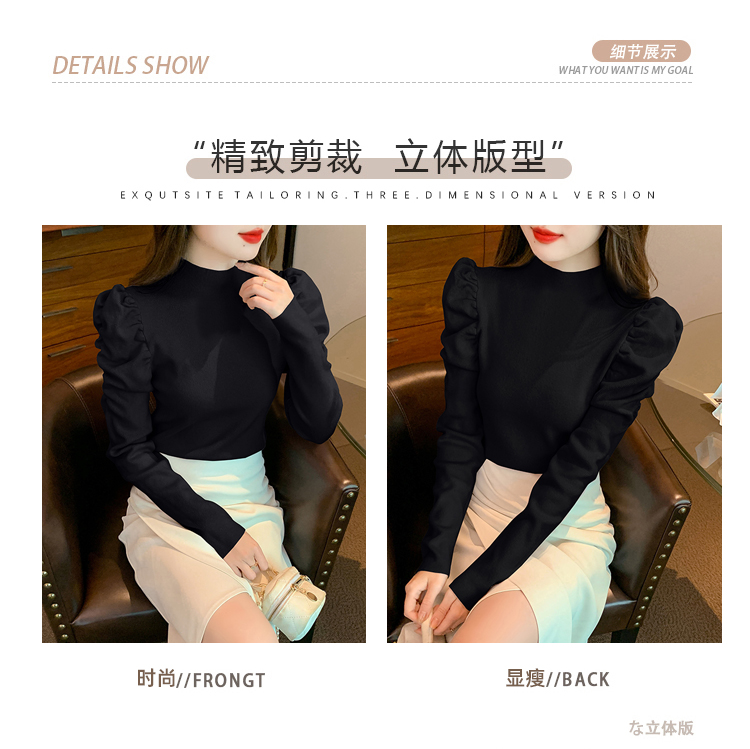 MY15098# 泡泡袖打底衫女新款时尚洋气半高领针织衫毛衣女女裝貨源服裝批發