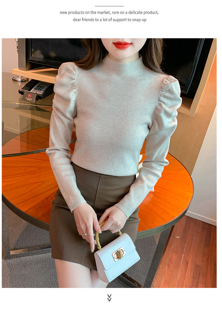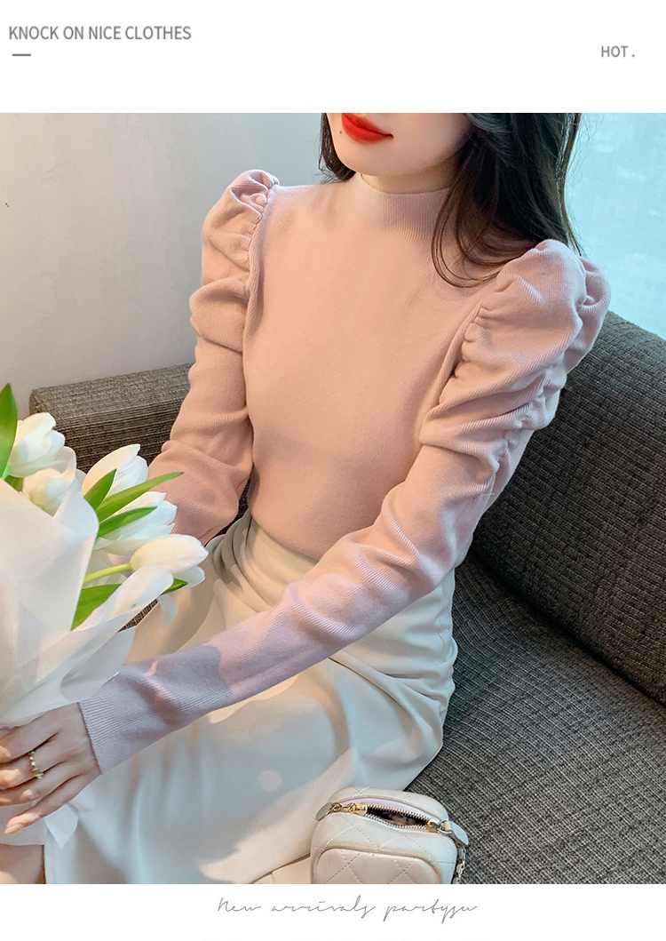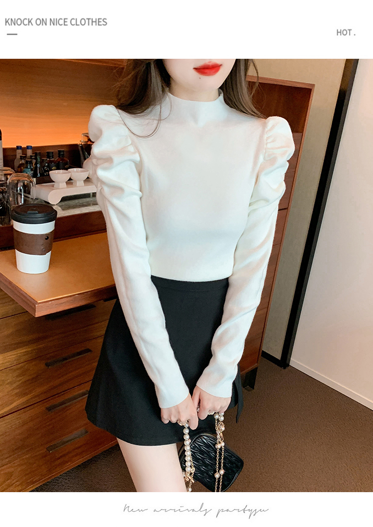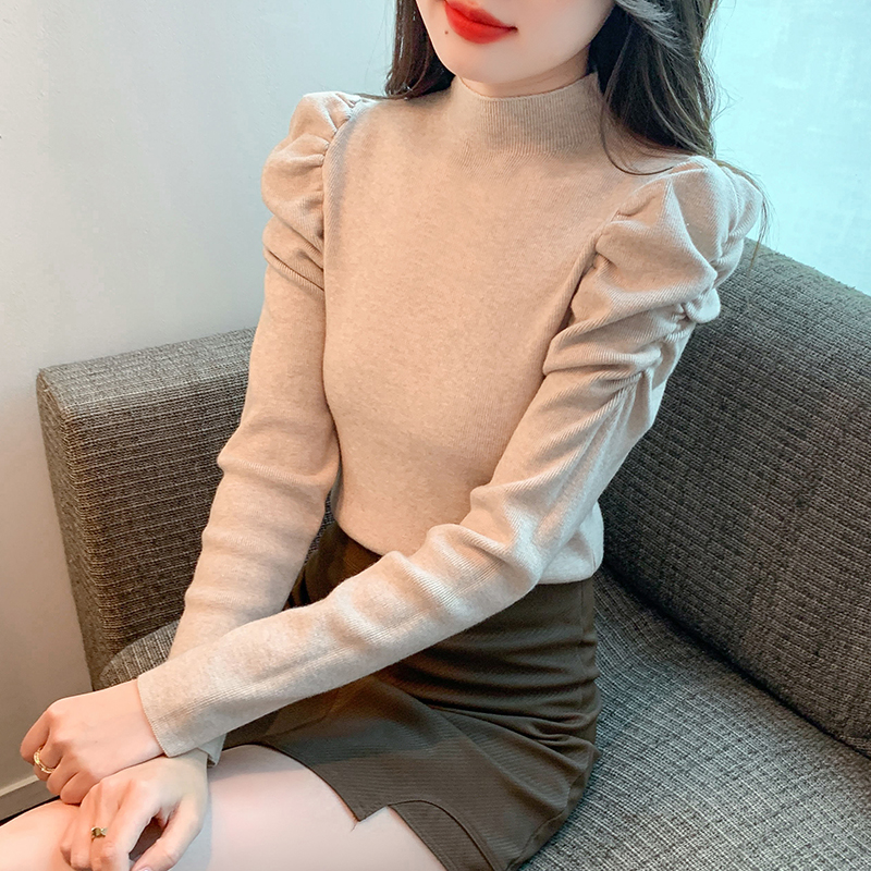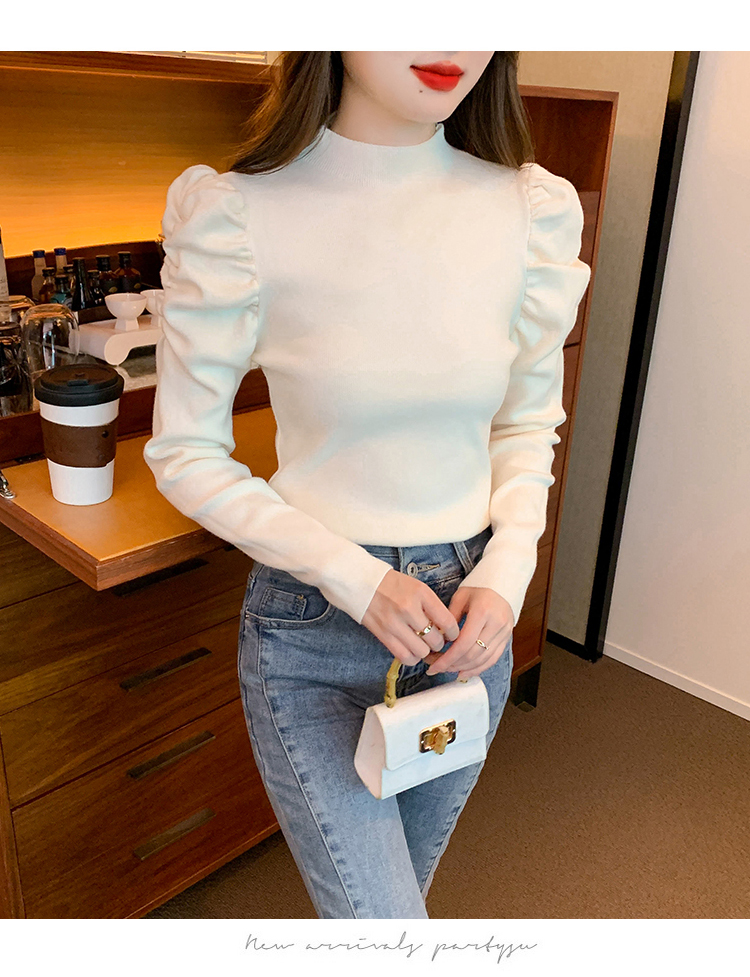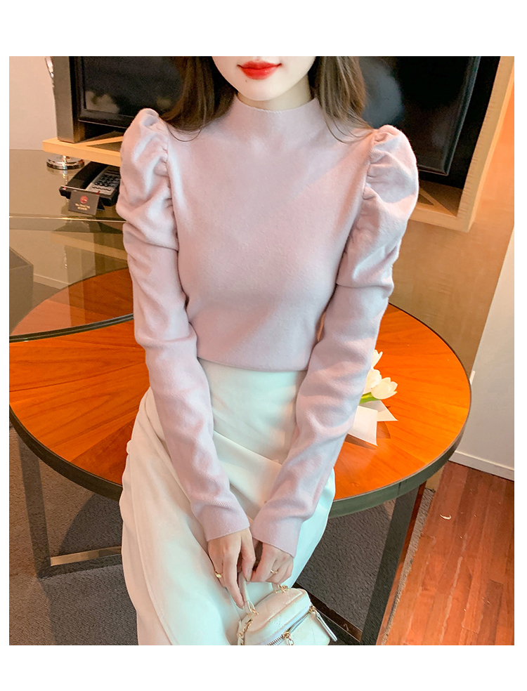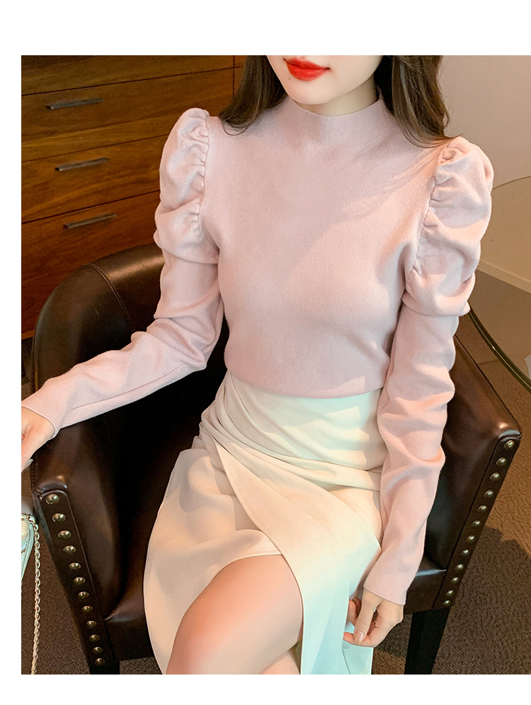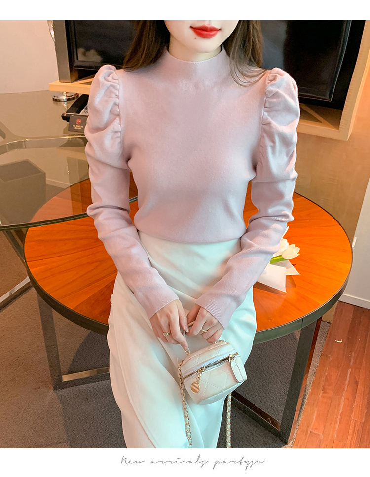 MY15098# 泡泡袖打底衫女新款时尚洋气半高领针织衫毛衣女女裝貨源服裝批發