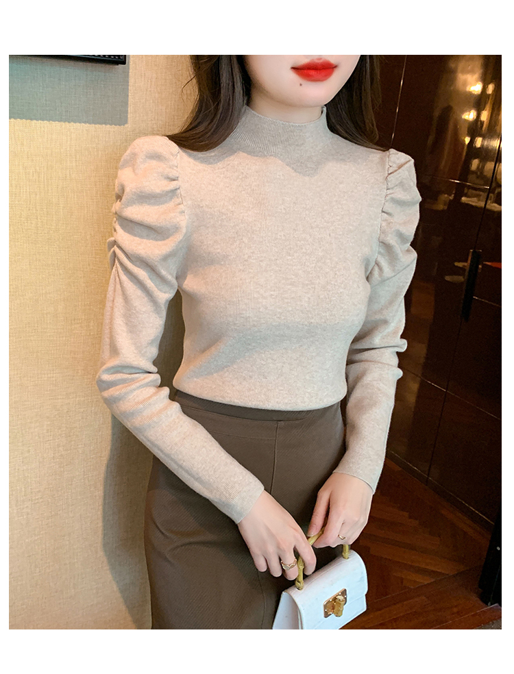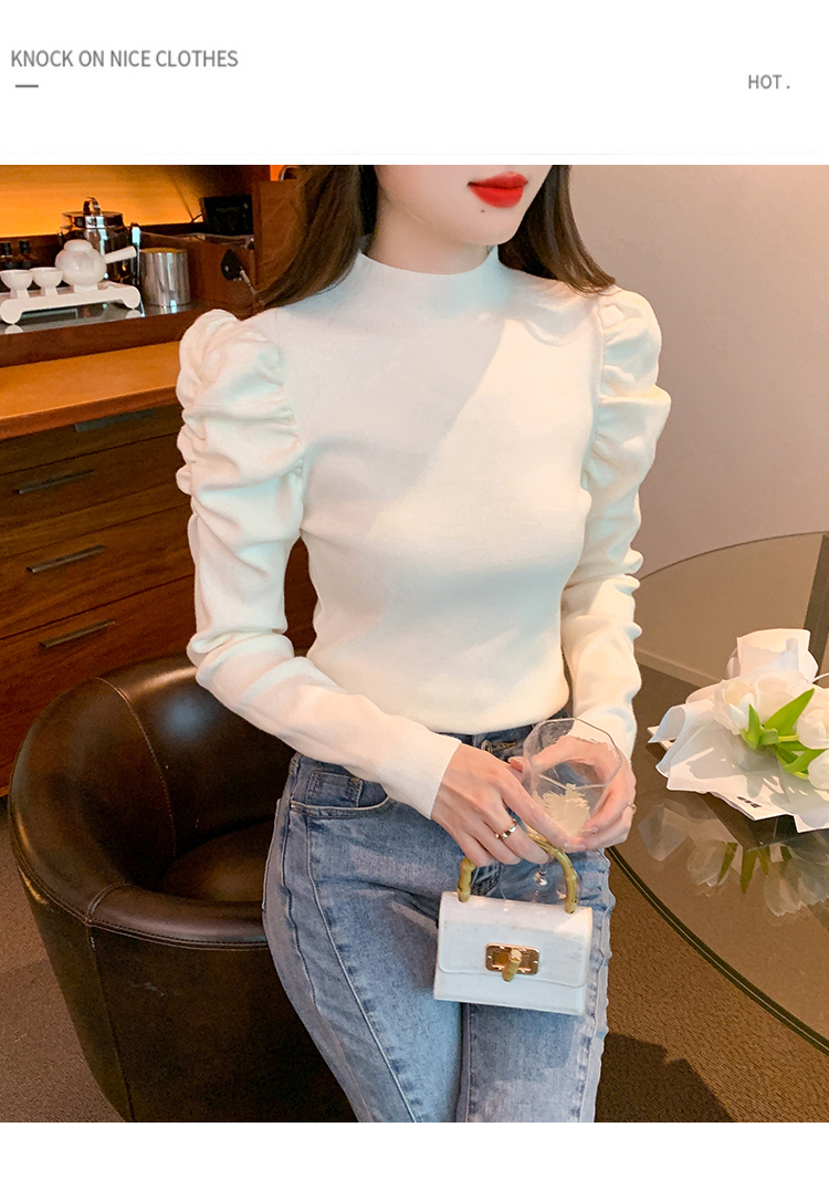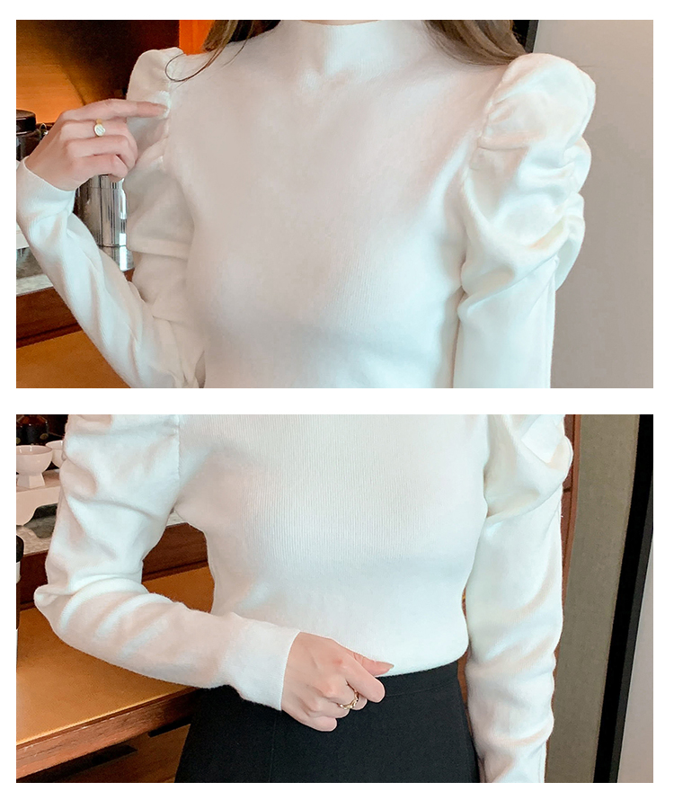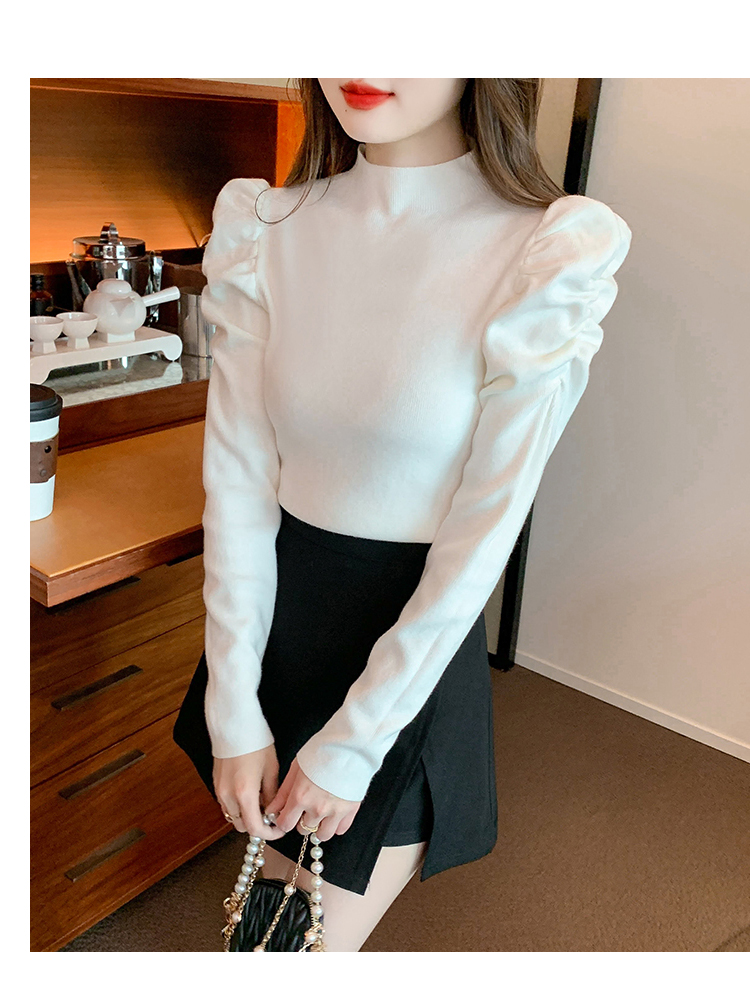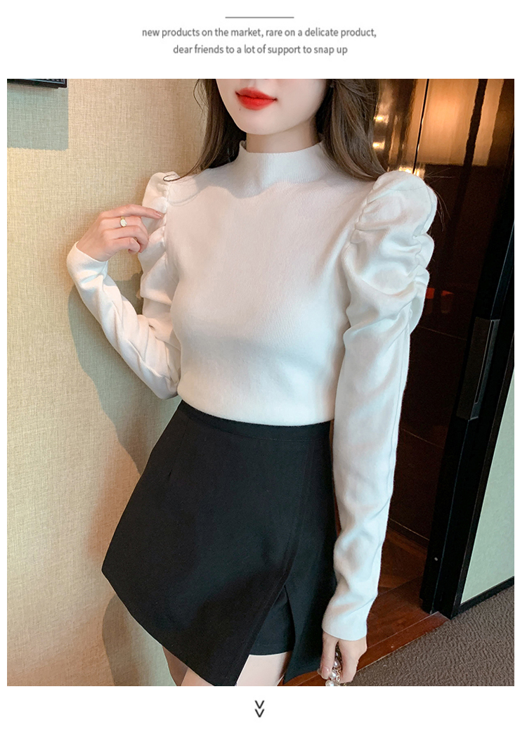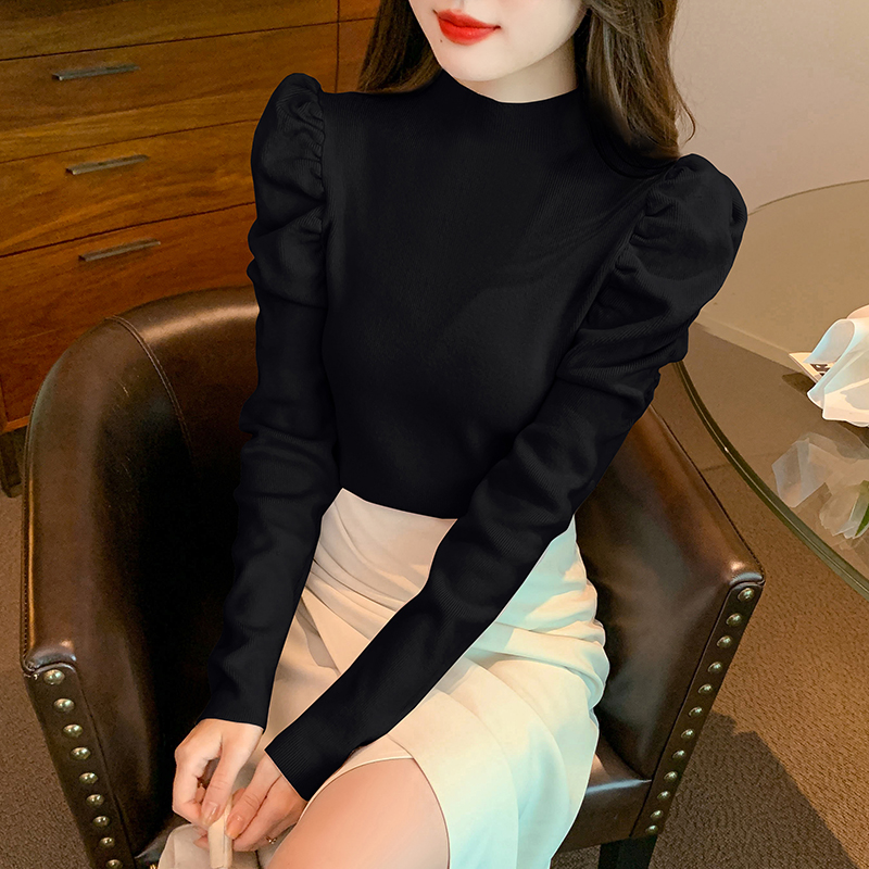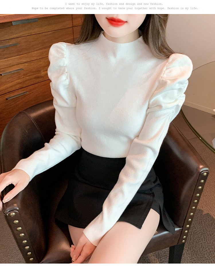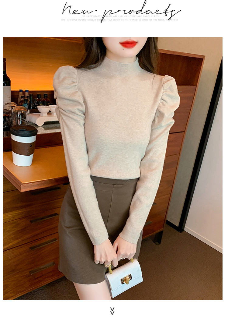 MY15098# 泡泡袖打底衫女新款时尚洋气半高领针织衫毛衣女女裝貨源服裝批發