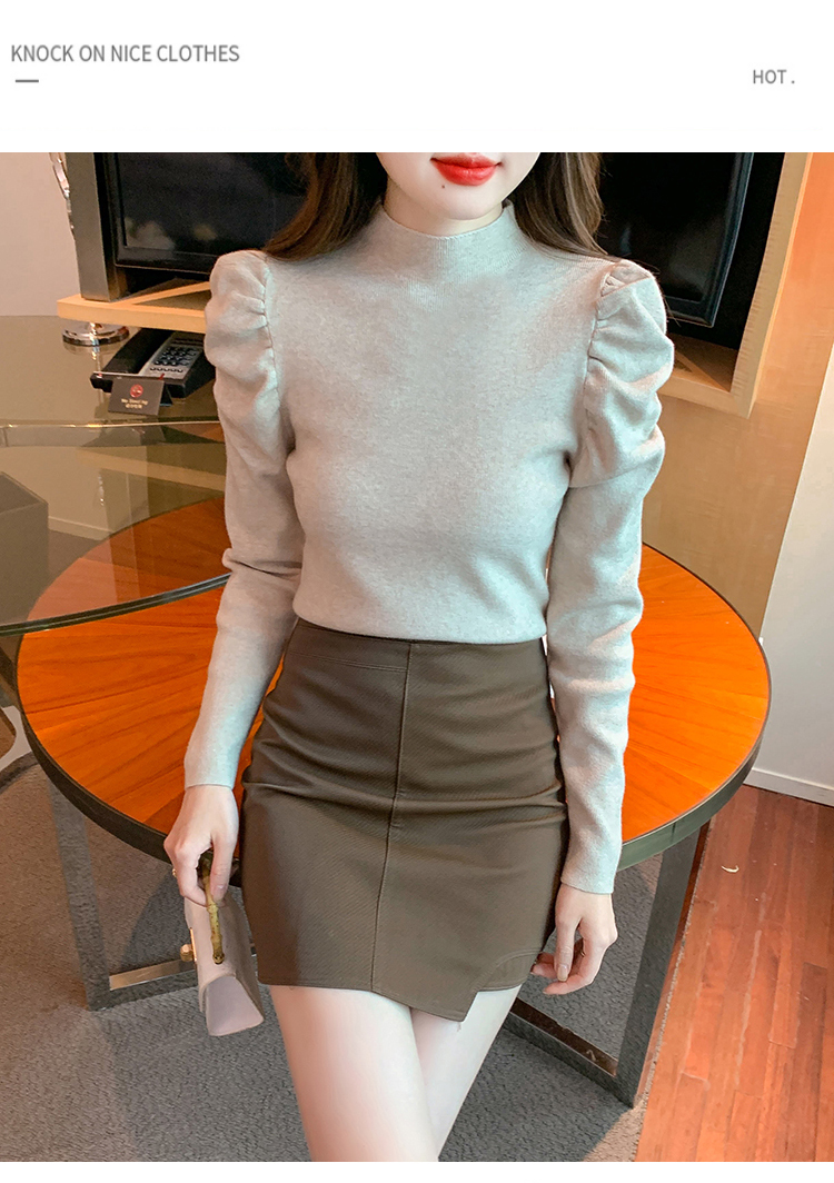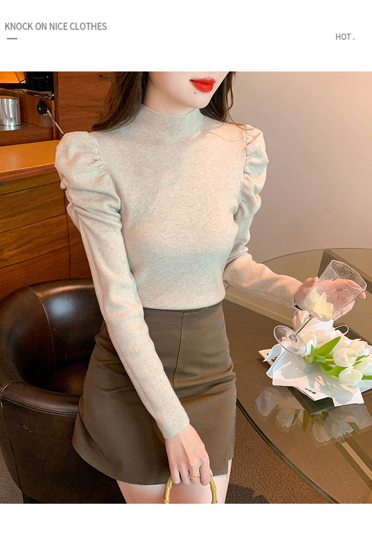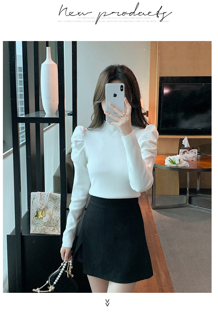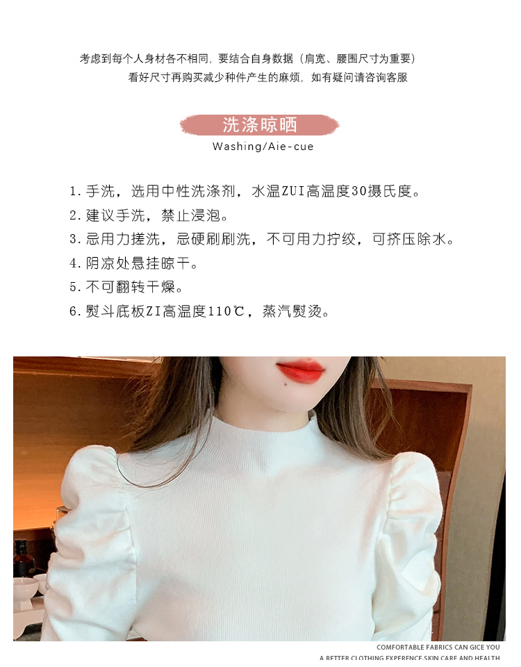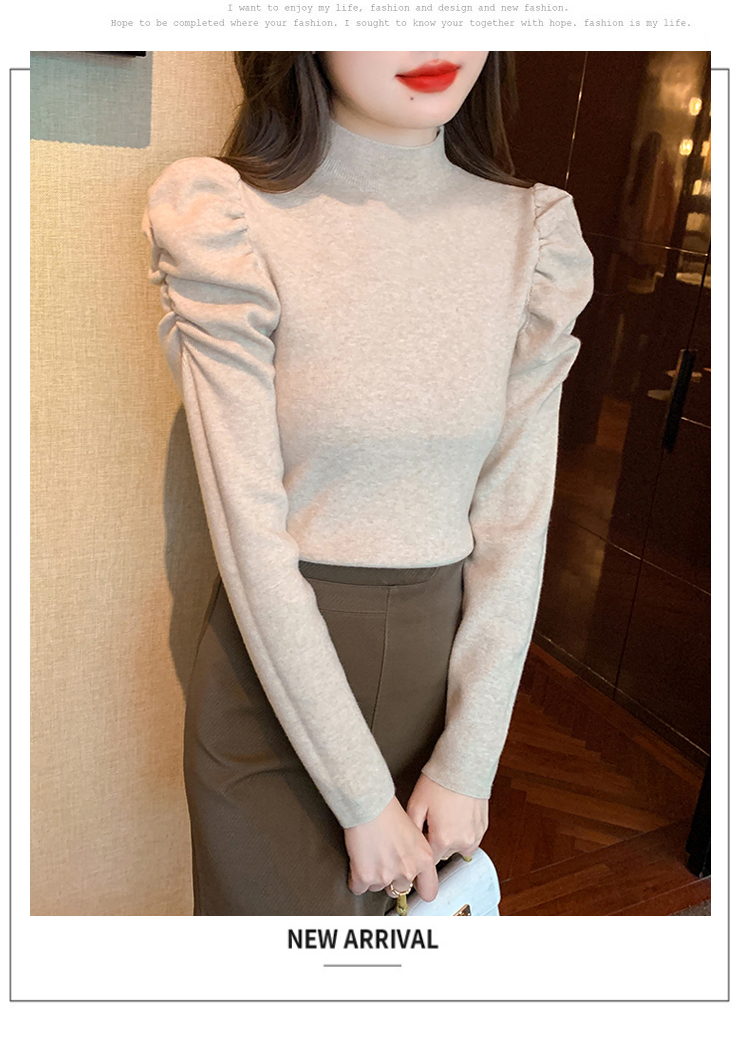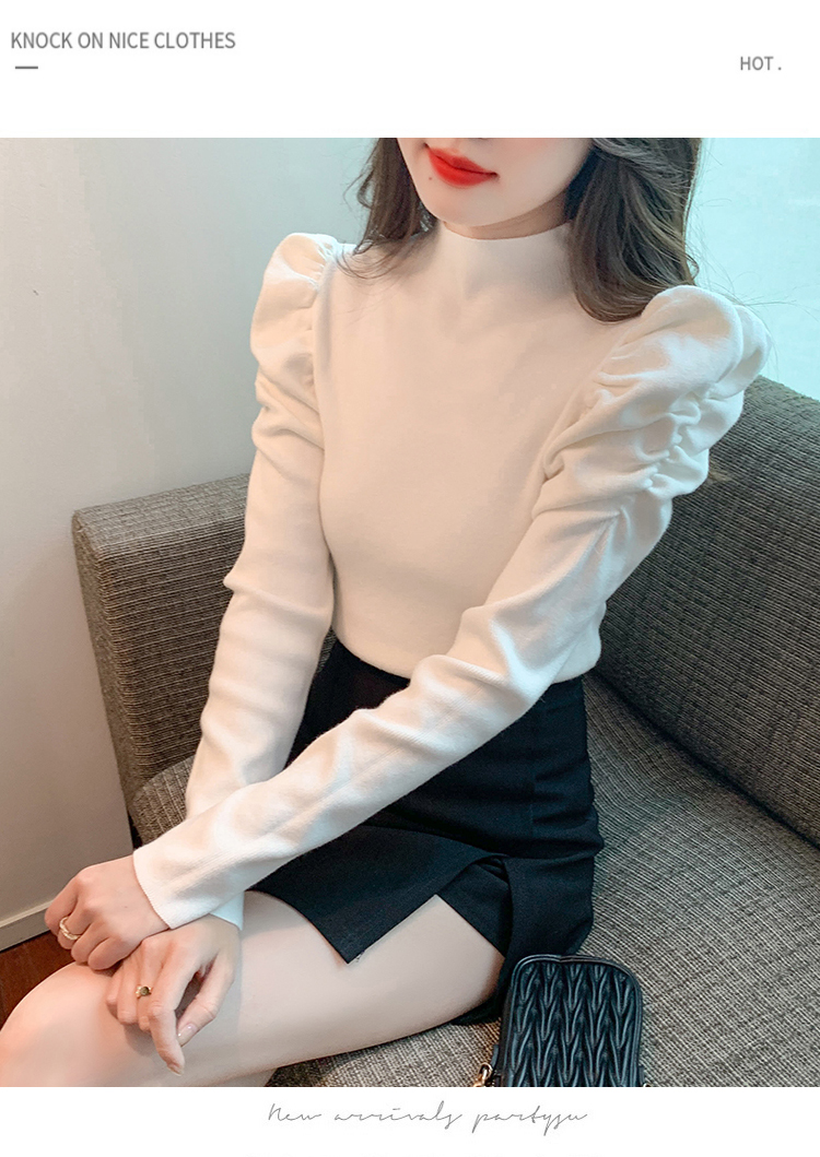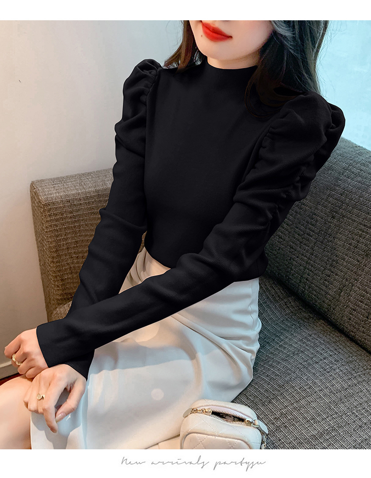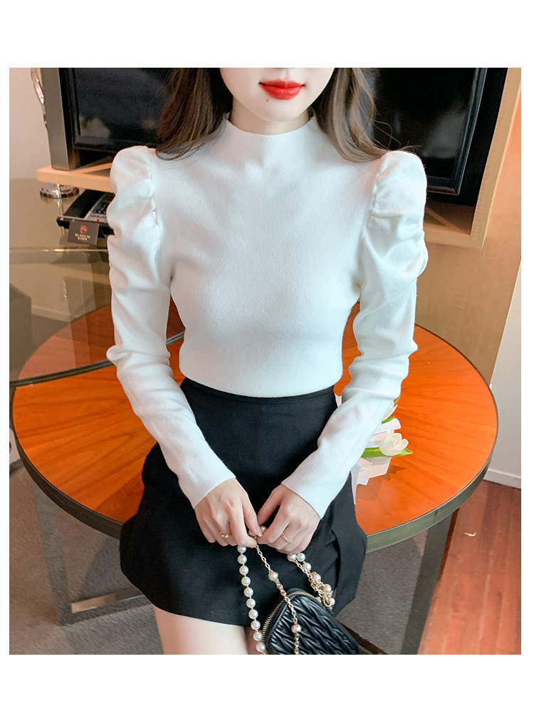 MY15098# 泡泡袖打底衫女新款时尚洋气半高领针织衫毛衣女女裝貨源服裝批發