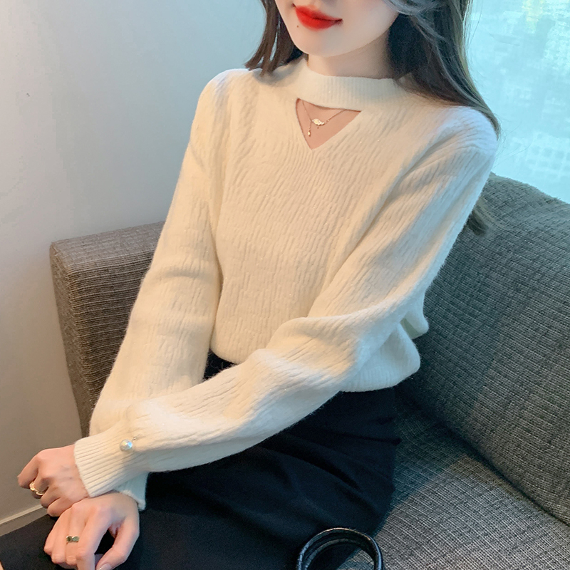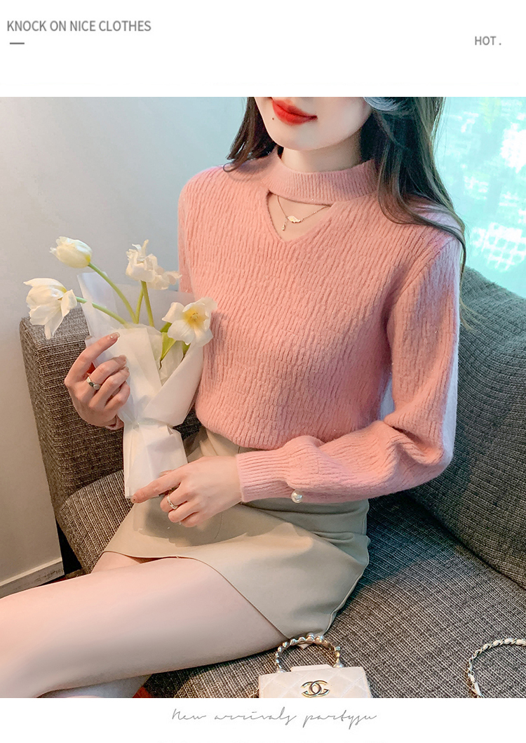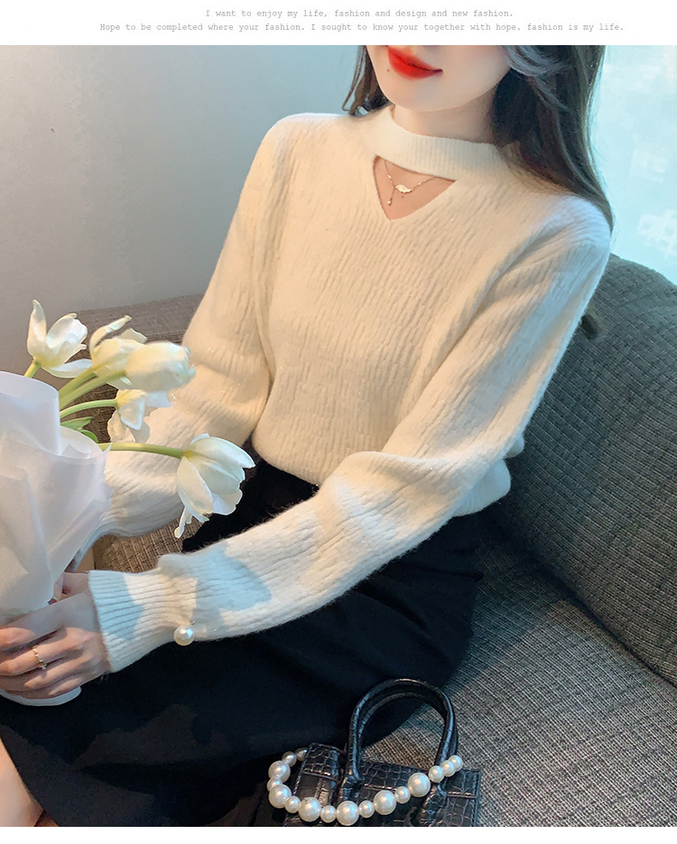 MY15101# 毛衣半高领打底衫镂空高级感宽松上衣女女裝貨源服裝批發
