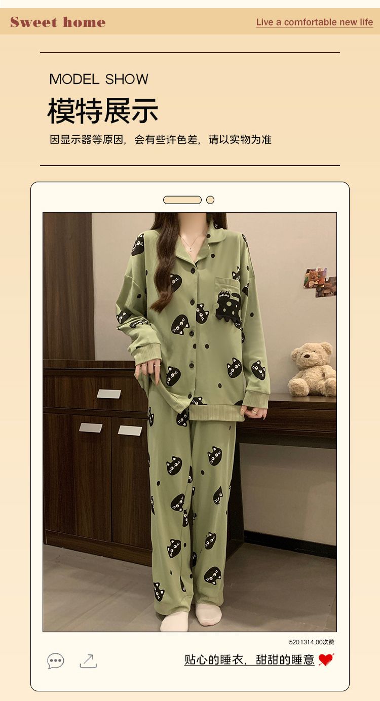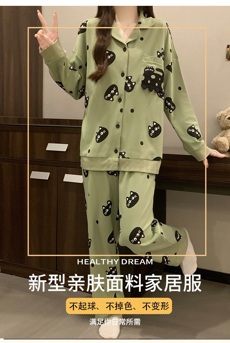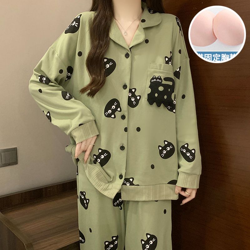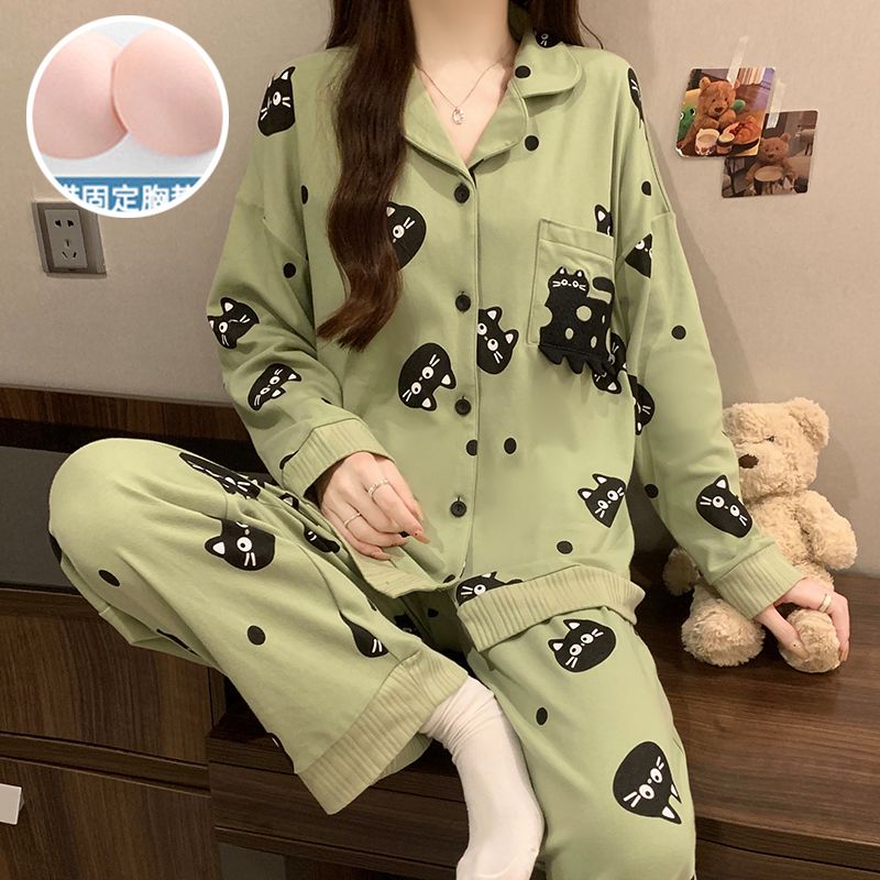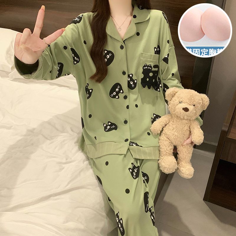 MY15104# 新款带胸垫仿棉睡衣女长袖开衫翻领甜美家居服套装女裝貨源服裝批發