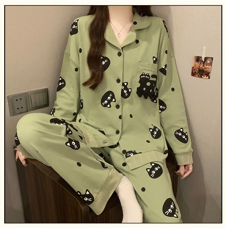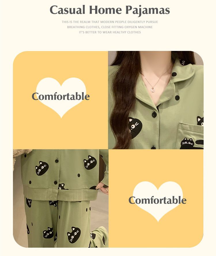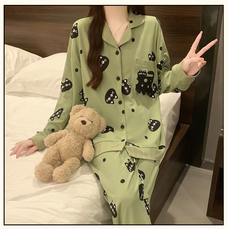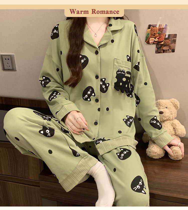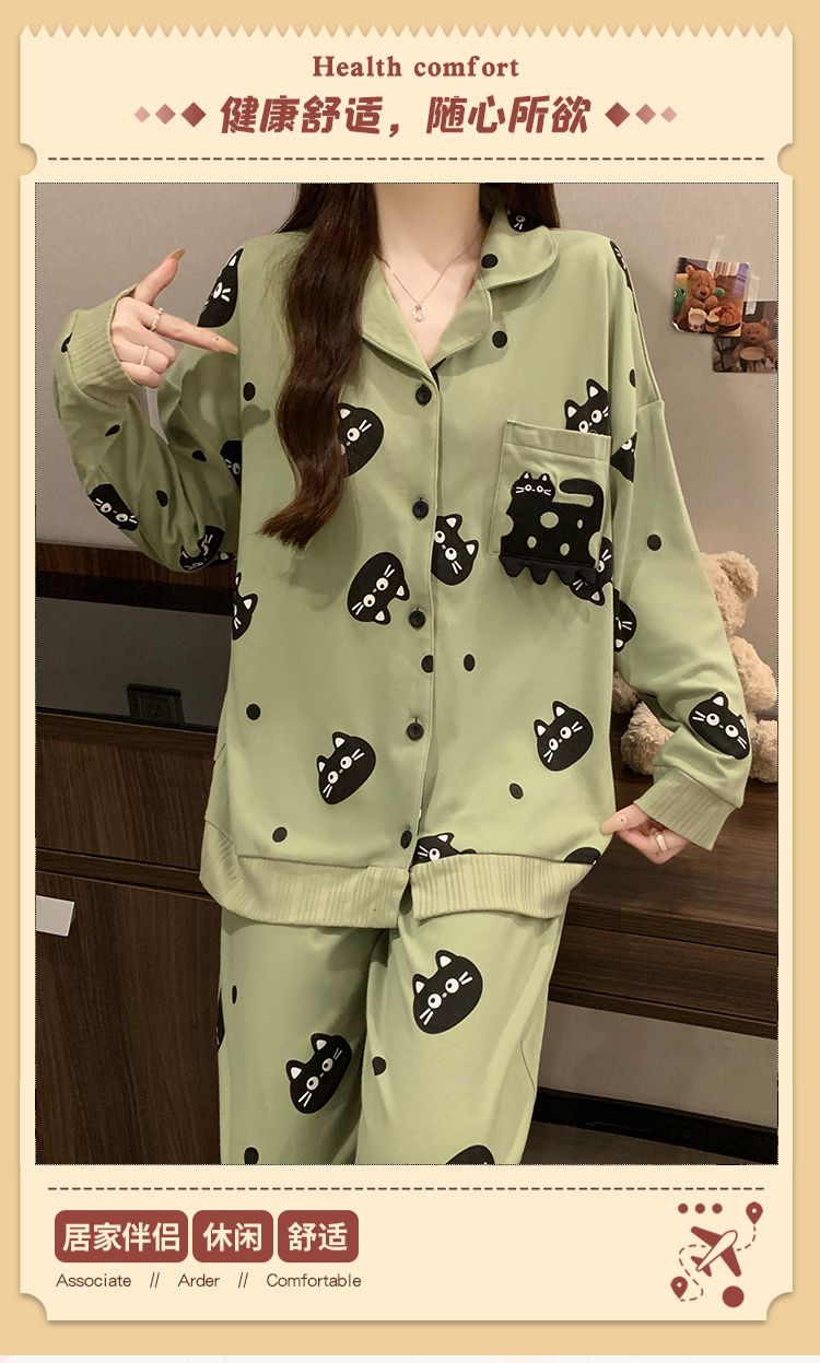 MY15104# 新款带胸垫仿棉睡衣女长袖开衫翻领甜美家居服套装女裝貨源服裝批發