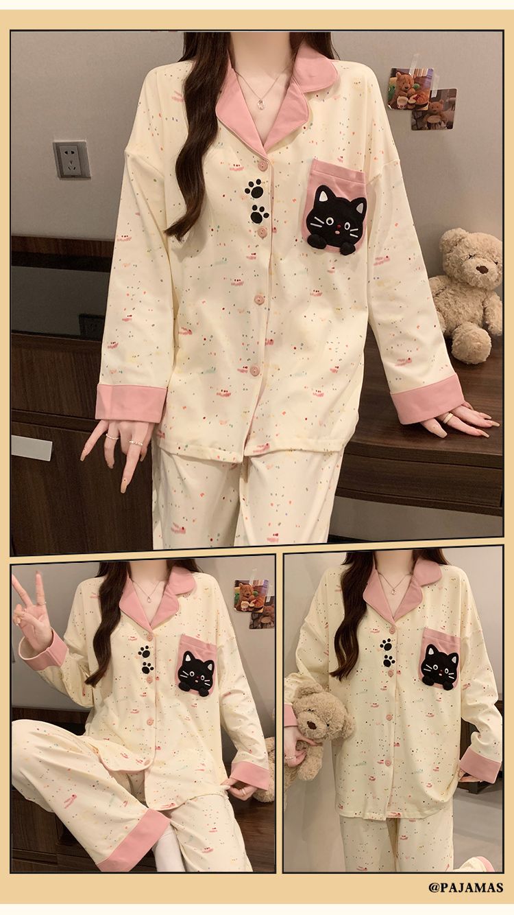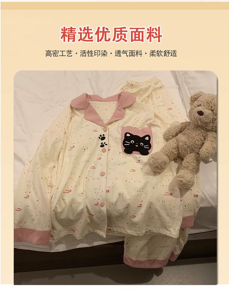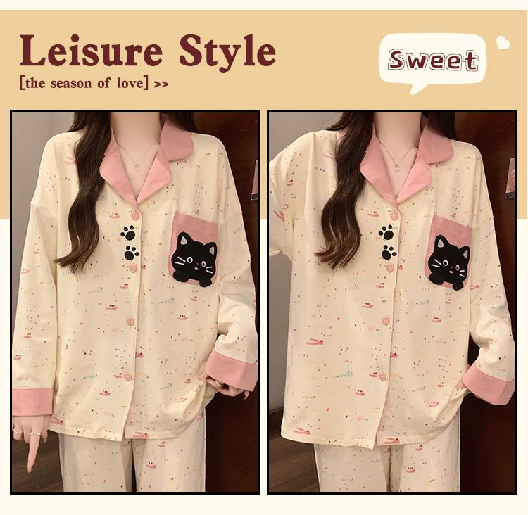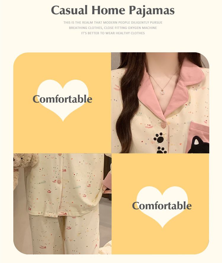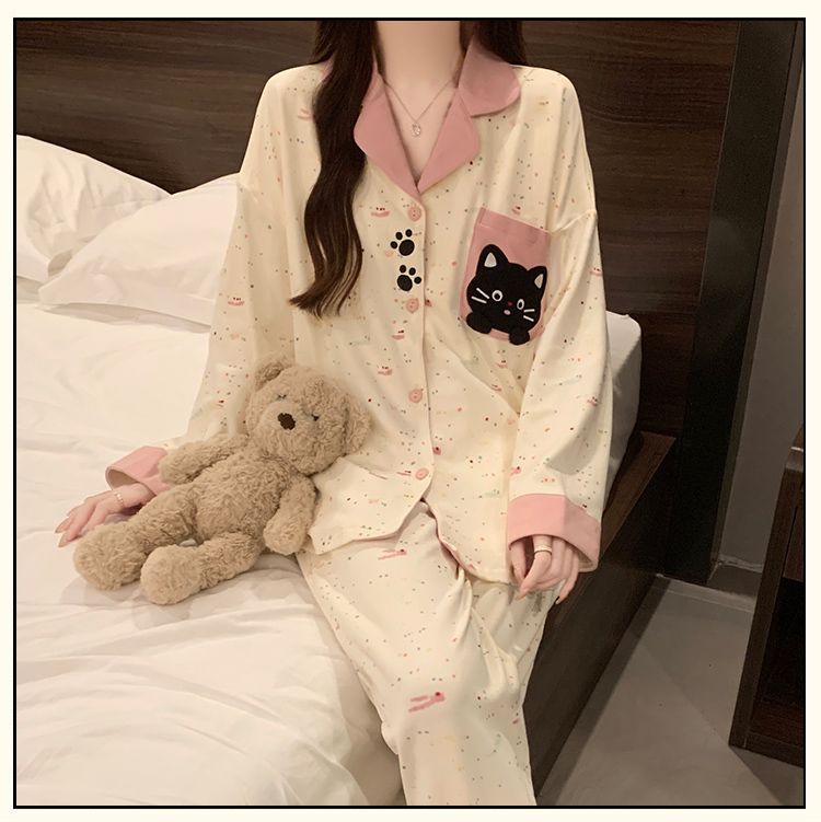MY15106# 新款带胸垫仿棉睡衣女长袖开衫翻领甜美家居服套装女裝貨源服裝批發
