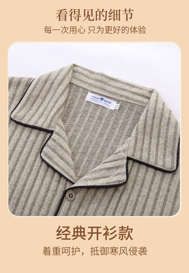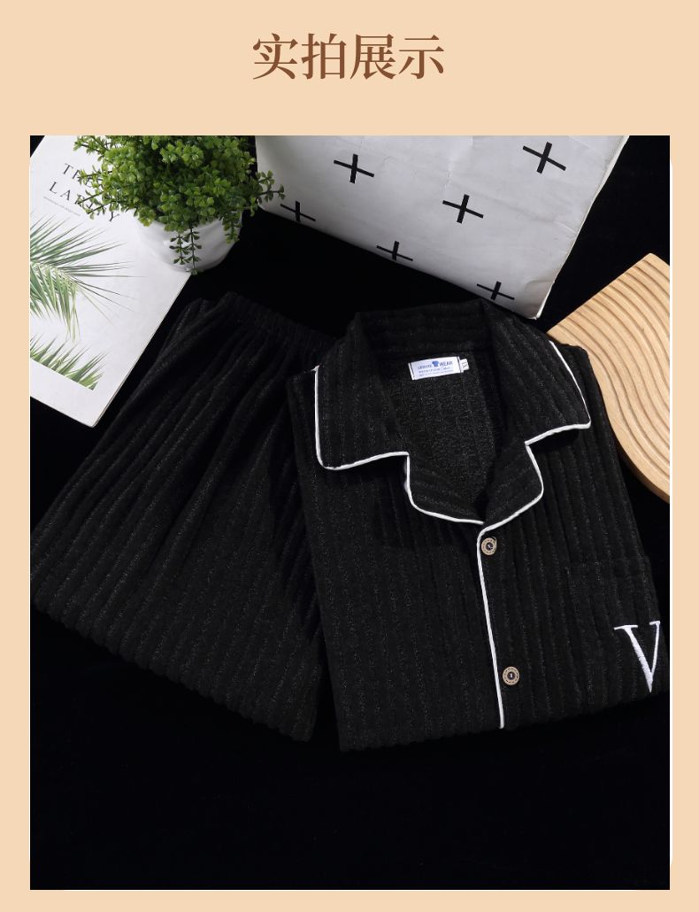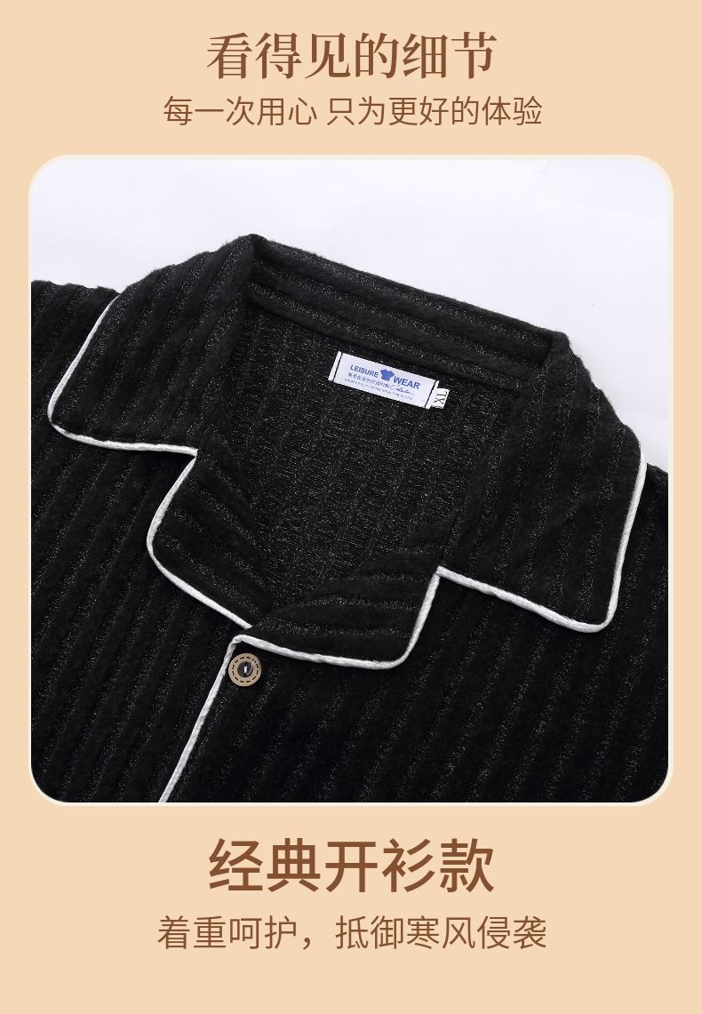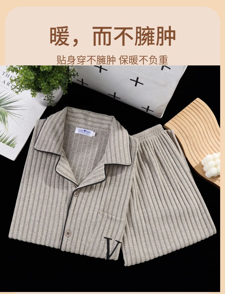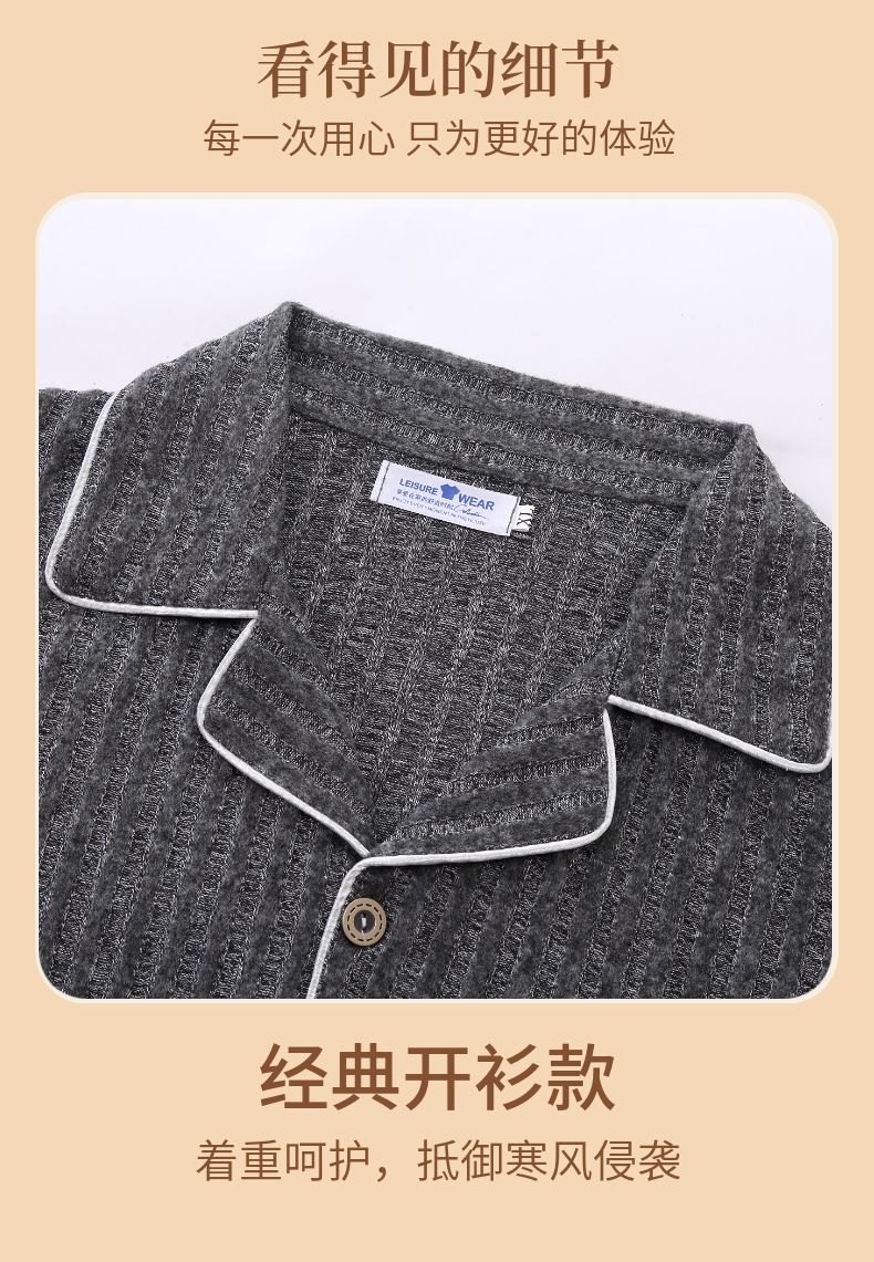 MY15109# 羊绒坑条男士翻领开衫长袖长裤睡衣套装家居服女裝貨源服裝批發